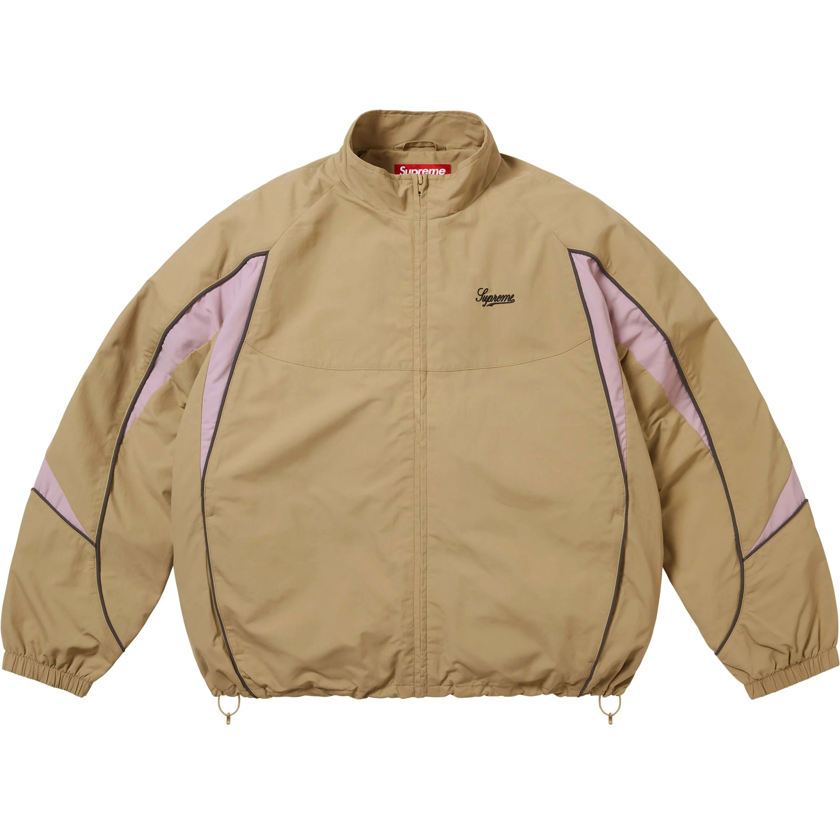 Water resistant Supplex® nylon taslan with mesh lining and taffeta sleeve lining. Full zip closure with on seam zip hand pockets at lower front. Interior elastic shockcord at hem with elastic cuffs. Contrast piping throughout and embroidered logo on chest.