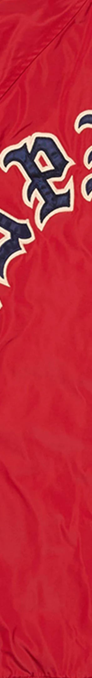 Water resistant poly with cotton jersey lining and taffeta sleeve lining. Snap front closure with welt hand pockets at lower front and interior chest pocket. Elastic cuffs and interior drawcord at hem. Tackle twill logo appliqué on back.