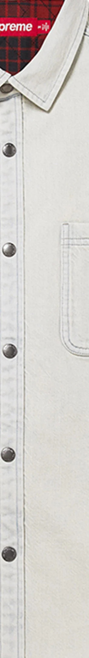 All cotton 10 oz. denim with fill, quilted cotton blend plaid lining and quilted taffeta sleeve lining. Snap front closure with on seam hand pockets at lower front and single chest pocket. Embroidered logo on chest pocket.