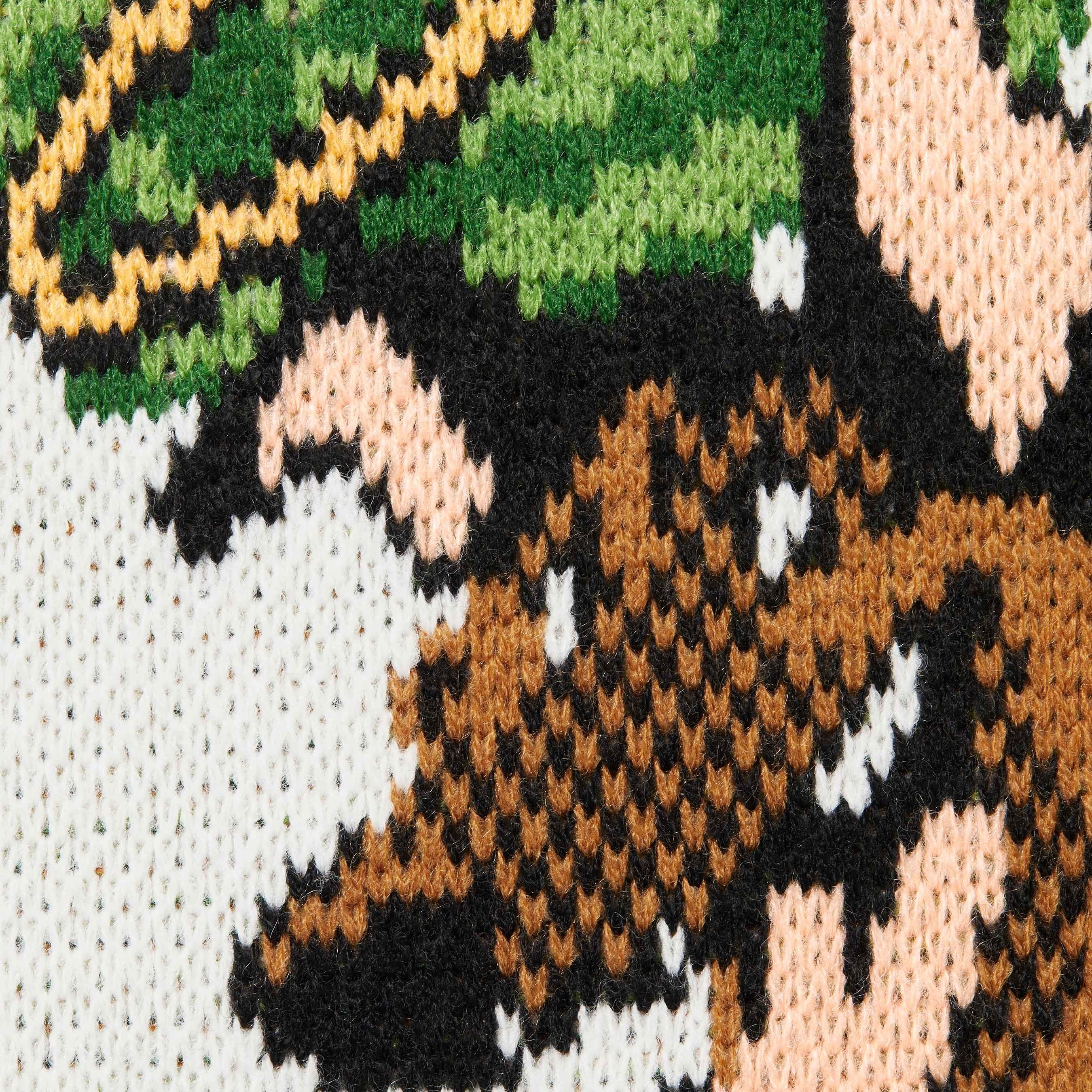 Acrylic with jacquard knit graphic at front and back.