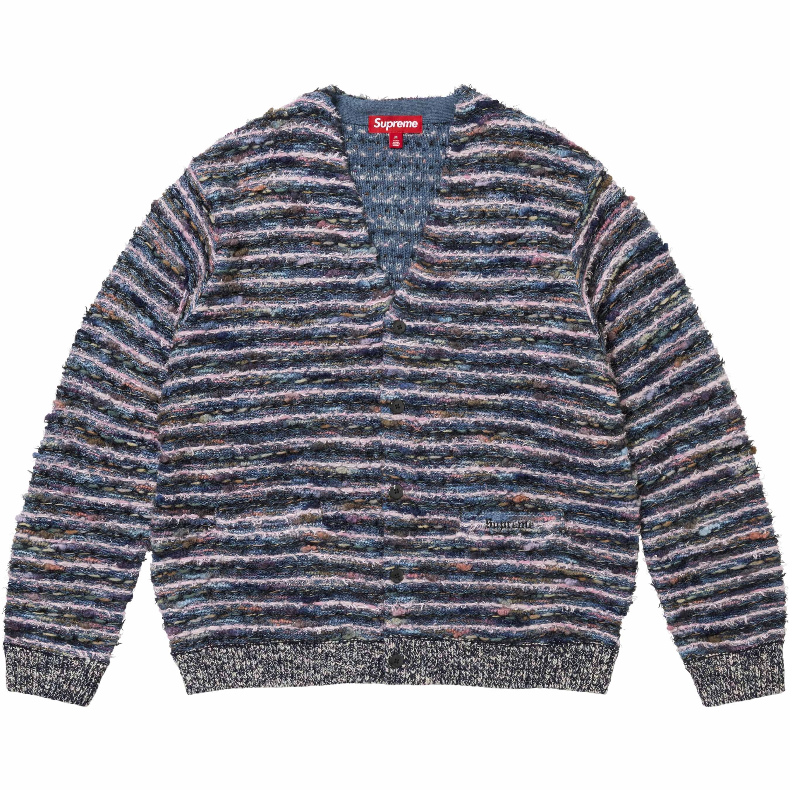 Textured knit wool blend with button front closure and welt hand pockets at lower front. Embroidered logo at left pocket. Fabric made in Italy.