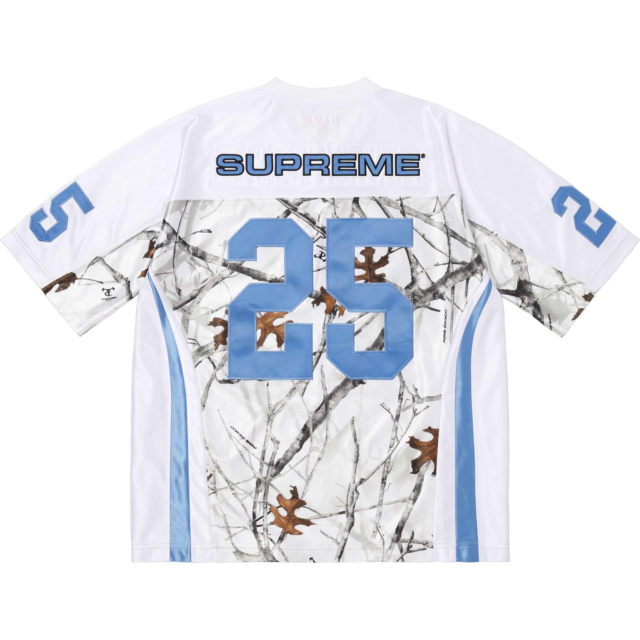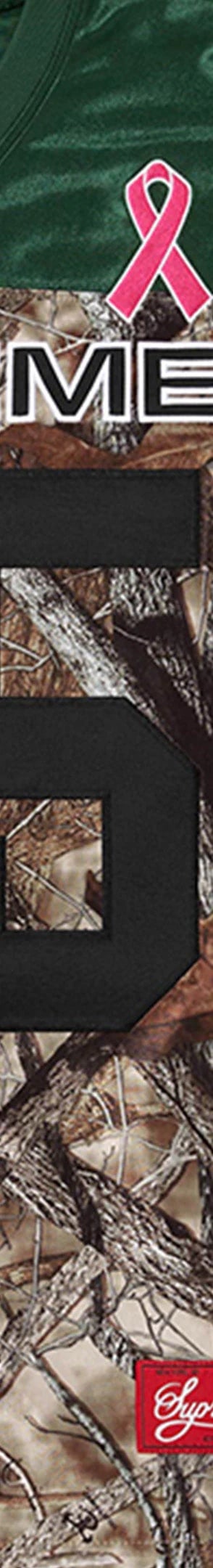Poly dazzle with tackle twill appliqué at front, sleeves and back. Embroidered graphic on chest and athletic label at lower front. Supreme supports Susan G. Komen®.