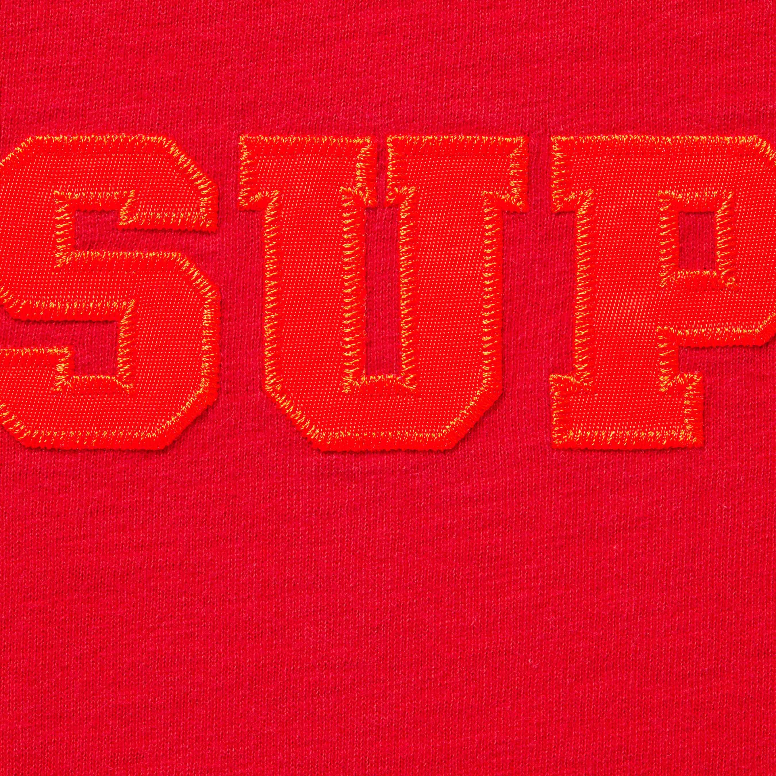 All cotton slub jersey crewneck with tackle twill logo appliqué at chest. Athletic label at lower front.