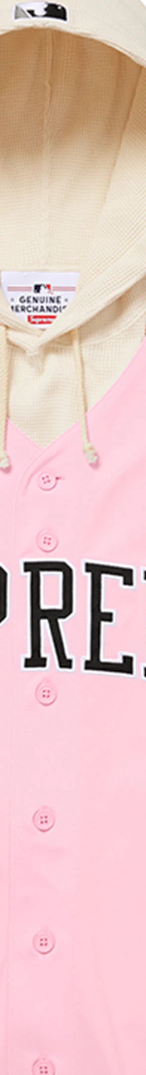 All cotton waffle thermal with pouch pocket. Poly sand knit jersey top layer with button front closure. Tackle twill logo appliqué at chest and graphic at back. Embroidered graphic on hood and athletic label at lower front. Official White Sox™ merchandise made exclusively for Supreme.
