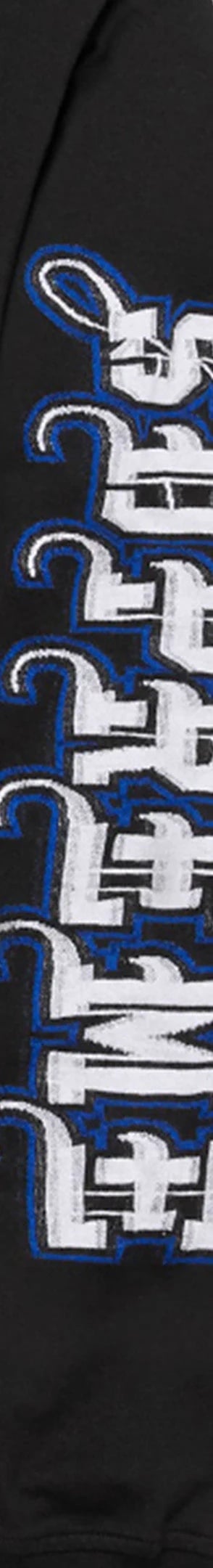Cotton blend jersey crewneck with intarsia knit logos at sleeves.