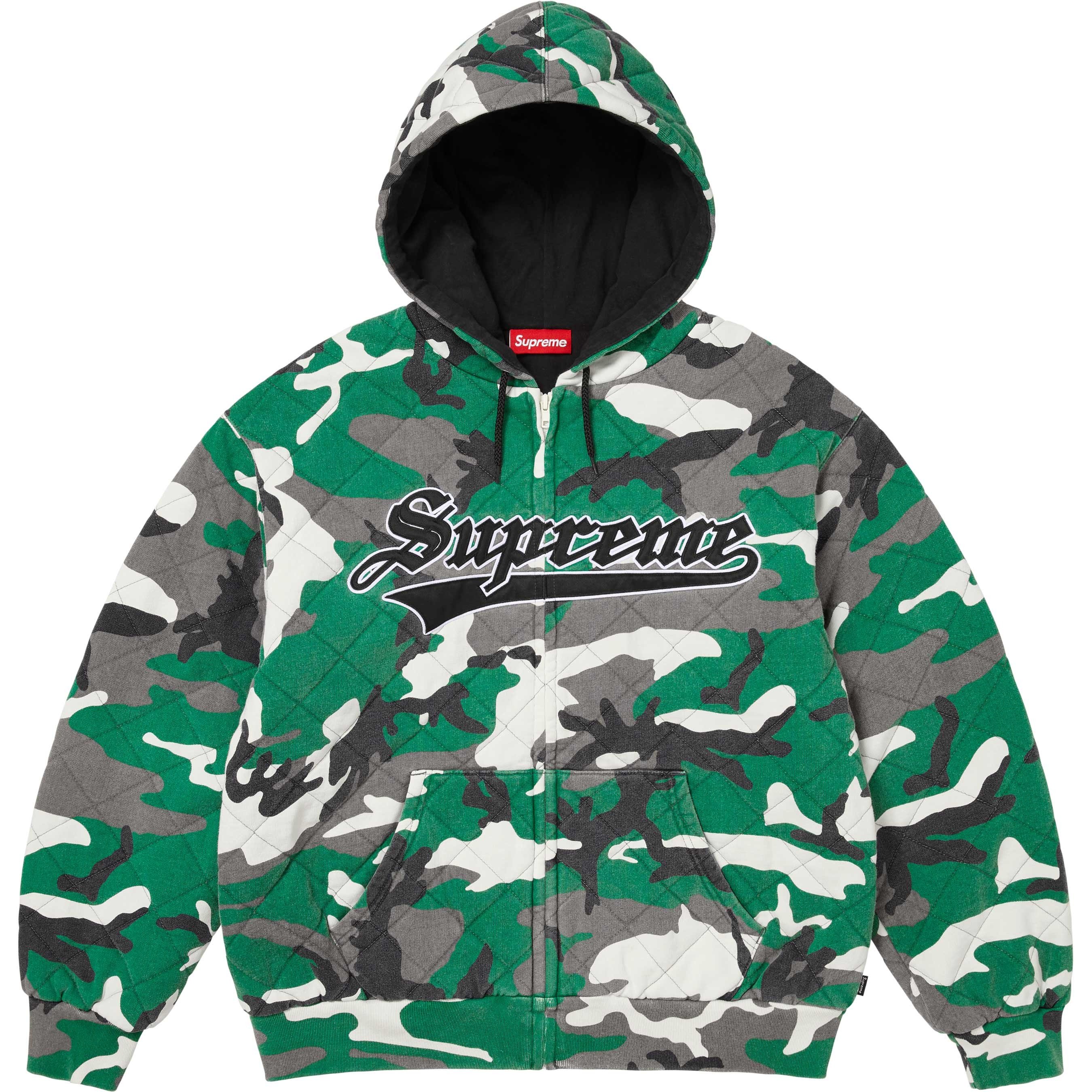 Quilted brushed-back fleece with cotton jersey lining, full zip closure and pouch pocket. Tackle twill logo appliqué at chest.