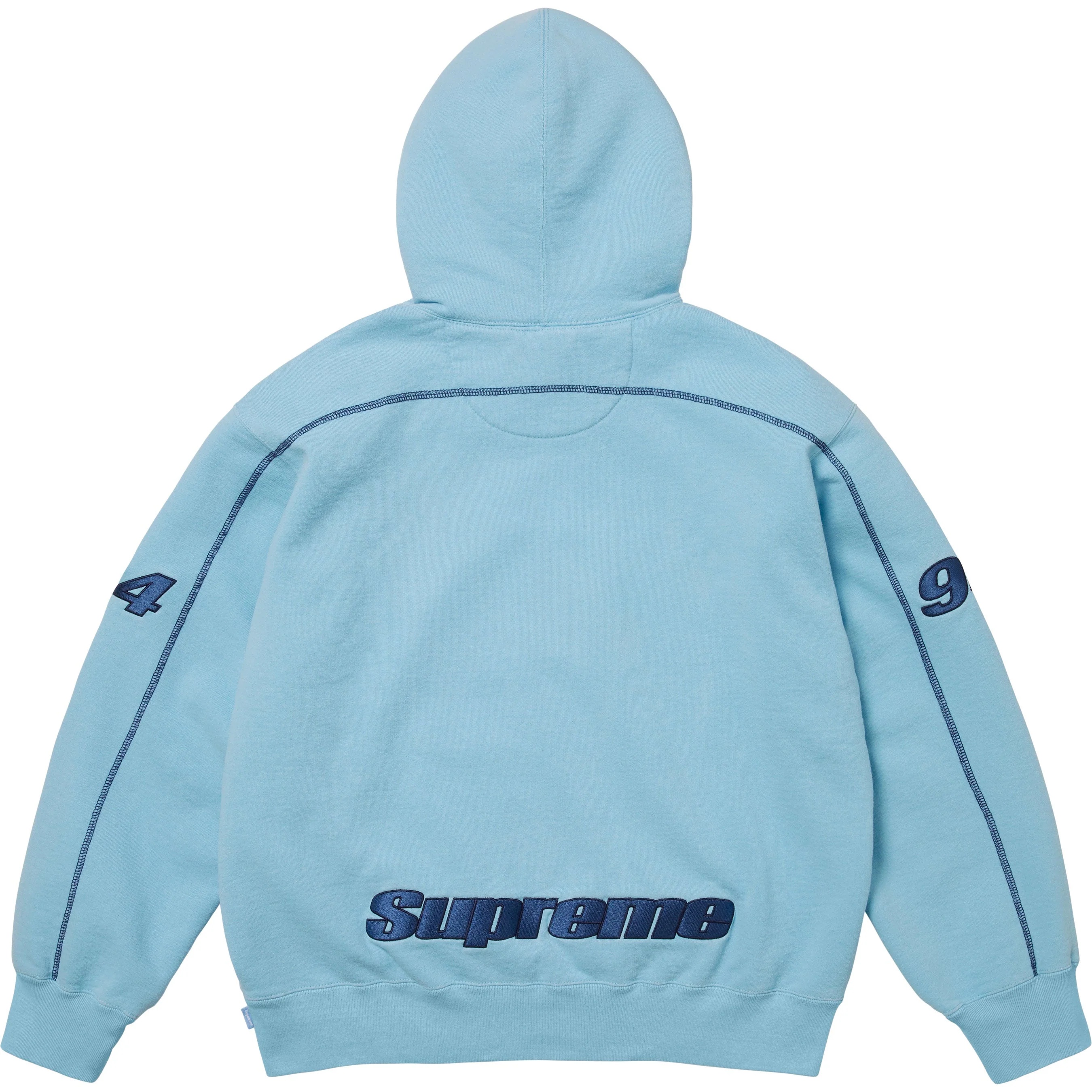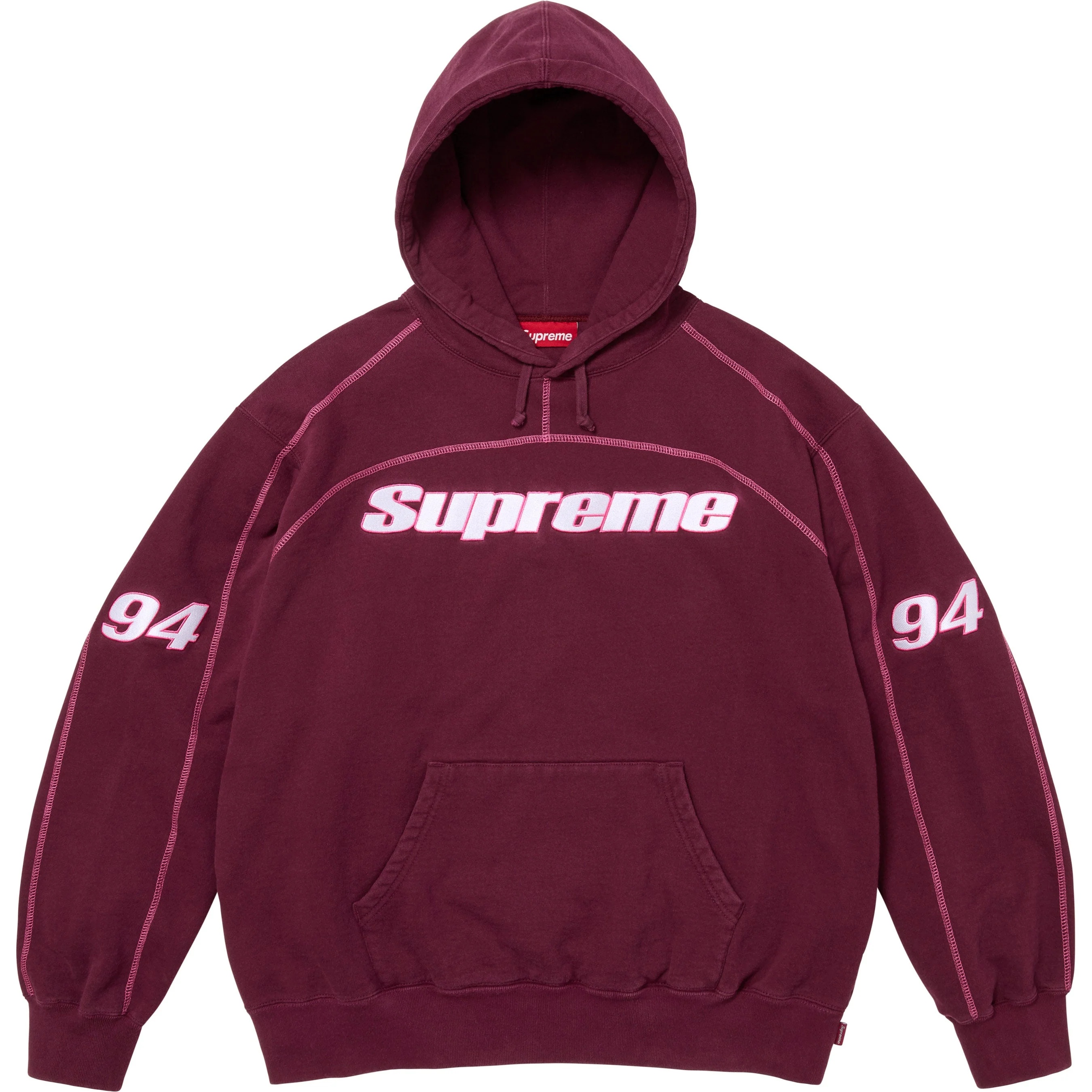 Brushed-back fleece with pouch pocket. Embroidered logos on chest and back hem. Embroidered graphics on sleeve.