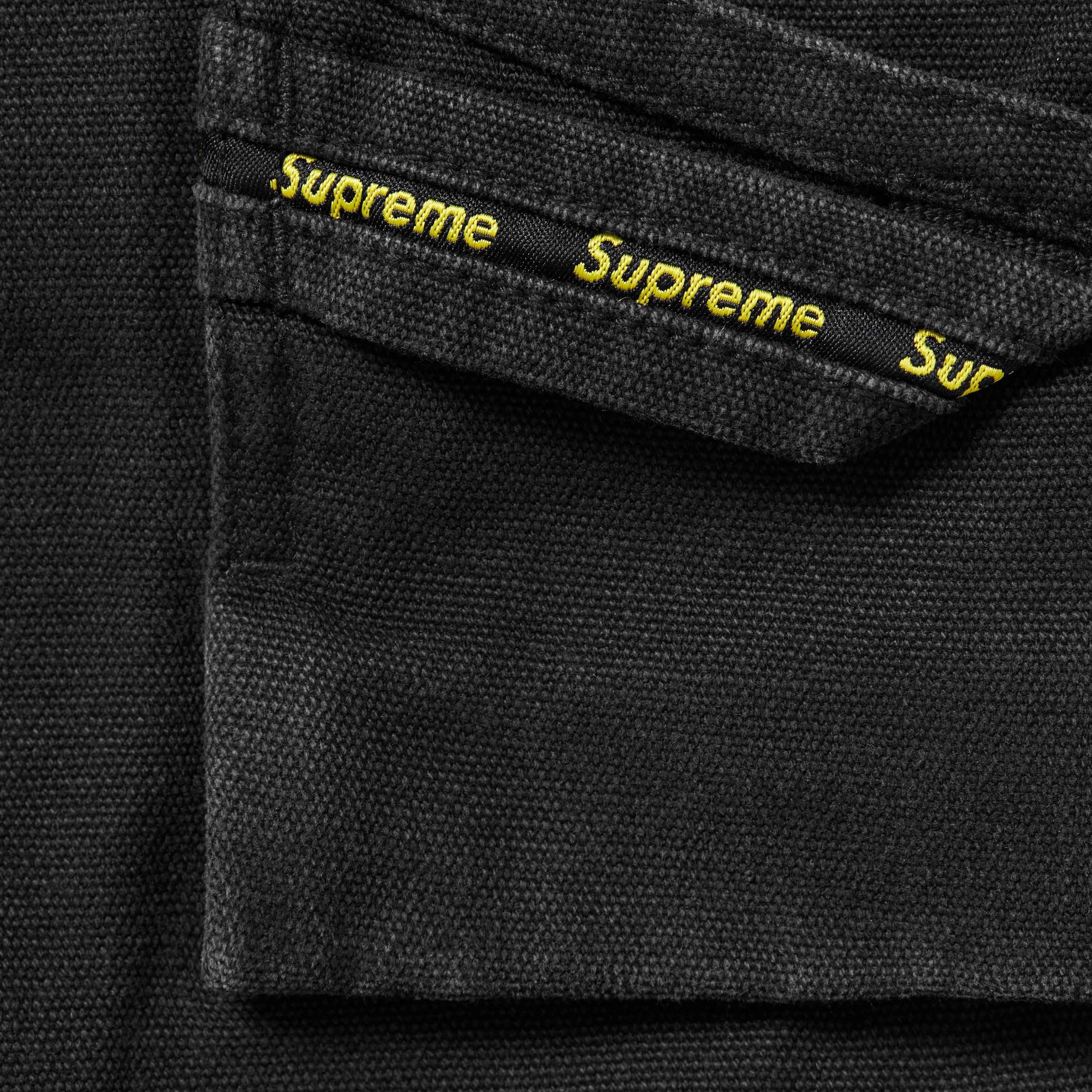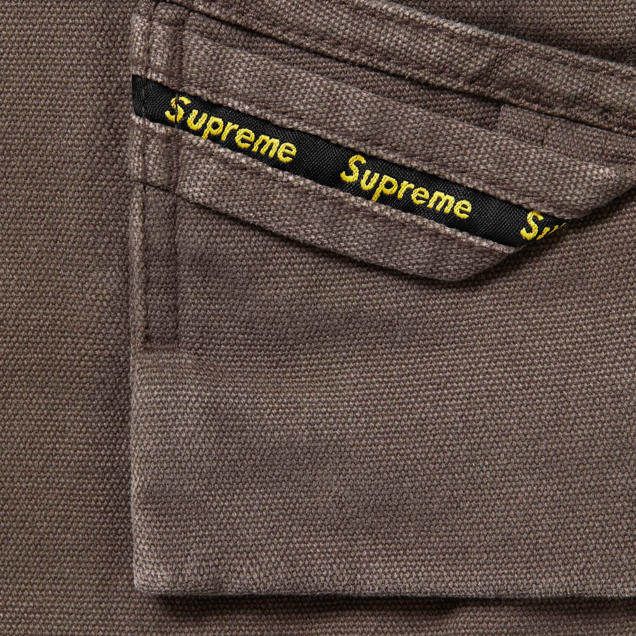 All cotton canvas. Slanted front hand pockets with velcro flap cargo pockets at seat and thighs. Utility style with zip fly, single coin pocket, utility pockets and hammer loop at left leg with woven logo taping. Zip-off lower legs with velcro flap cargo pockets.