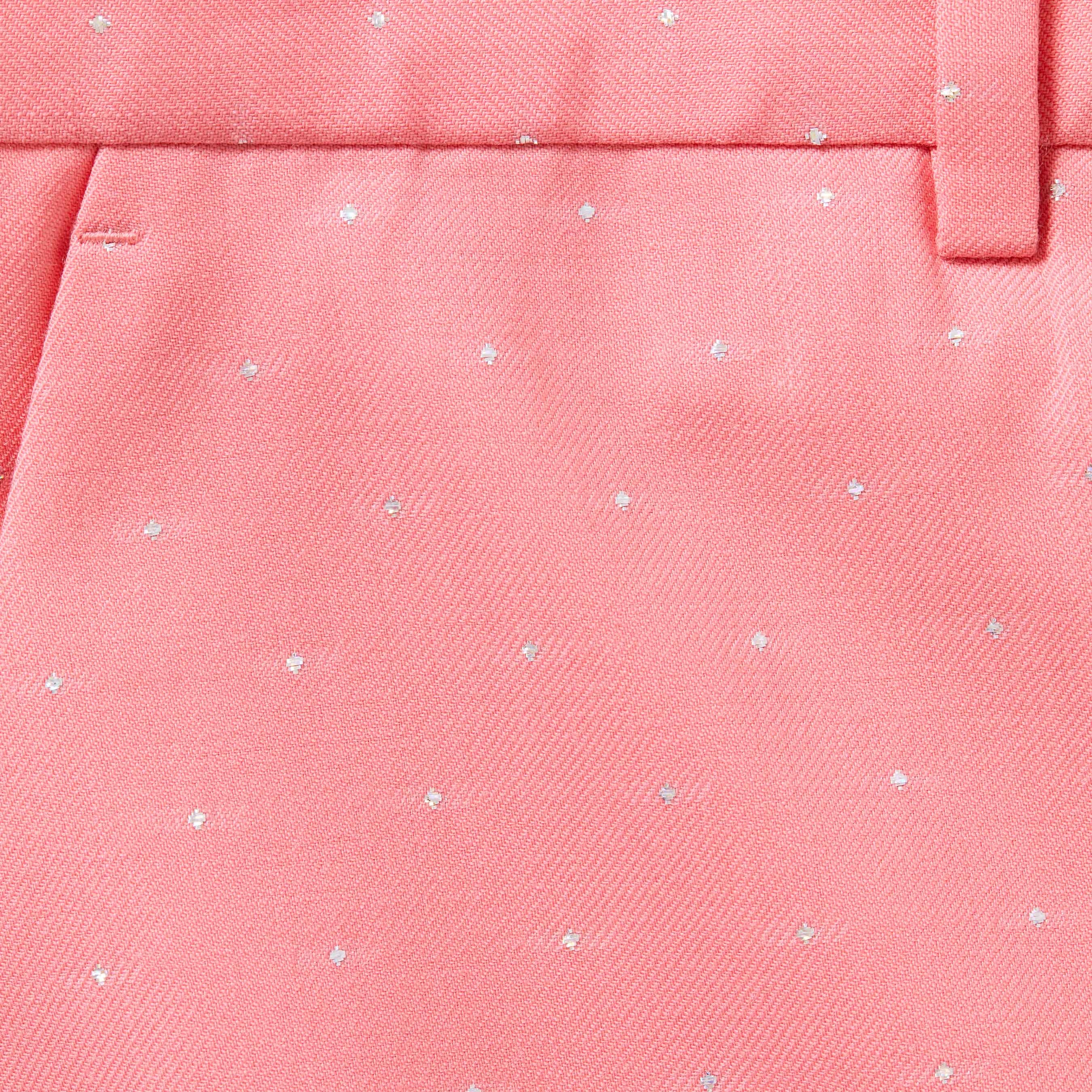 Lanificio Piemontese wool with metallic pattern. Half-lined with jacquard logo viscose lining. Slanted front pockets with single coin pocket and back welt pockets with button closure. Zip fly and interior waistband curtain with woven logo taping. Fabric made in Italy.