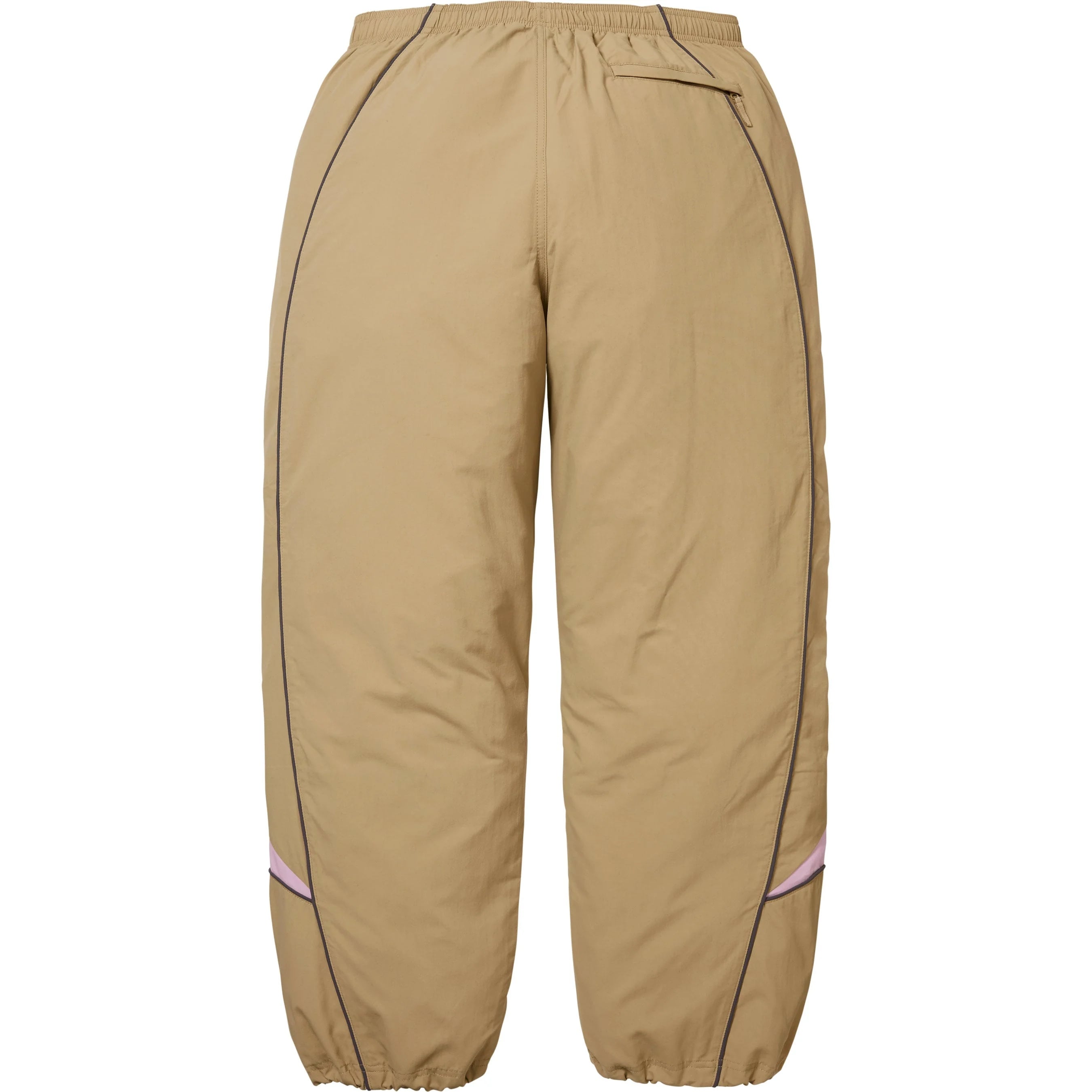 Water resistant Supplex® nylon taslan with mesh and taffeta lining. On seam zip hand pockets and single back zip pocket. Elastic waistband with interior drawcord and interior elastic shockcord at cuffs. Contrast piping throughout and embroidered logo at thigh.
