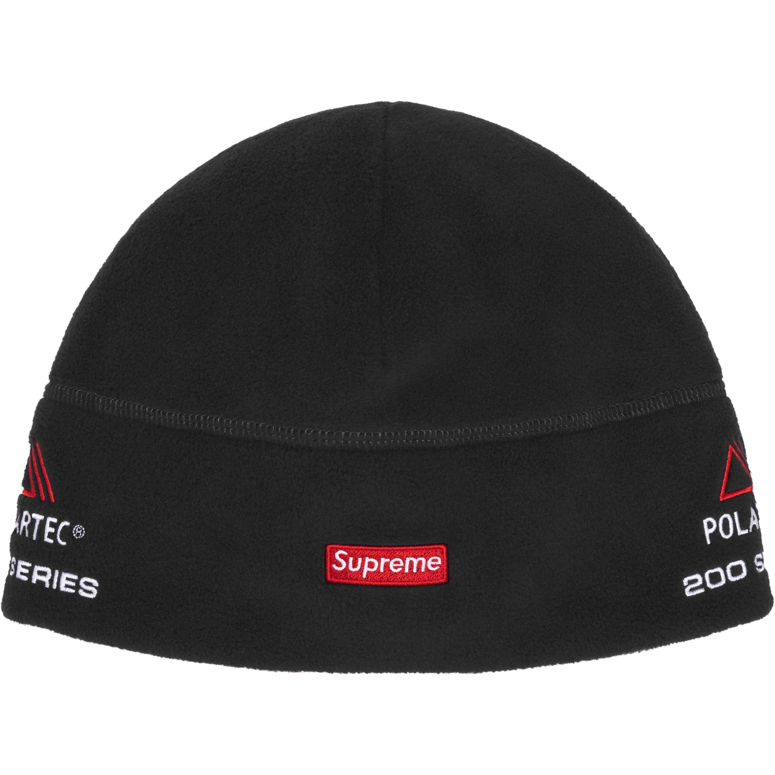 Polartec® 200 fleece beanie with embroidered logos on front and sides.