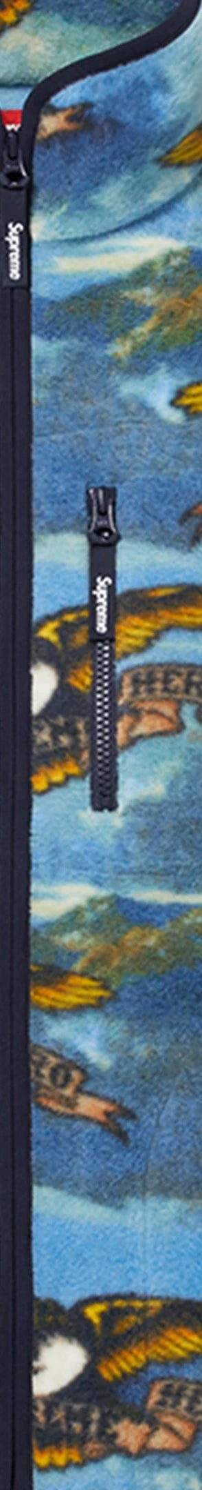 Polar fleece with printed graphic and full zip closure. Zip hand pockets at lower front and zip chest pocket. Elastic binding at collar, cuffs and hem.