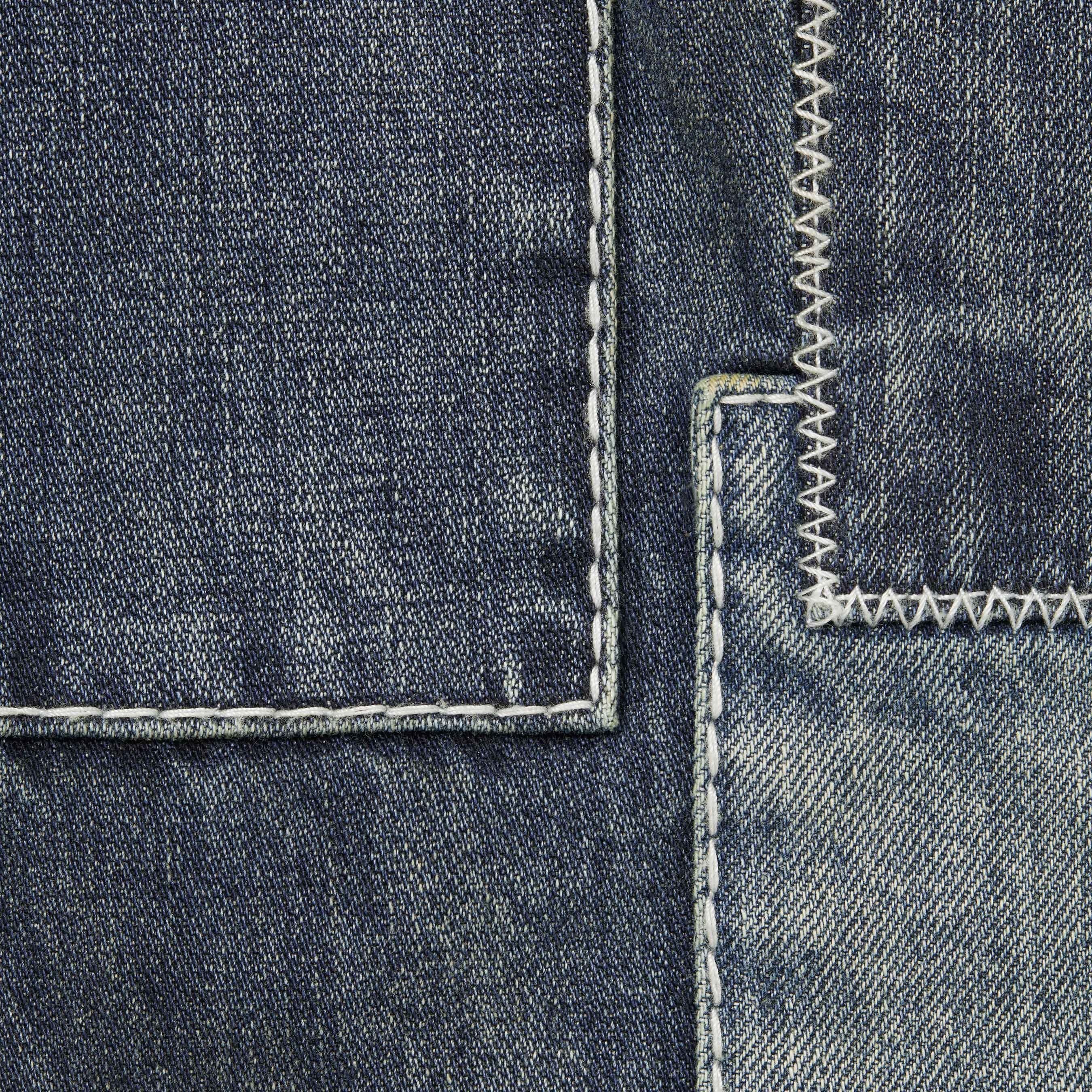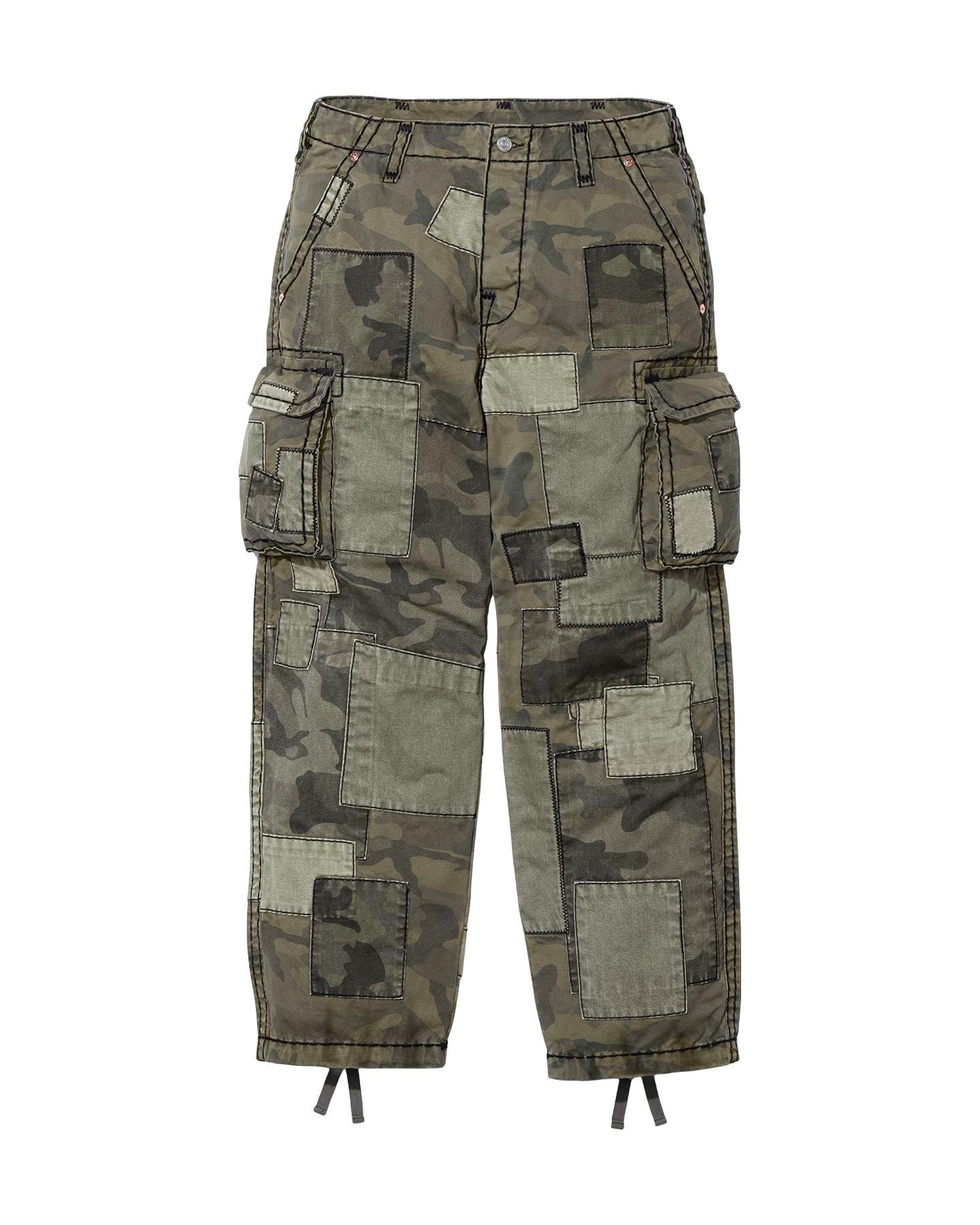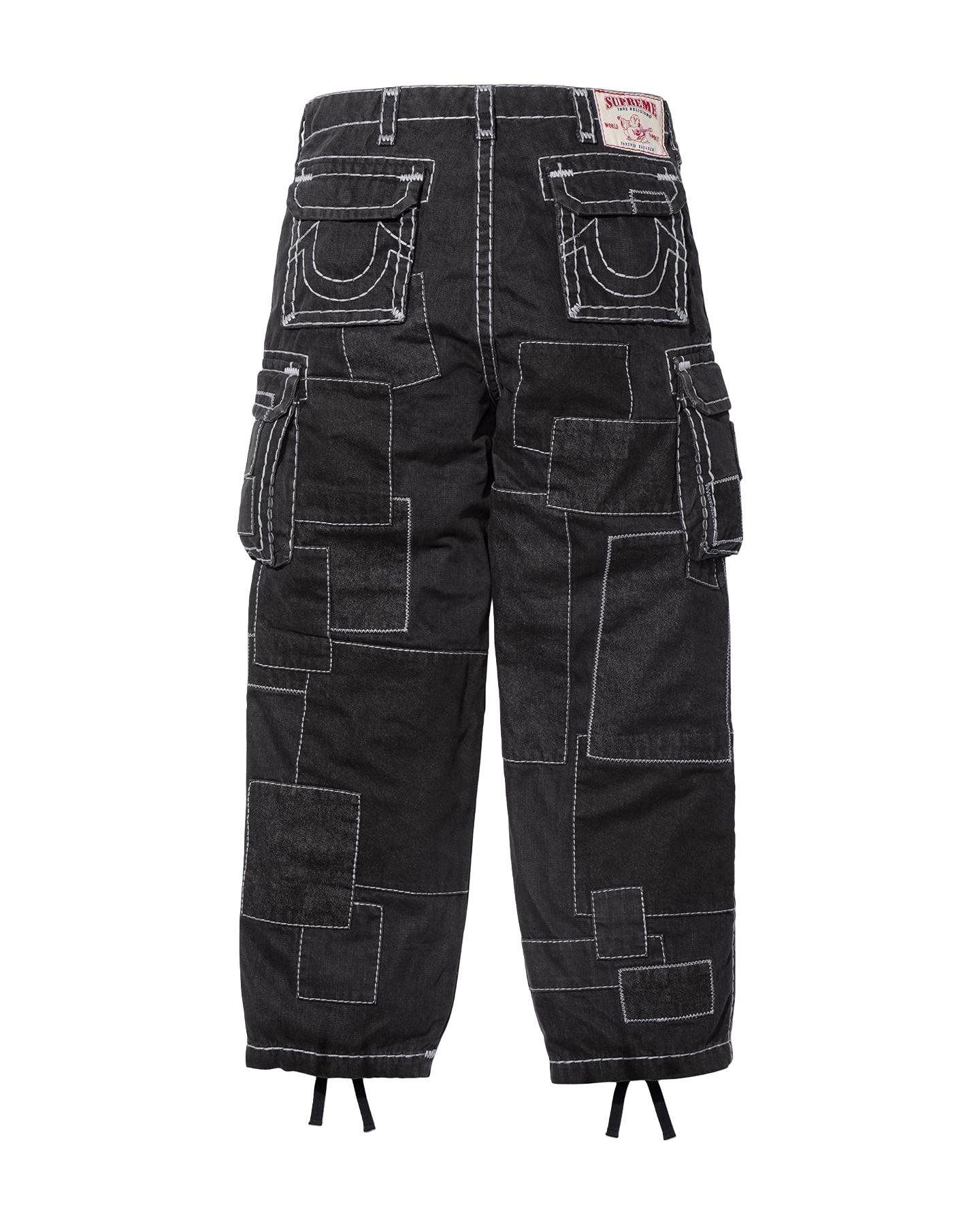 All cotton 12 oz. denim with patchwork pattern and Super T stitch. Slanted front pockets, and snap flap cargo pockets at seat and thighs. Button fly closure and drawstring at cuffs. Woven logo label at back hem. Made exclusively for Supreme.