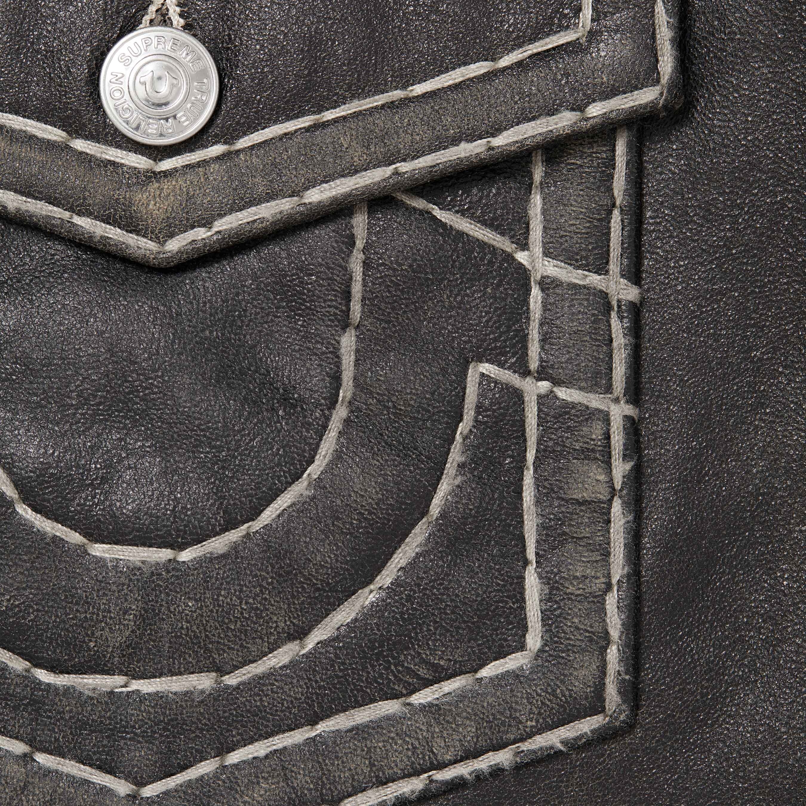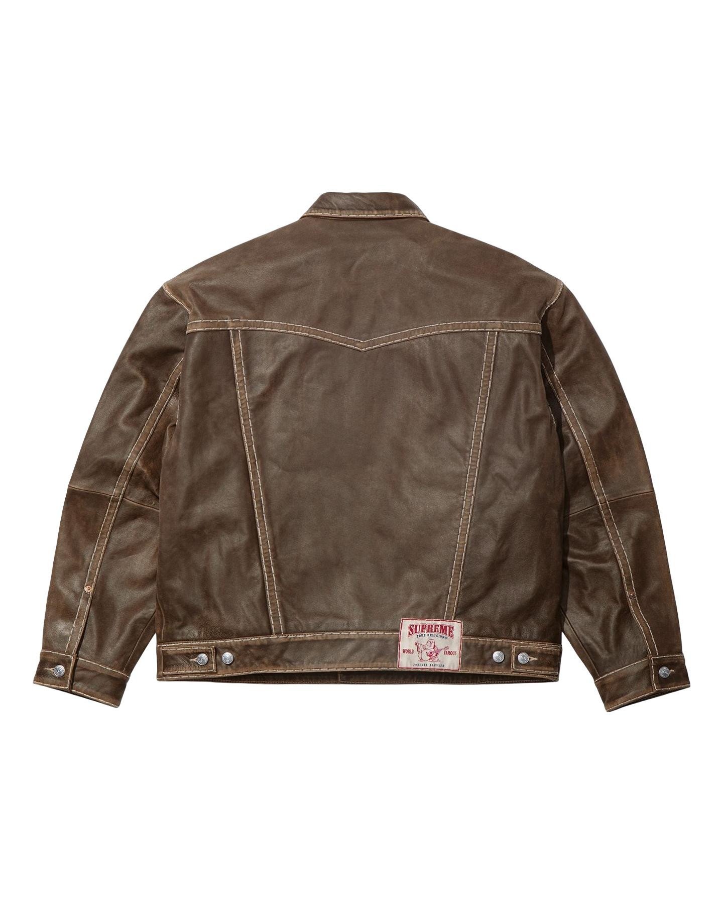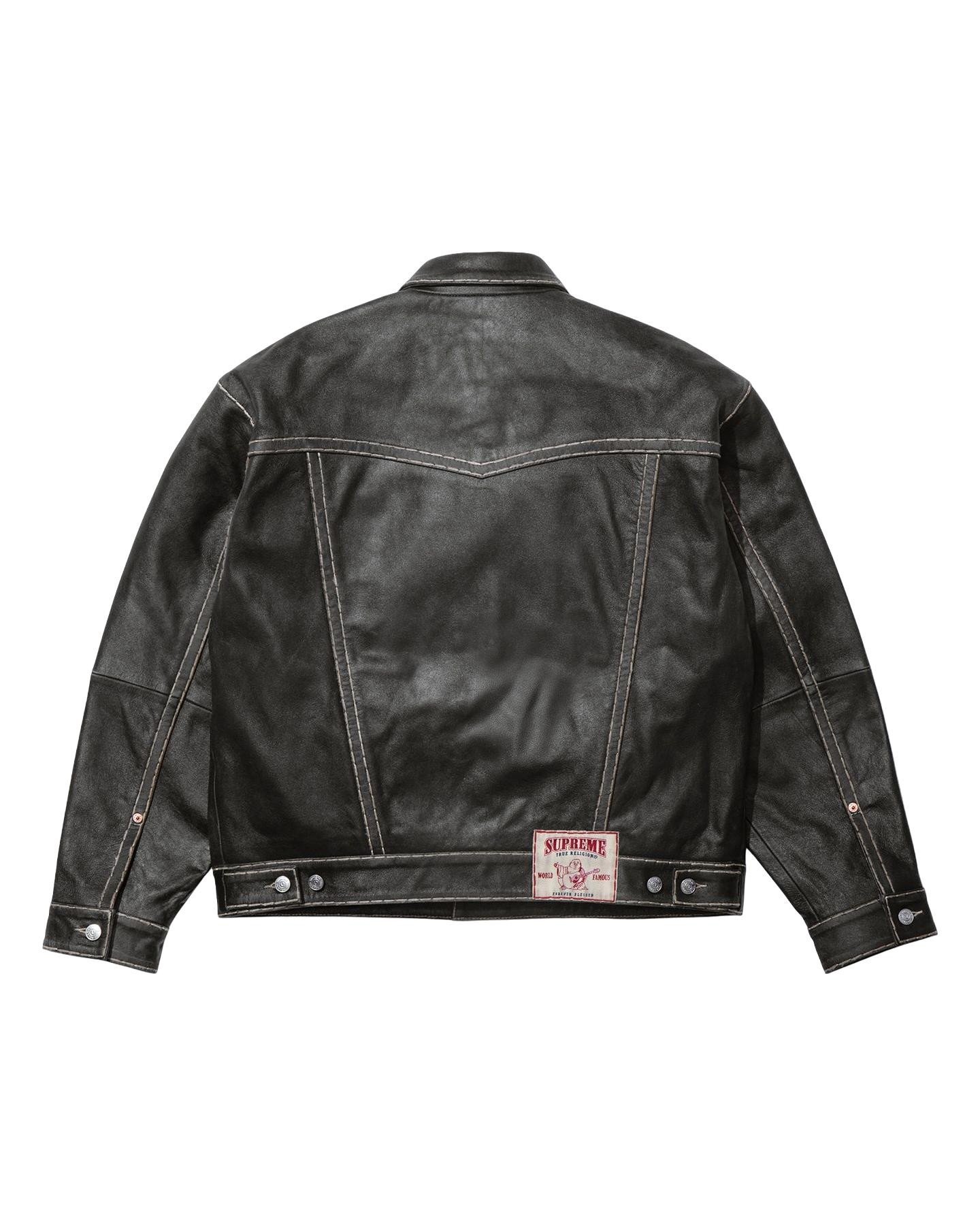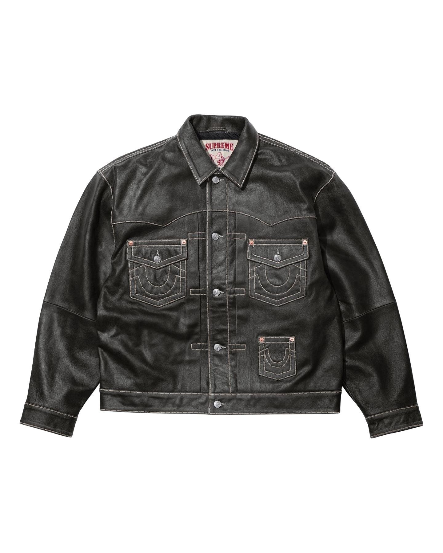 Sheepskin leather with Super T stitch, taffeta lining and button front closure. Button flap patch pockets at chest and patch pocket at lower front. Tab adjusters at cuffs and back hem with woven logo label. Made exclusively for Supreme.