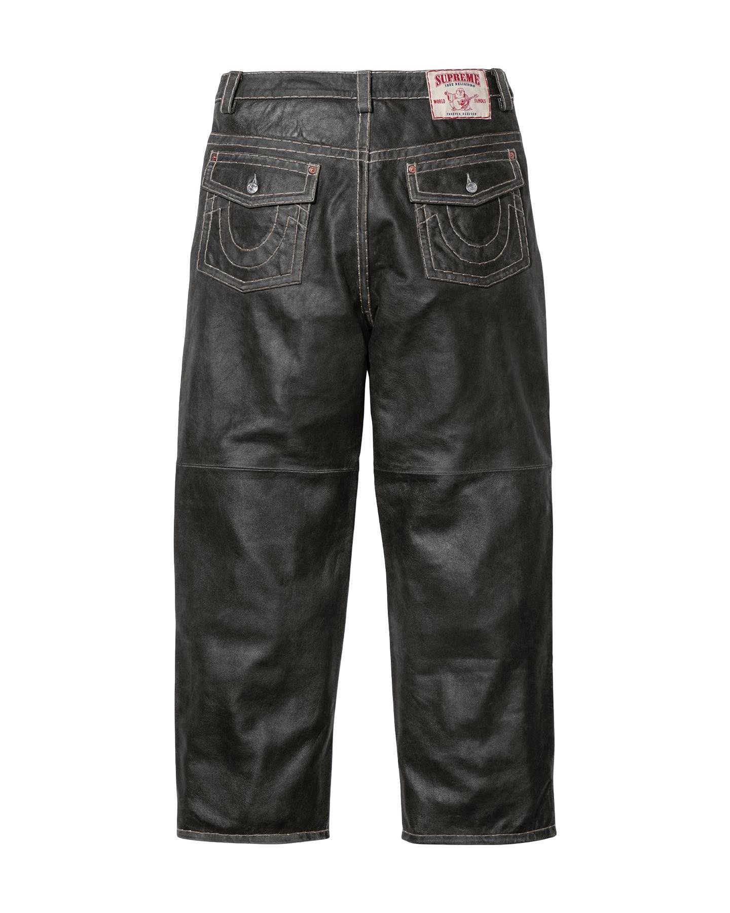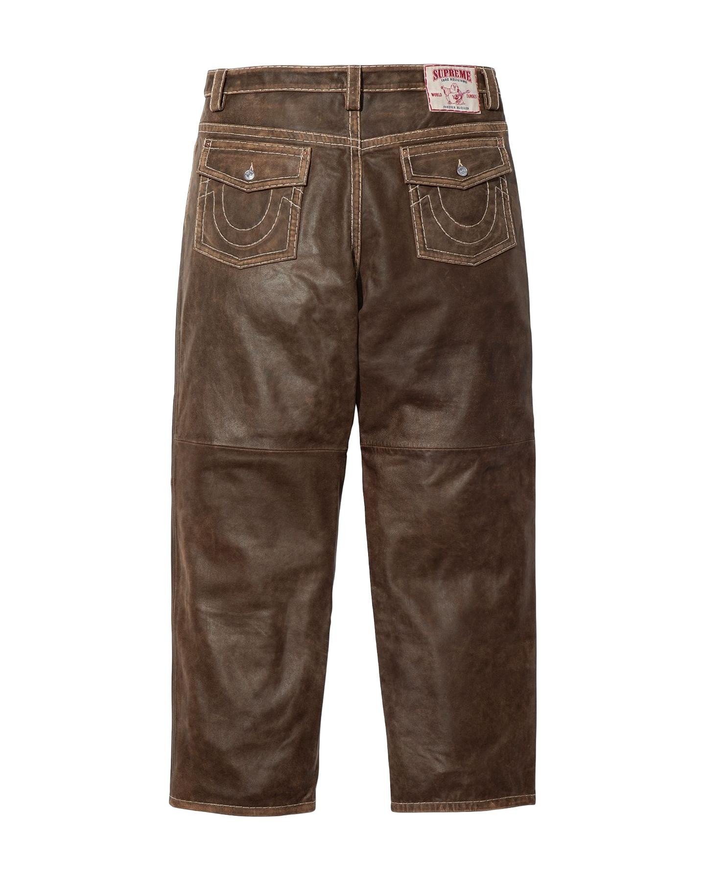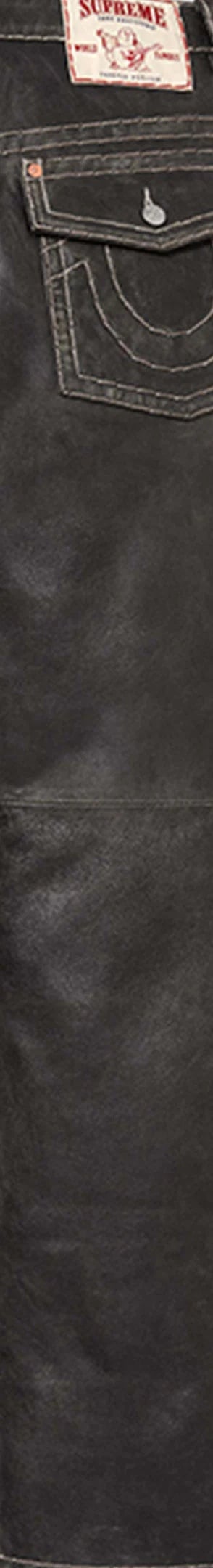 Sheepskin leather with Super T stitch, taffeta lining and loose fit. Classic 5-pocket style with zip fly, single coin pocket, copper rivets and woven logo label at back hem. Made exclusively for Supreme.