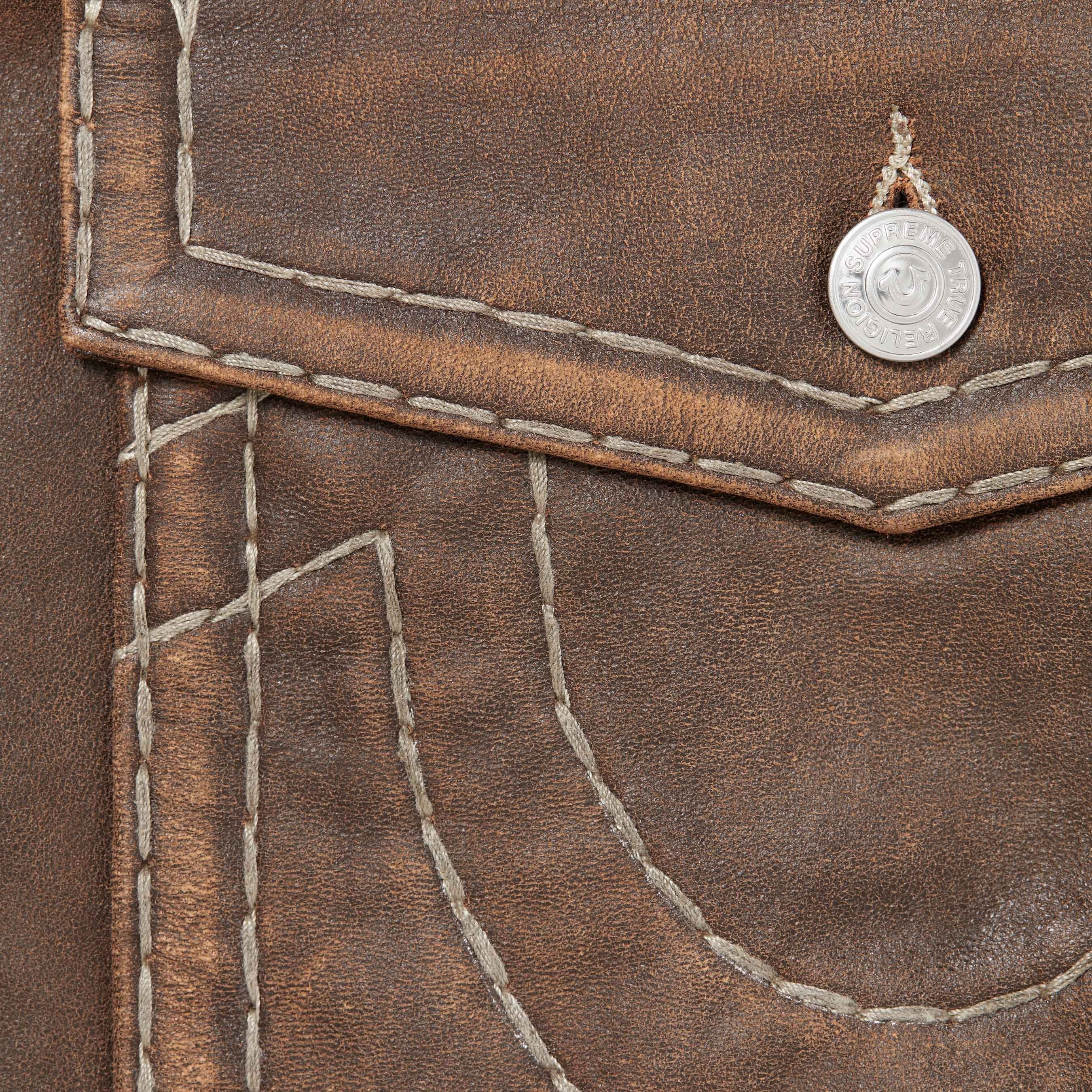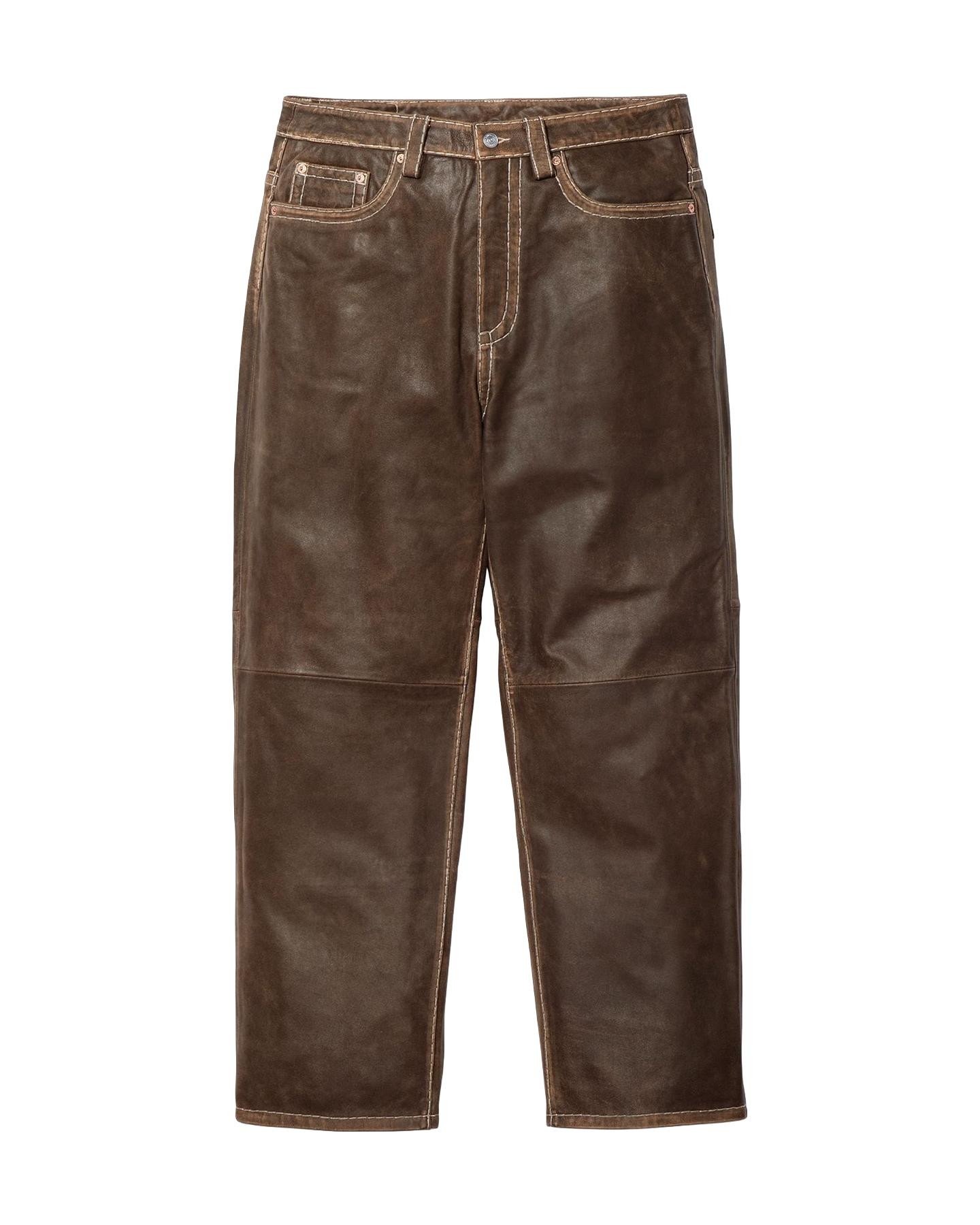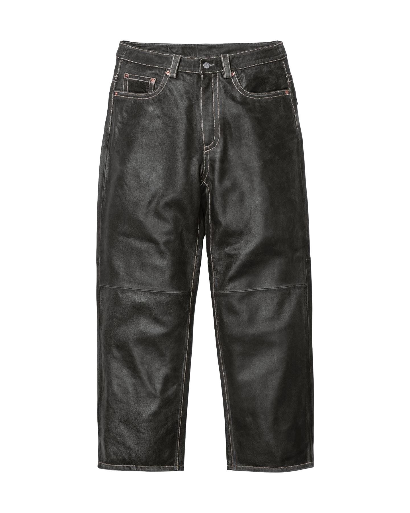 Sheepskin leather with Super T stitch, taffeta lining and loose fit. Classic 5-pocket style with zip fly, single coin pocket, copper rivets and woven logo label at back hem. Made exclusively for Supreme.