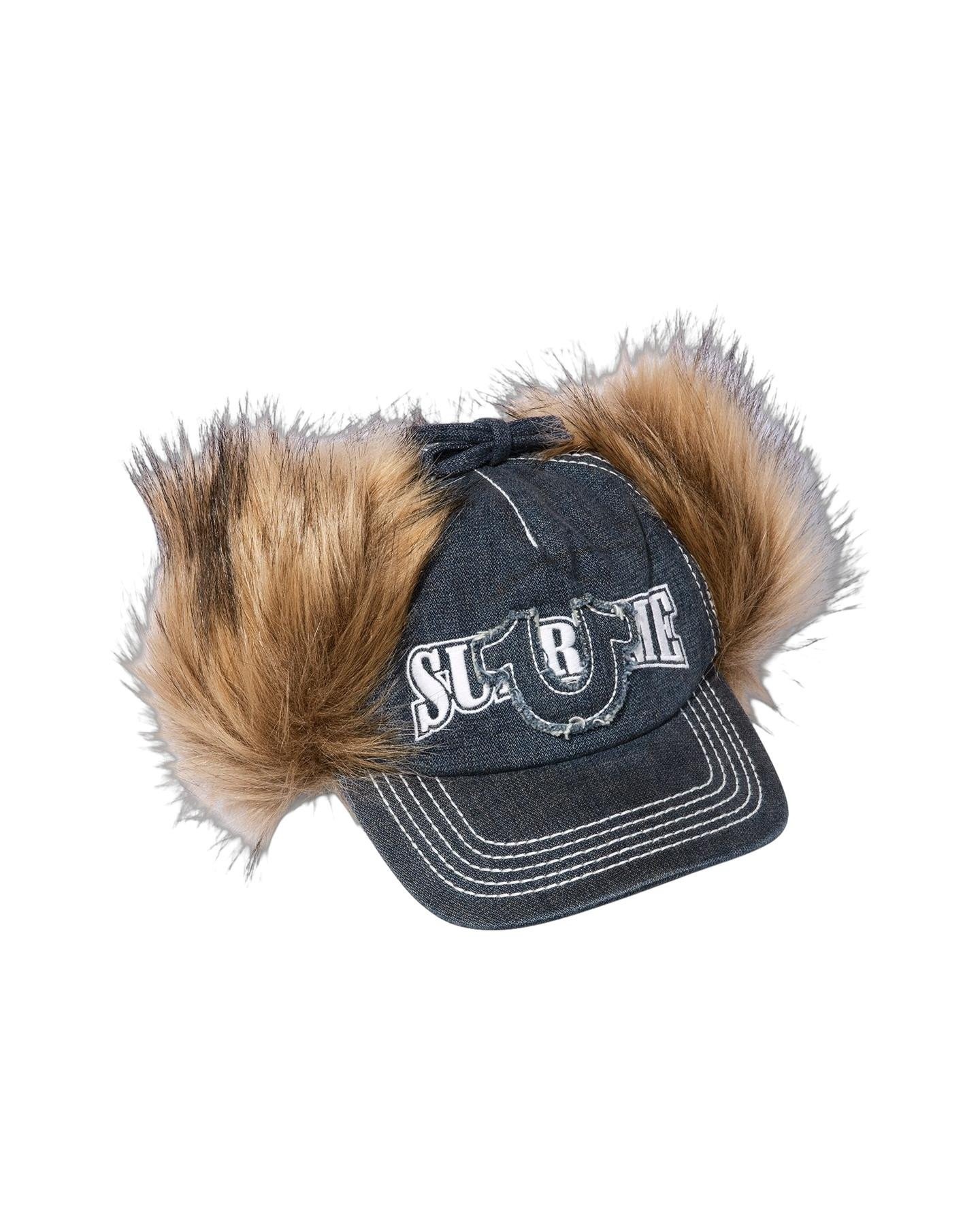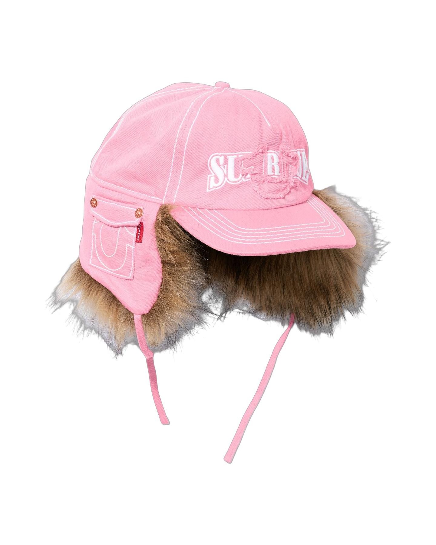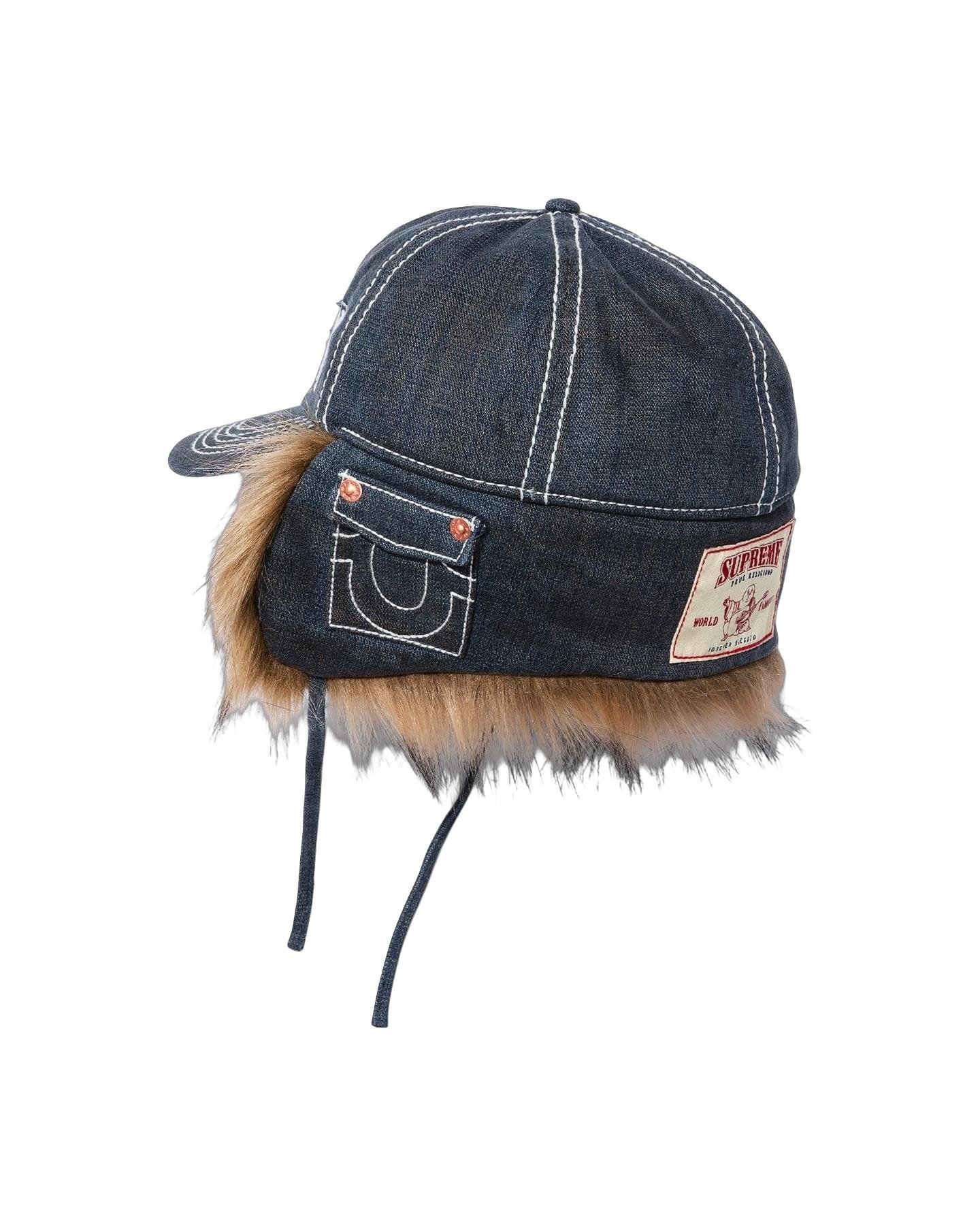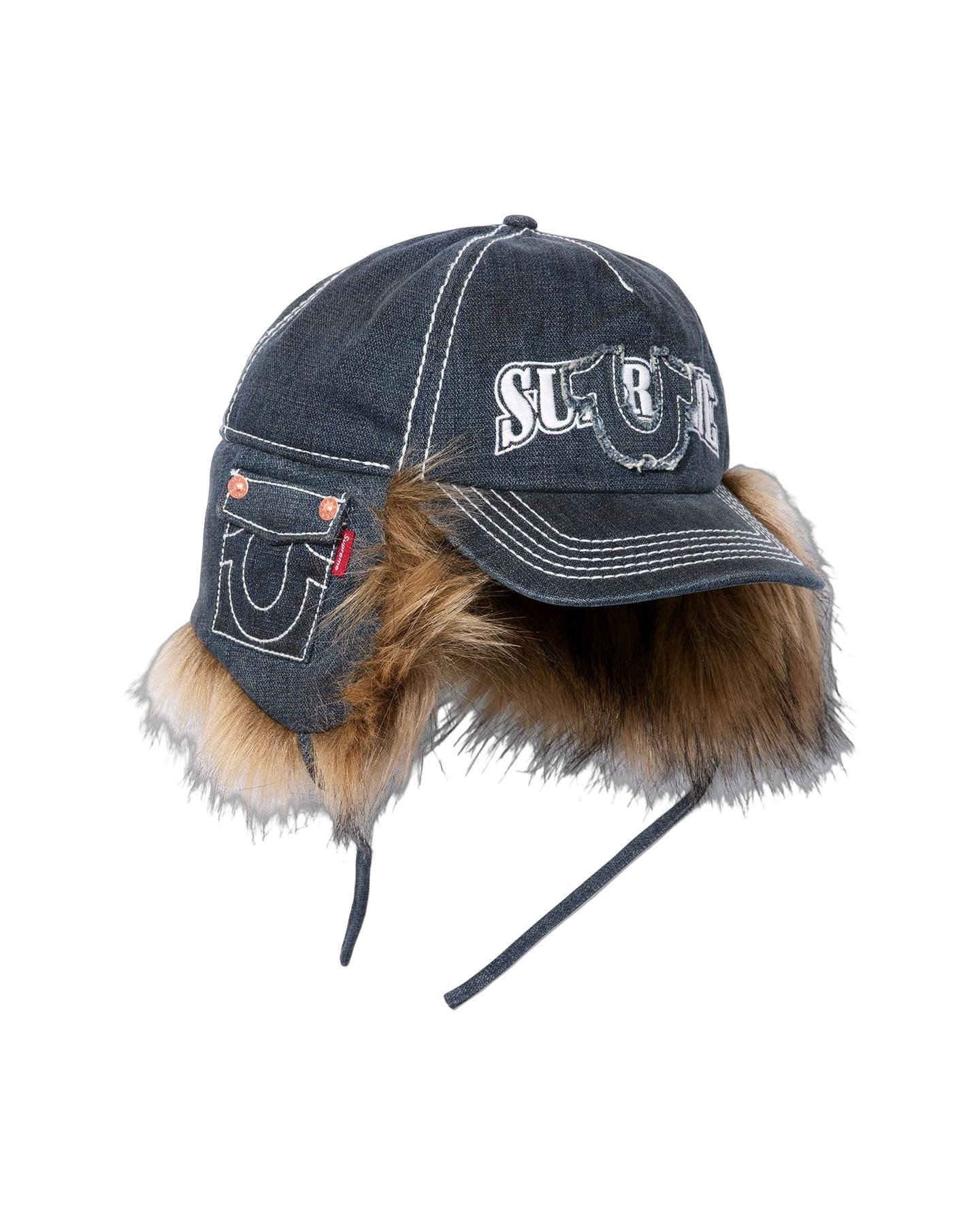 All cotton twill 5-Panel earflap hat with Big T stitch, faux fur trim and quilted satin lining. Velcro flap patch pockets with embroidered logos on earflaps. Tie closures at earflaps. Logo appliqué and embroidered logo at front. Woven logo label at back. Made exclusively for Supreme.