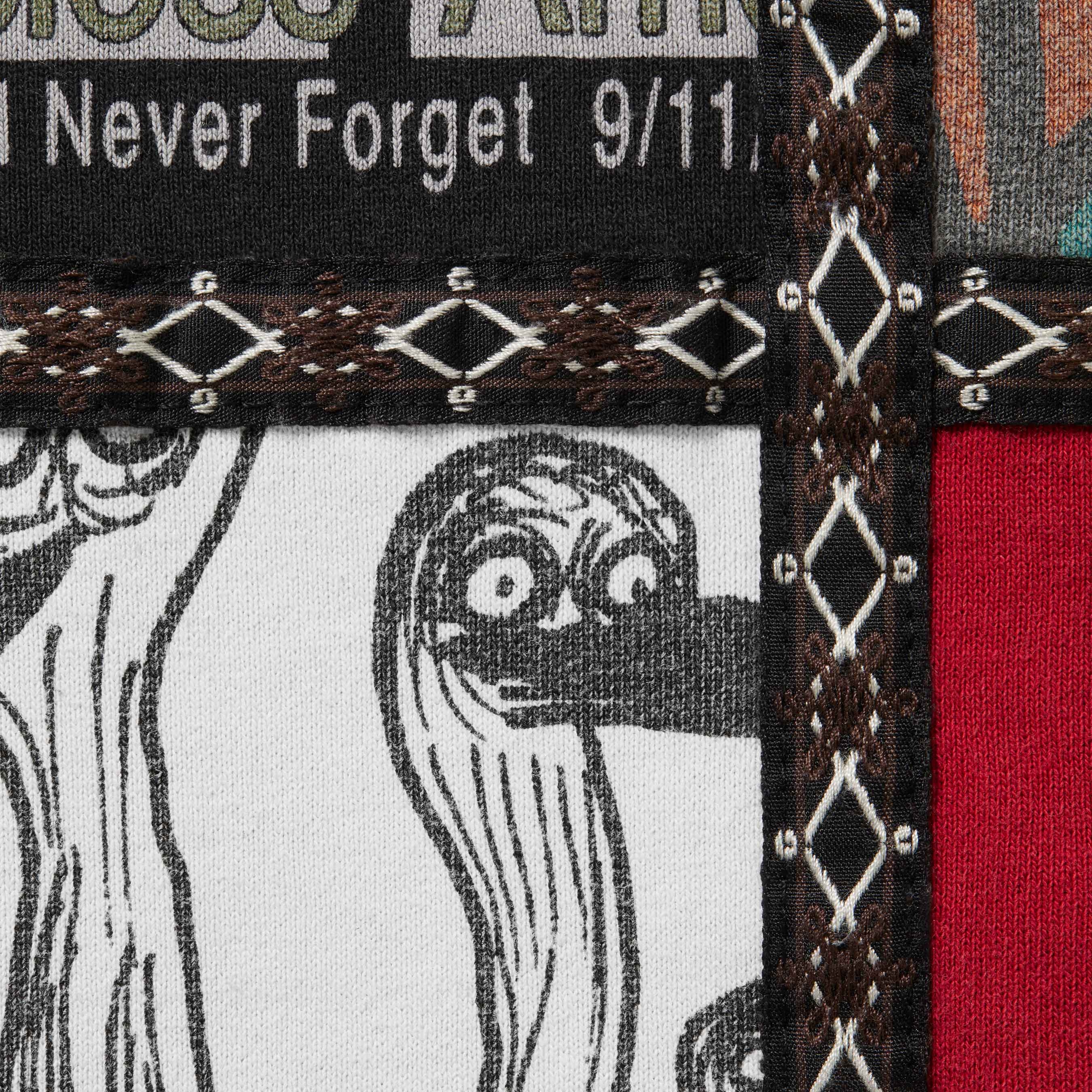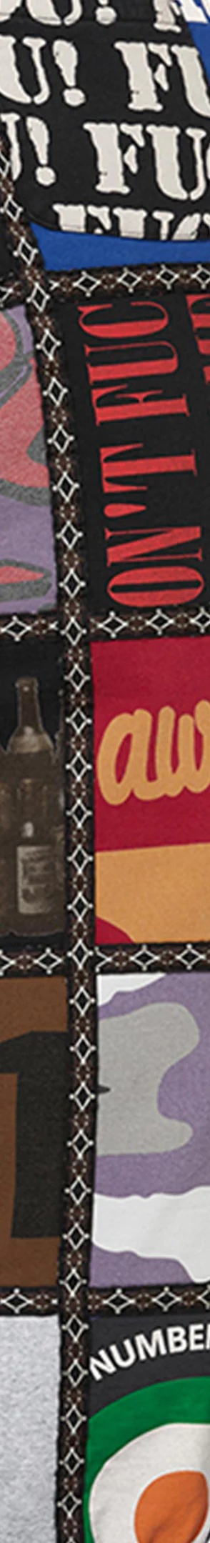 Brushed-back fleece with patchwork pattern. On seam hand pockets and single back patch pocket. Elastic cuffs and waistband with interior drawcord. Printed graphics and woven taping throughout.