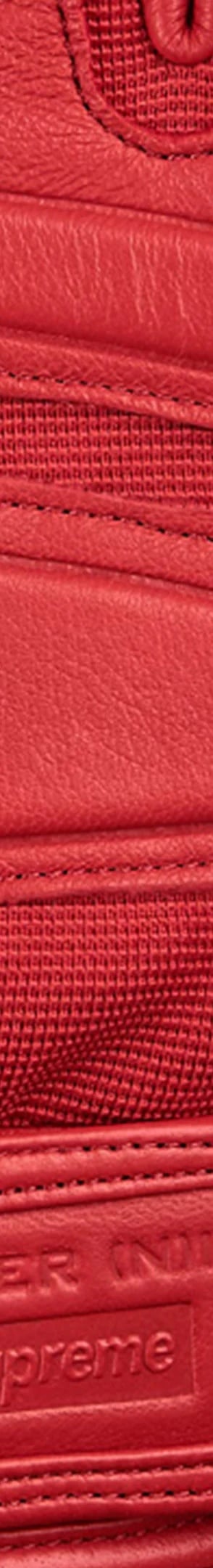 Leather gloves with ribbed top panels and suede palms. Debossed logos at leather velcro strap closure.