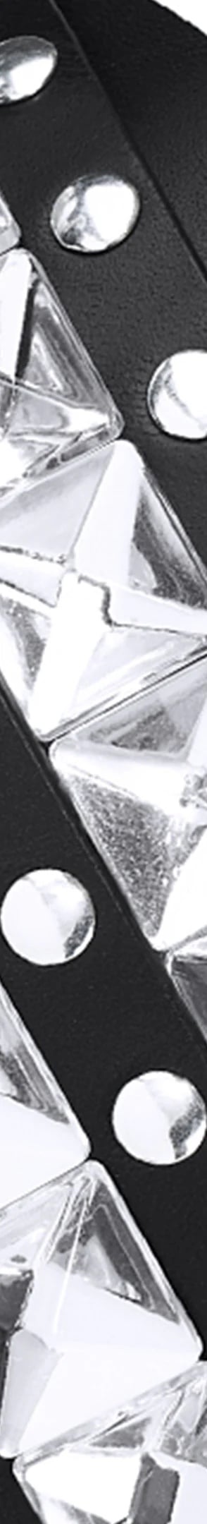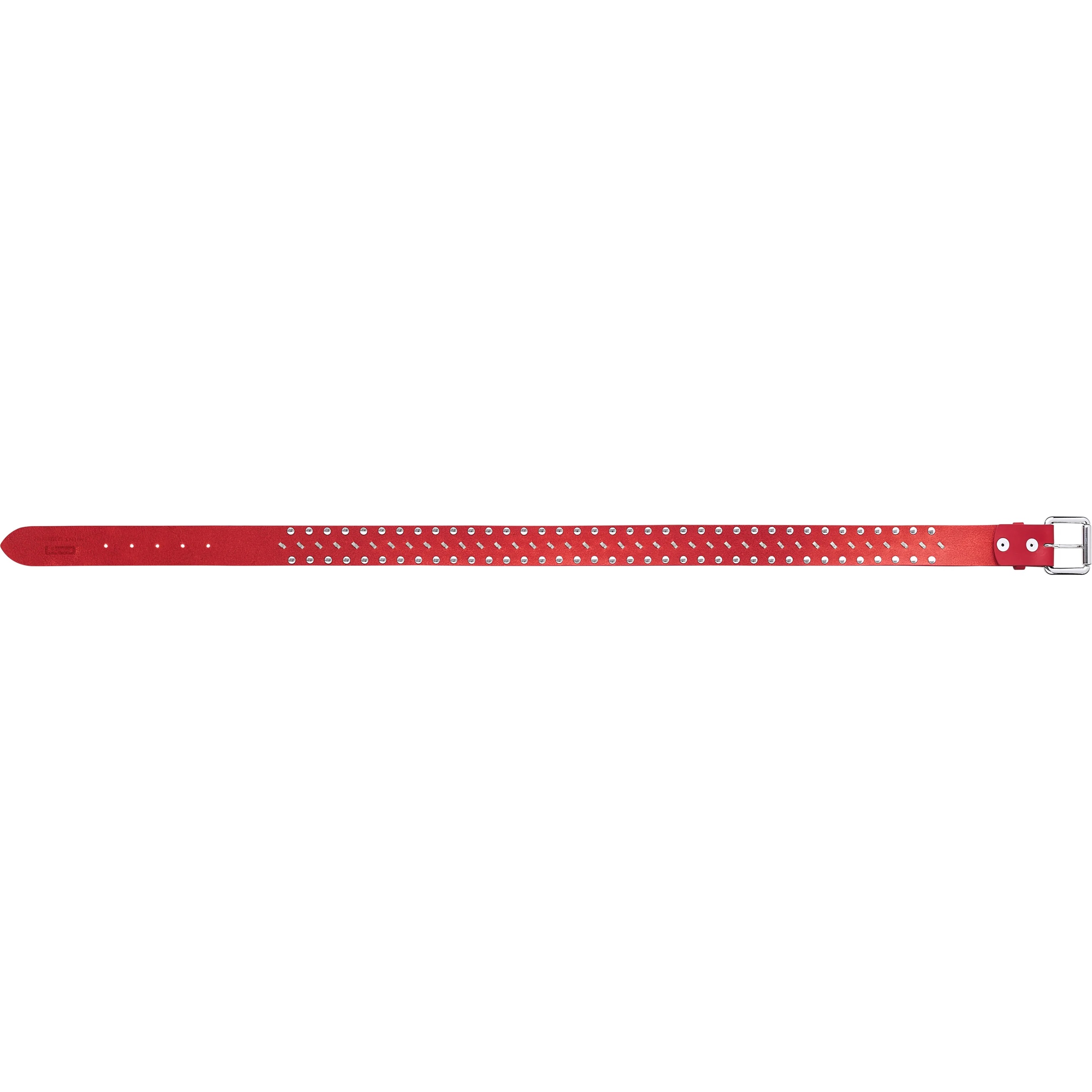 Cowhide leather belt with transparent plastic and metal studs. Debossed logos at back. Made in Italy.
