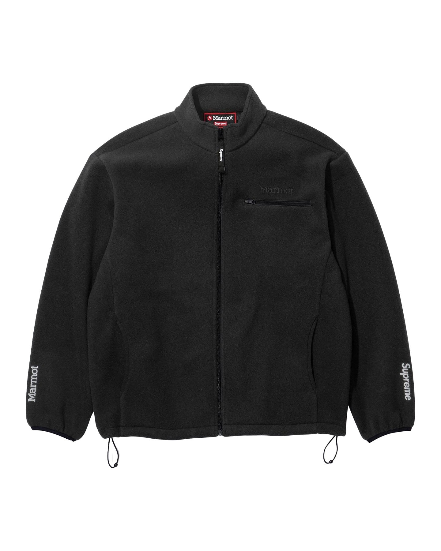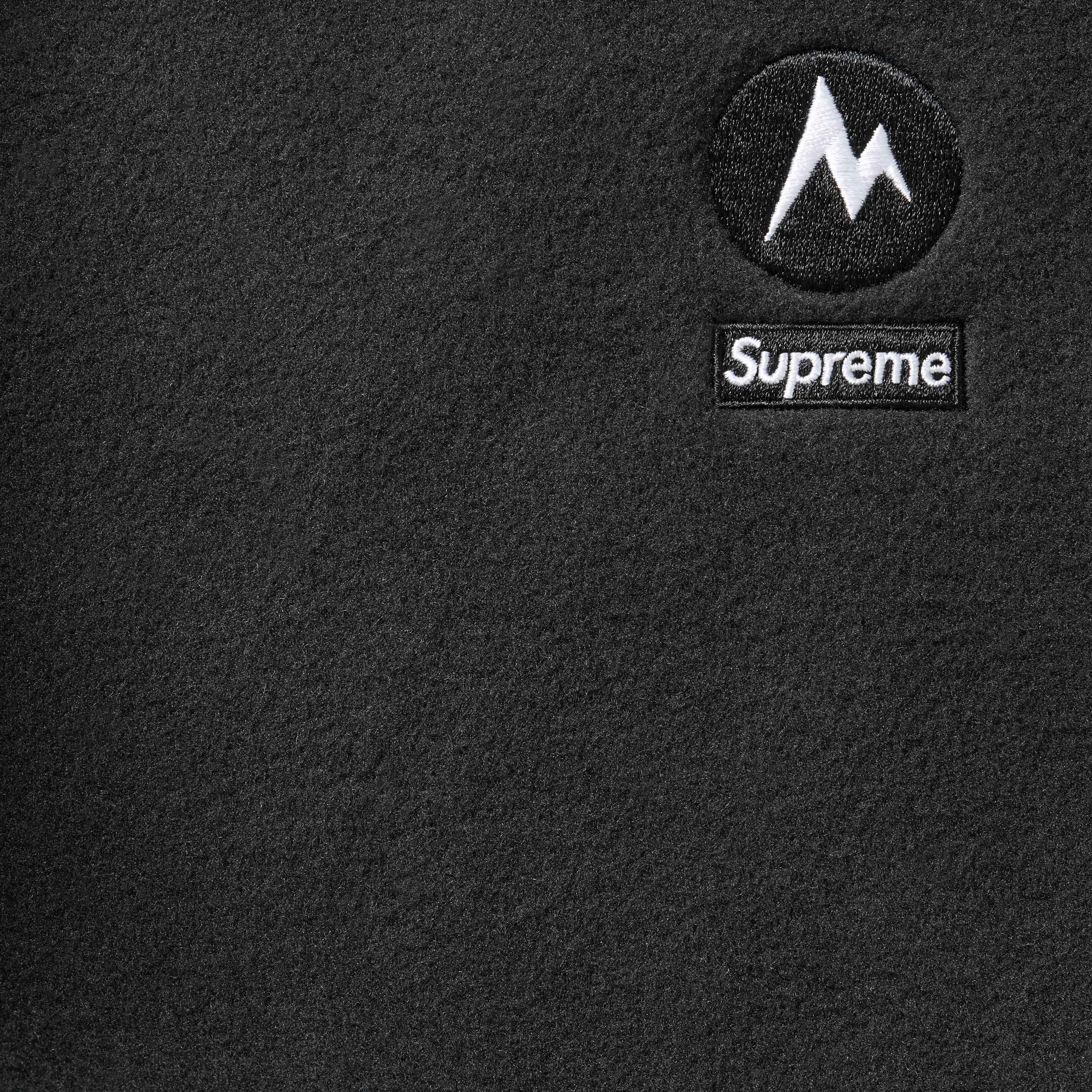 Polar fleece with full zip closure. On seam hand pockets at lower front with zip chest pocket. Interior elastic shockcord at hem with elastic binding at cuffs. Embroidered logos at chest and back neck. 3M® Reflective printed logos at cuffs. Made exclusively for Supreme.