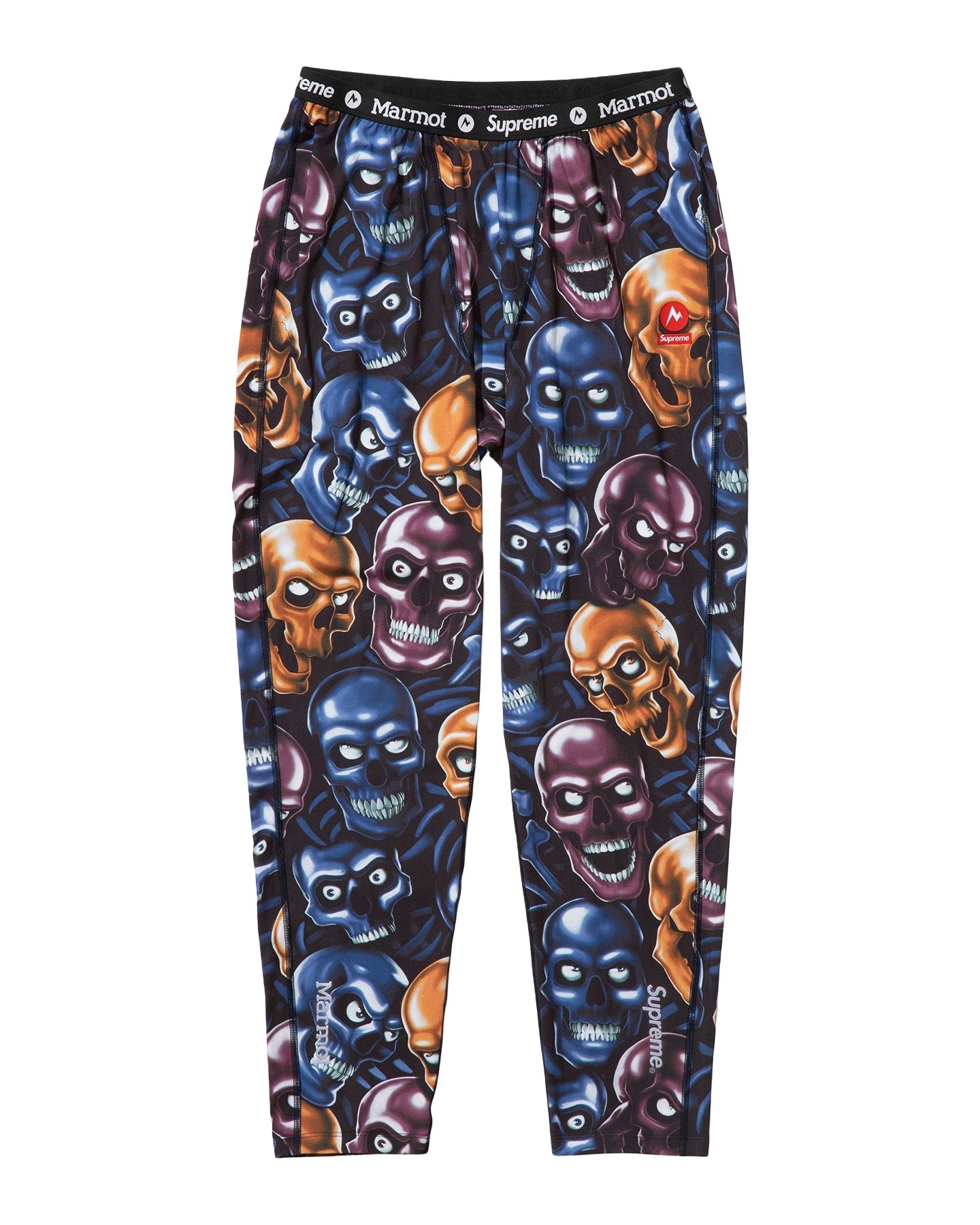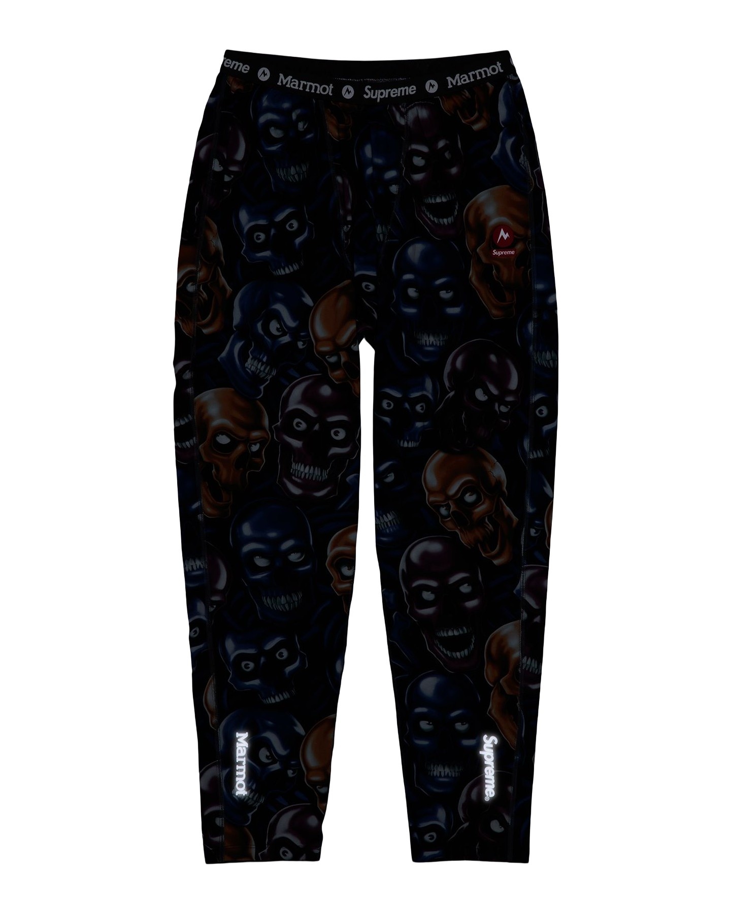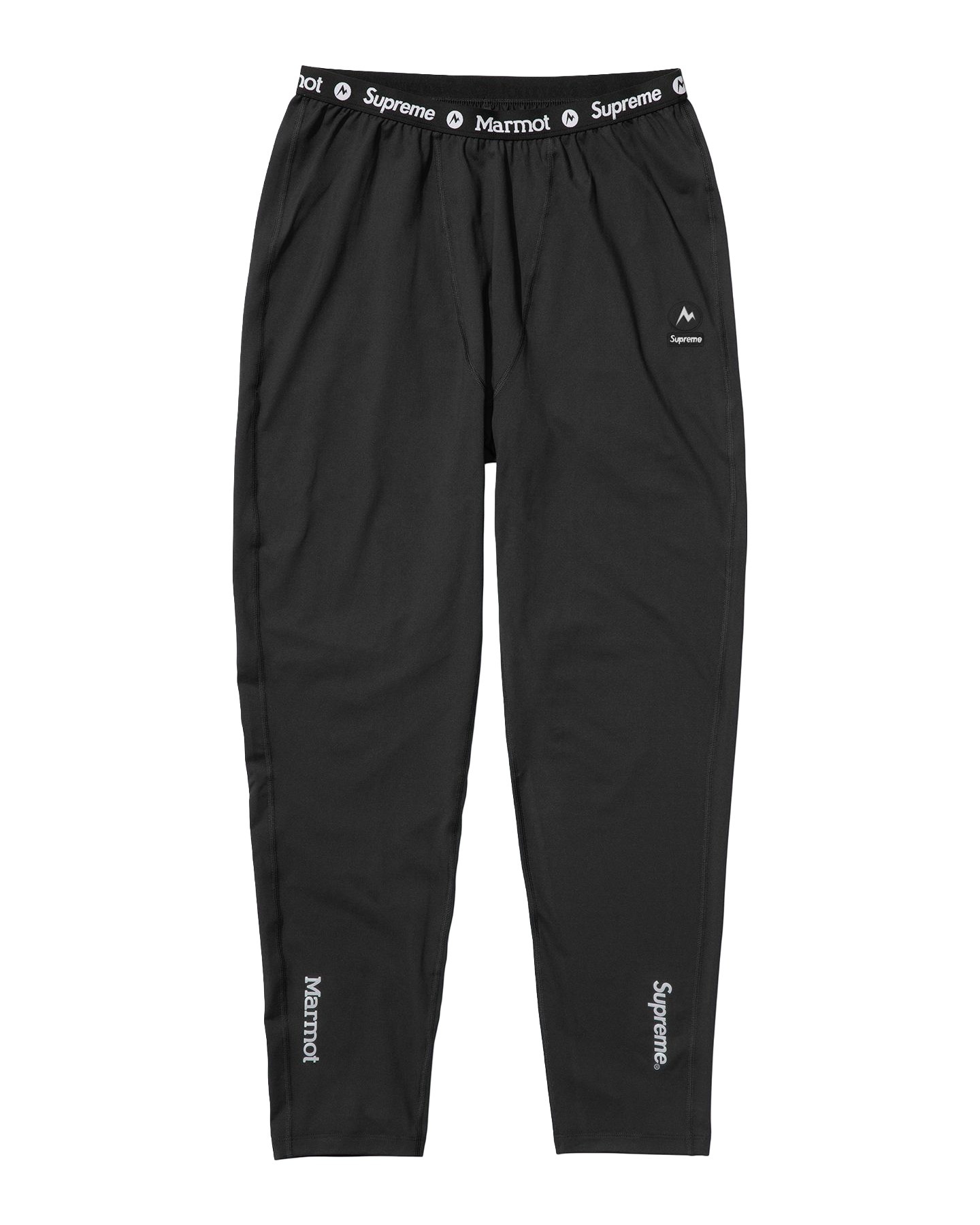 Poly base layer pant with jacquard logo elastic waistband. Printed logos at thigh and 3M® Reflective printed logos at ankles. Made exclusively for Supreme.