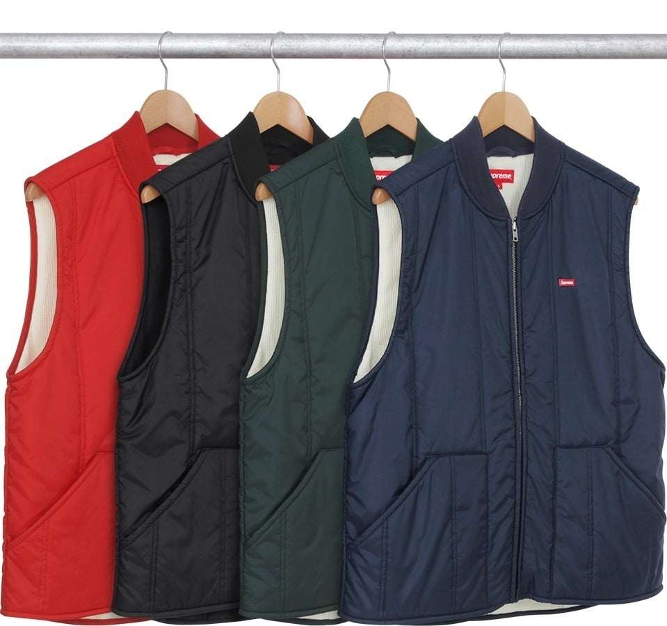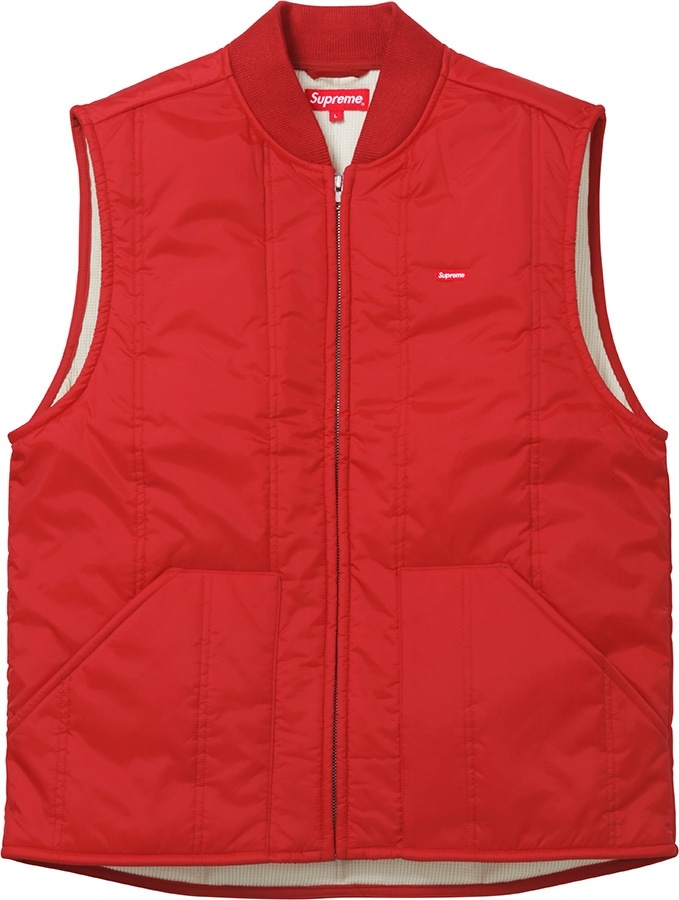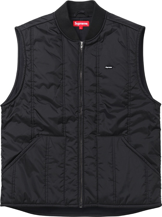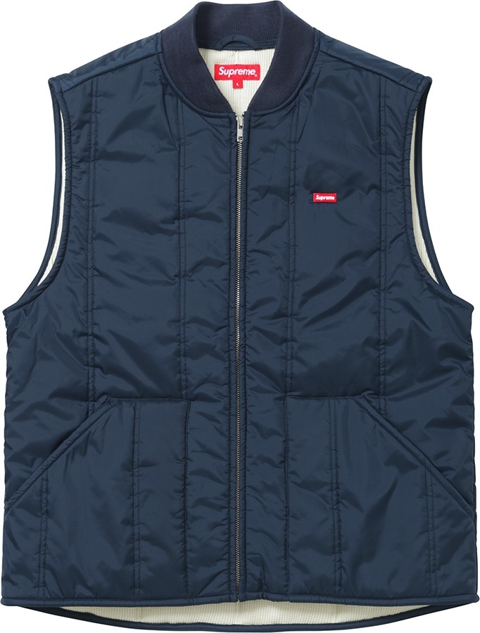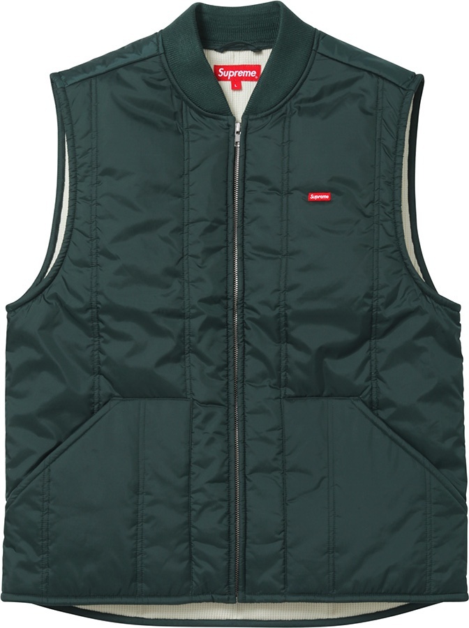 Quilted nylon with cotton thermal lining. Full zip closure and patch pockets at lower front. Small patch on chest.