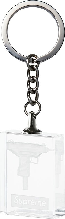 Transparent acrylic cube keychain with 3D interior graphic. Three link chain with 1.25" keyring.