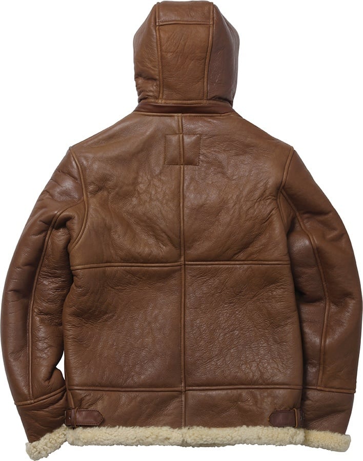 Custom fit Scott® sheepskin shearling with removable hood. Made exclusively for Supreme.