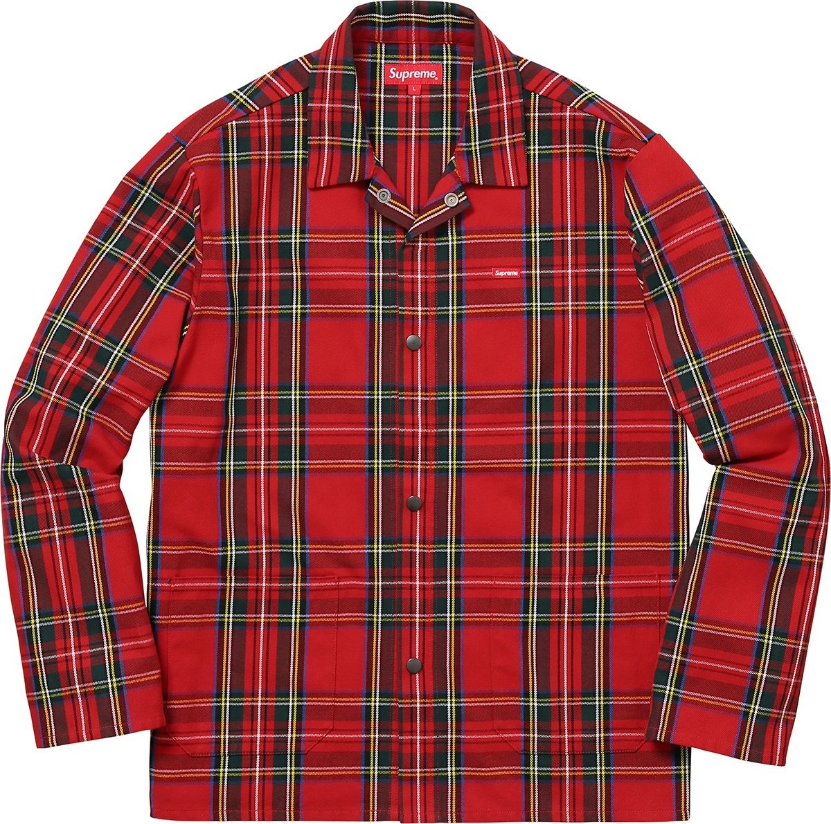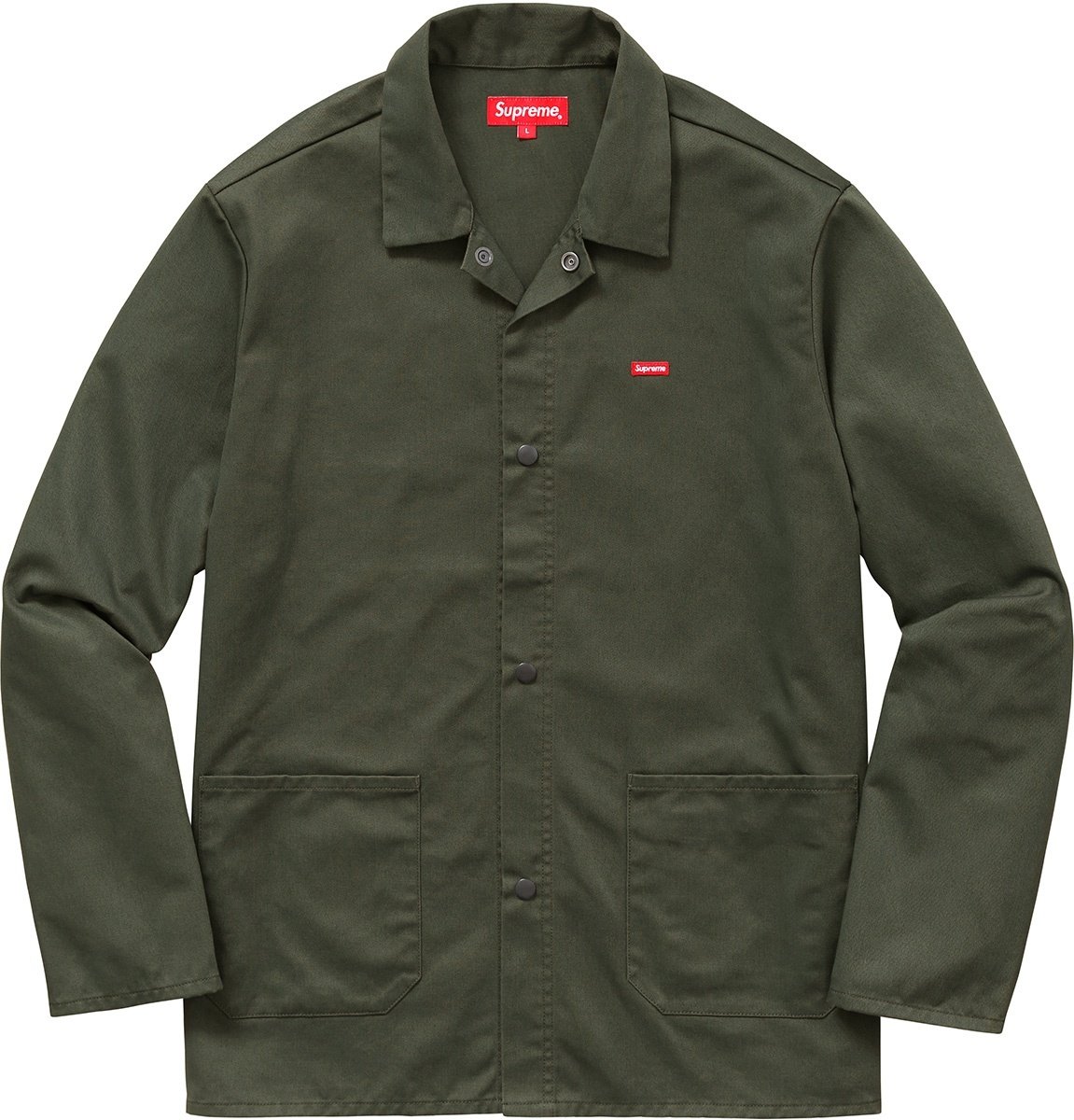 Cotton heavy twill with snap front closure. Patch pockets at lower front and patch on chest.