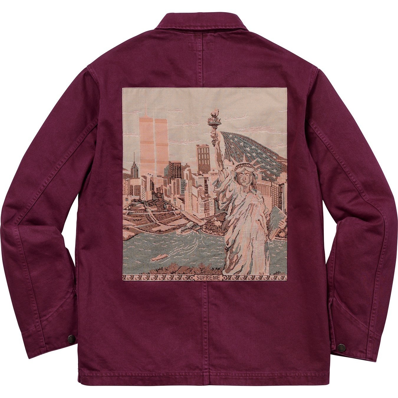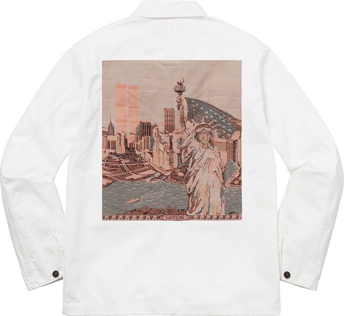 All cotton 13 oz. denim with tapestry patch on back. Button front closure with chest and hand patch pockets.