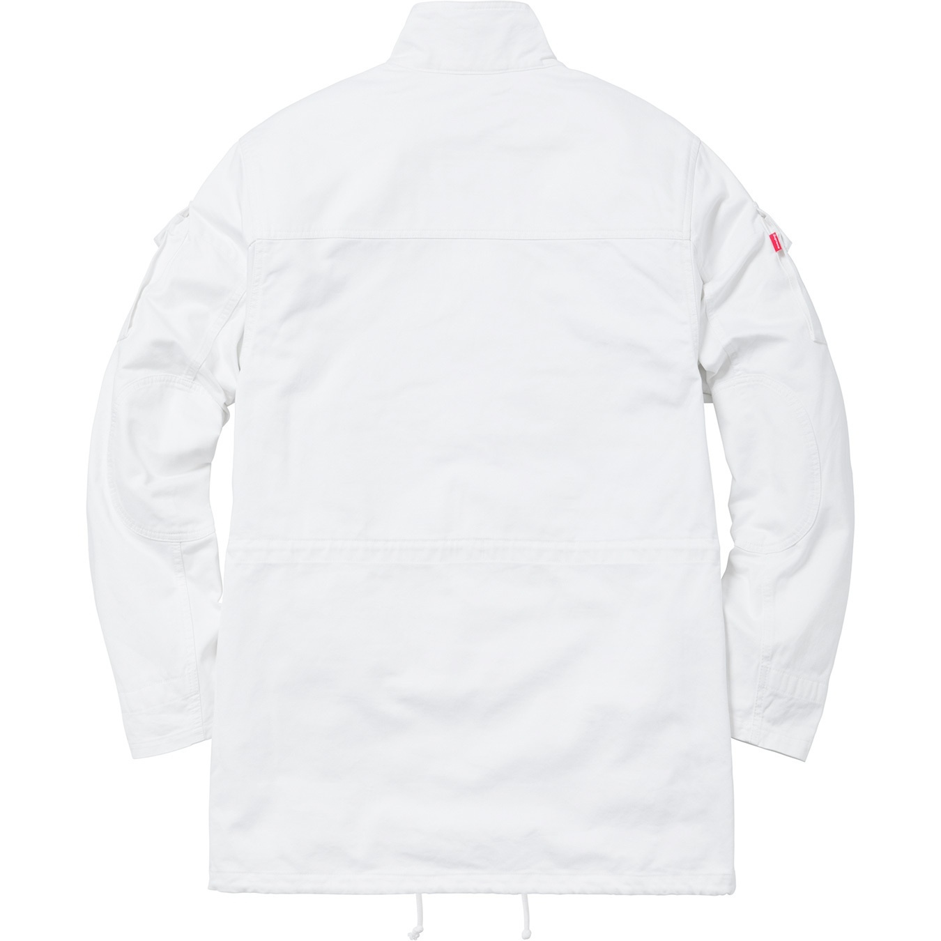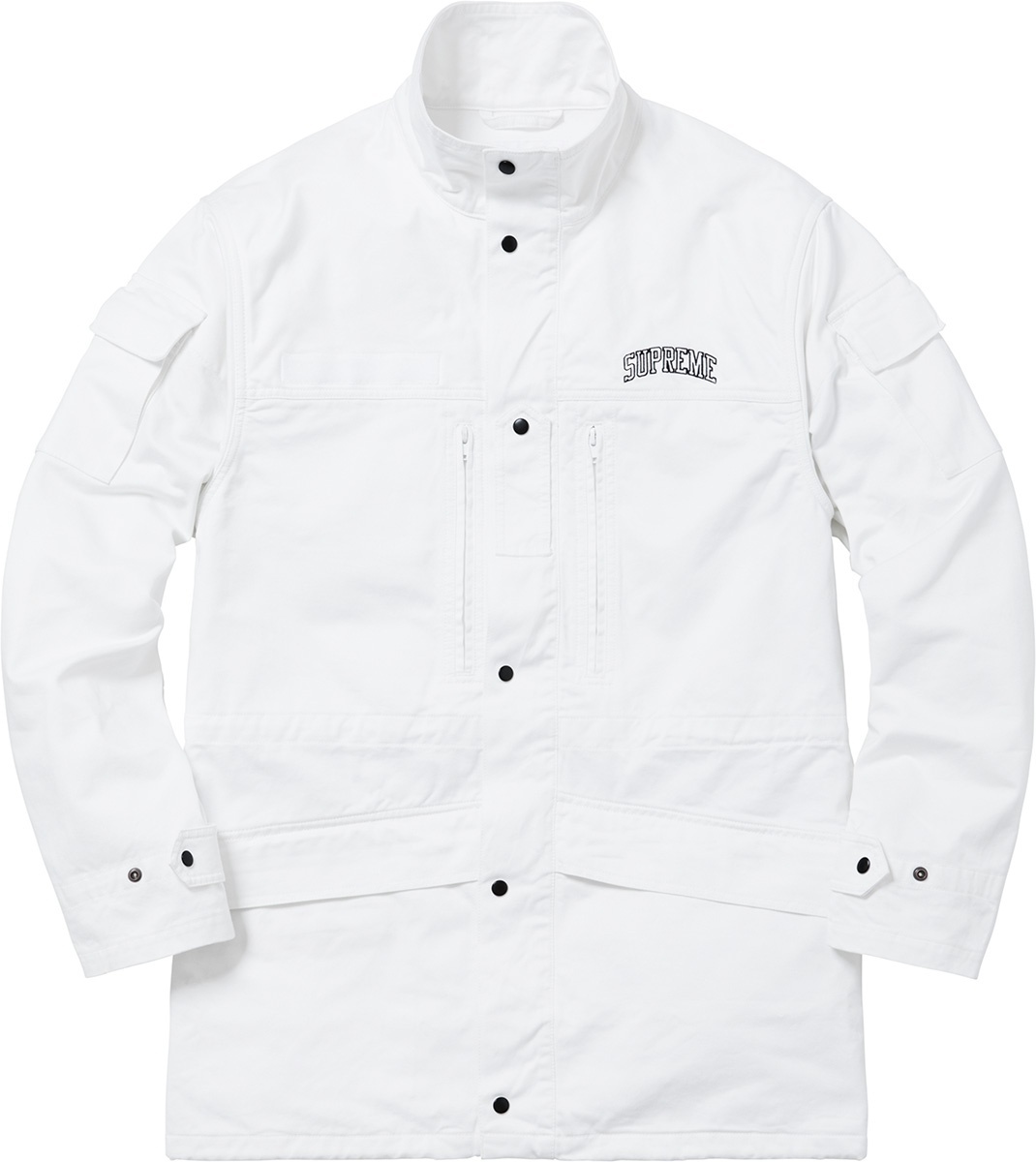 Washed heavyweight cotton with full zip closure and snap placket. Chest and hip pockets with utility pockets on outer sleeves and embroidered logo on chest.
