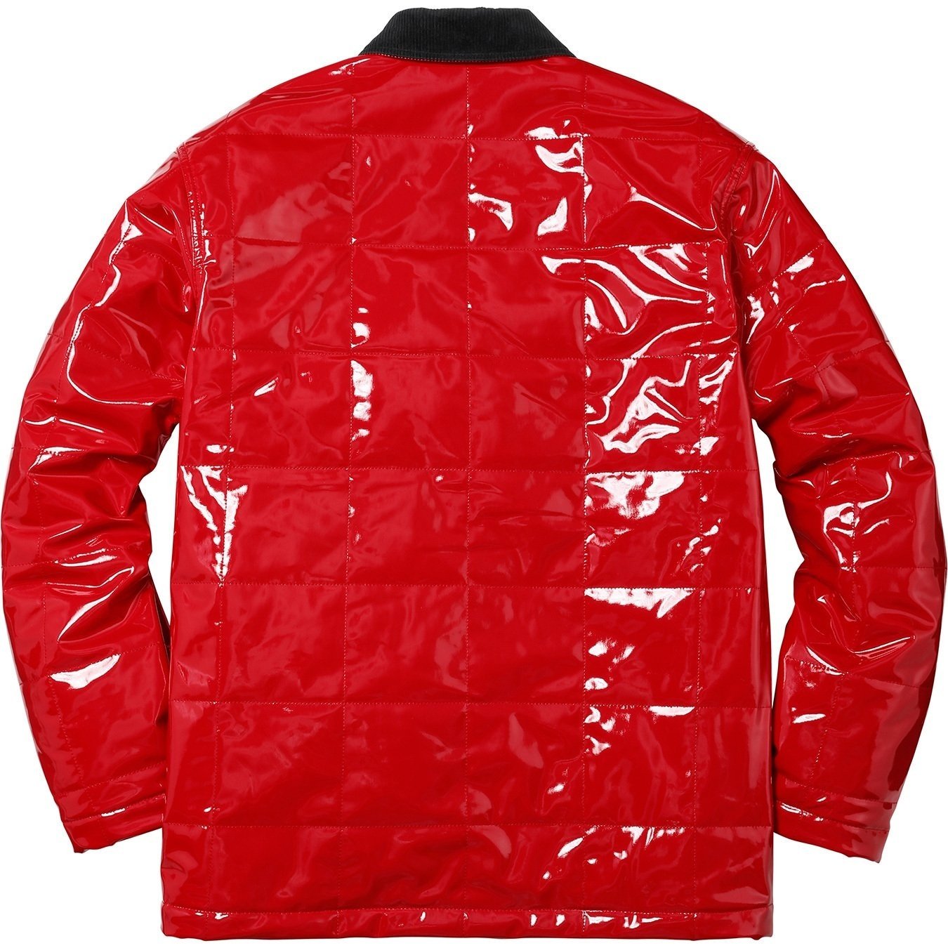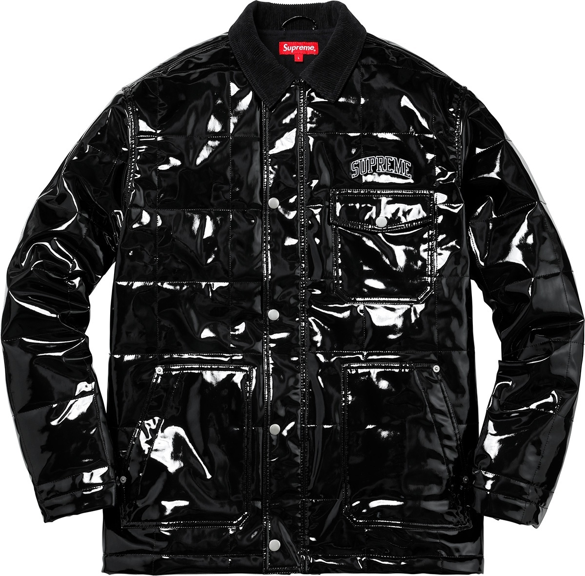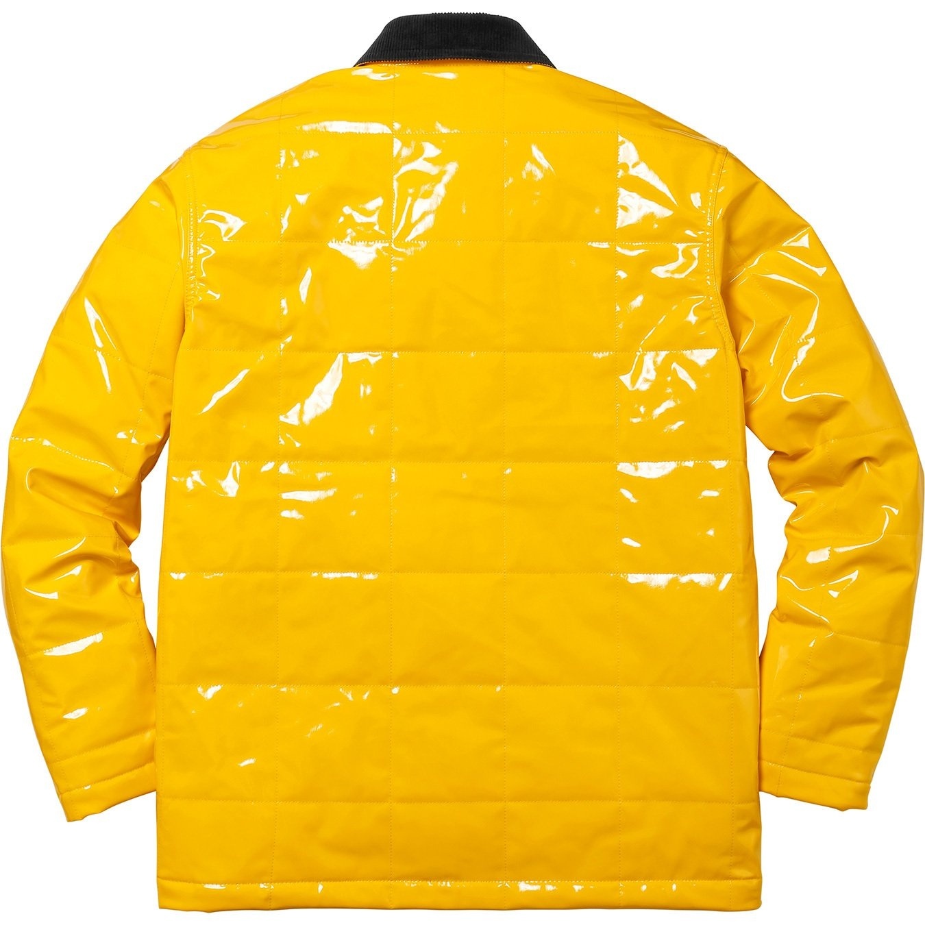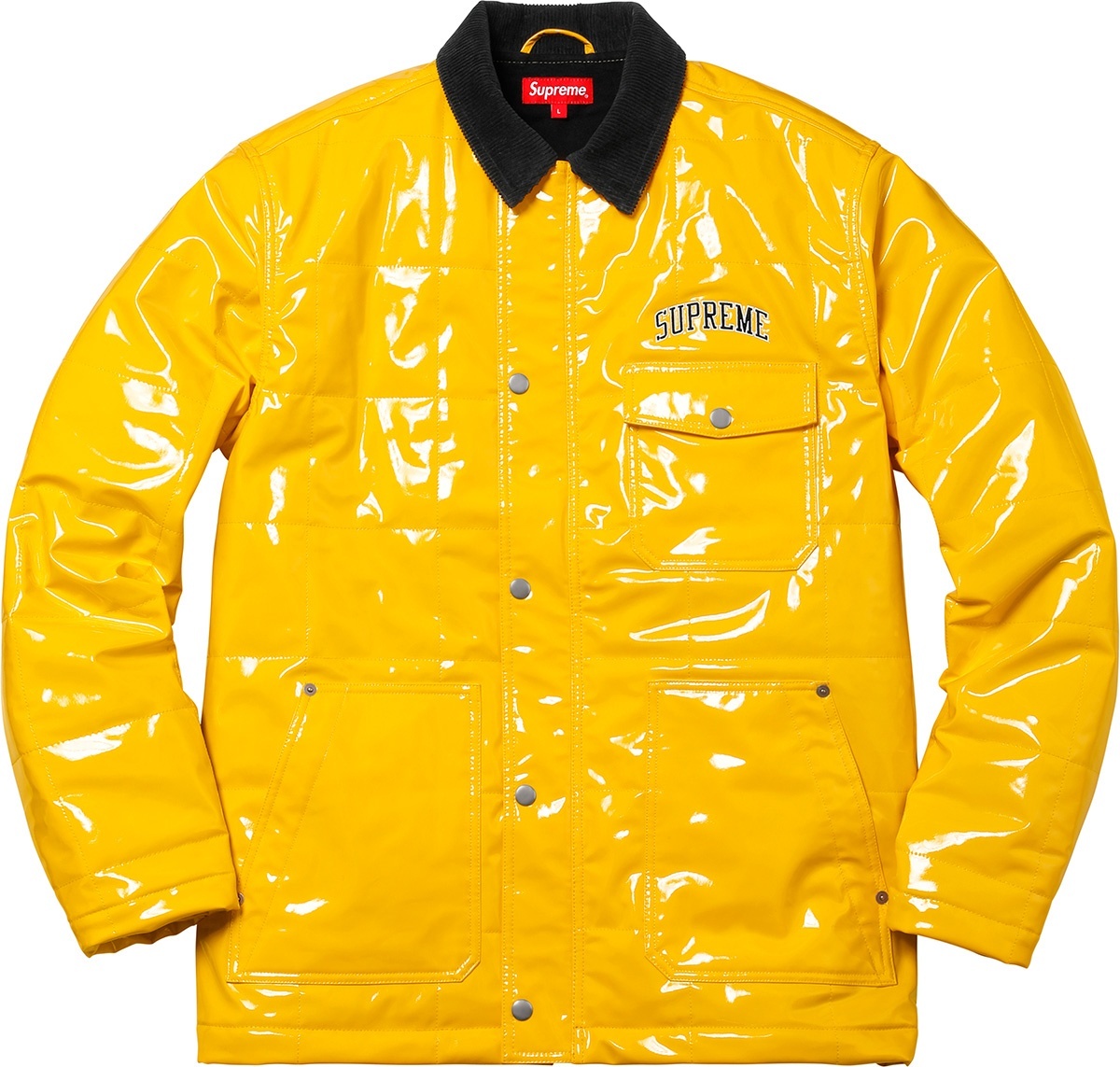 Polyurethane with quilted cotton flannel lining. Full zip closure with snap placket, chest and hand pocket. Embroidered logo on chest.