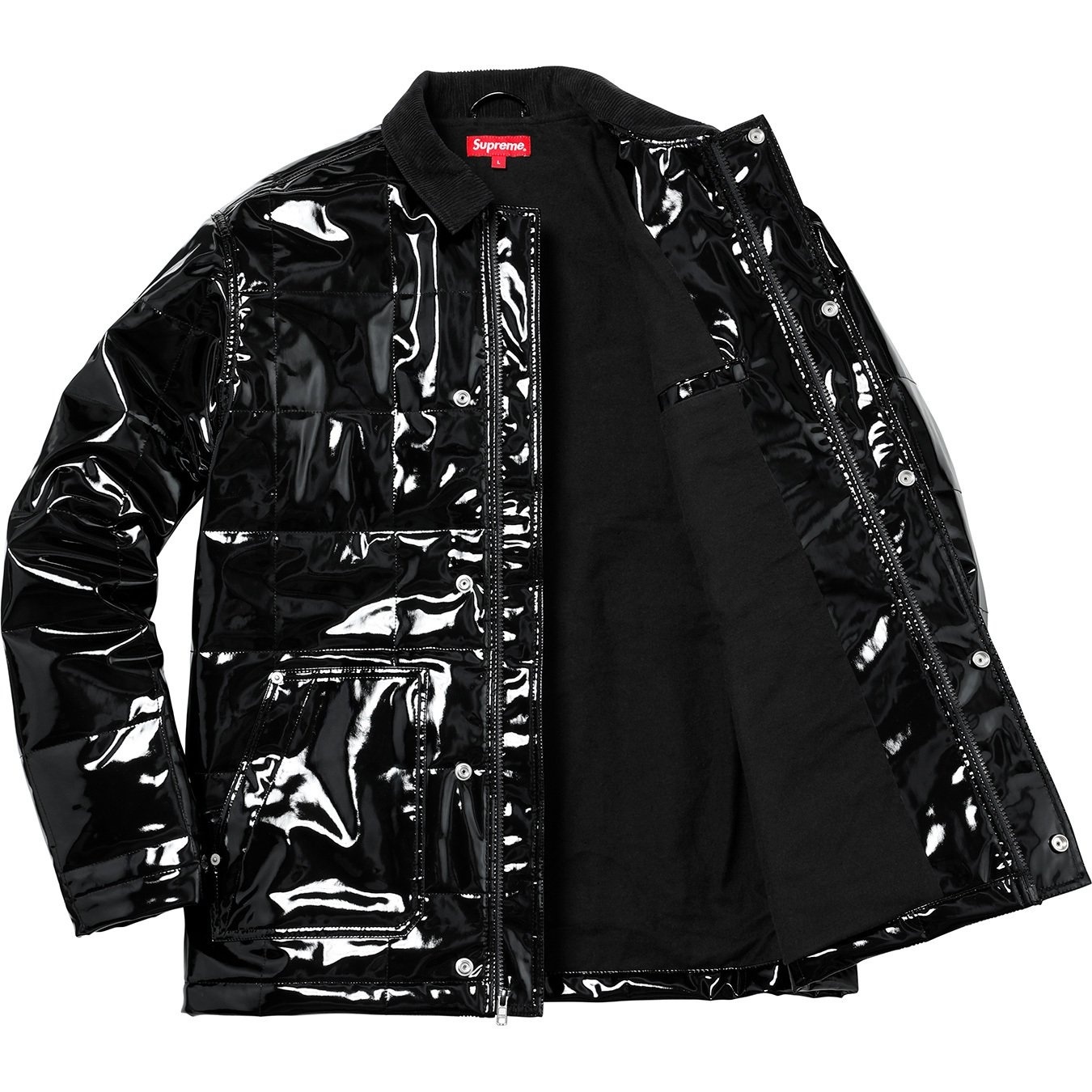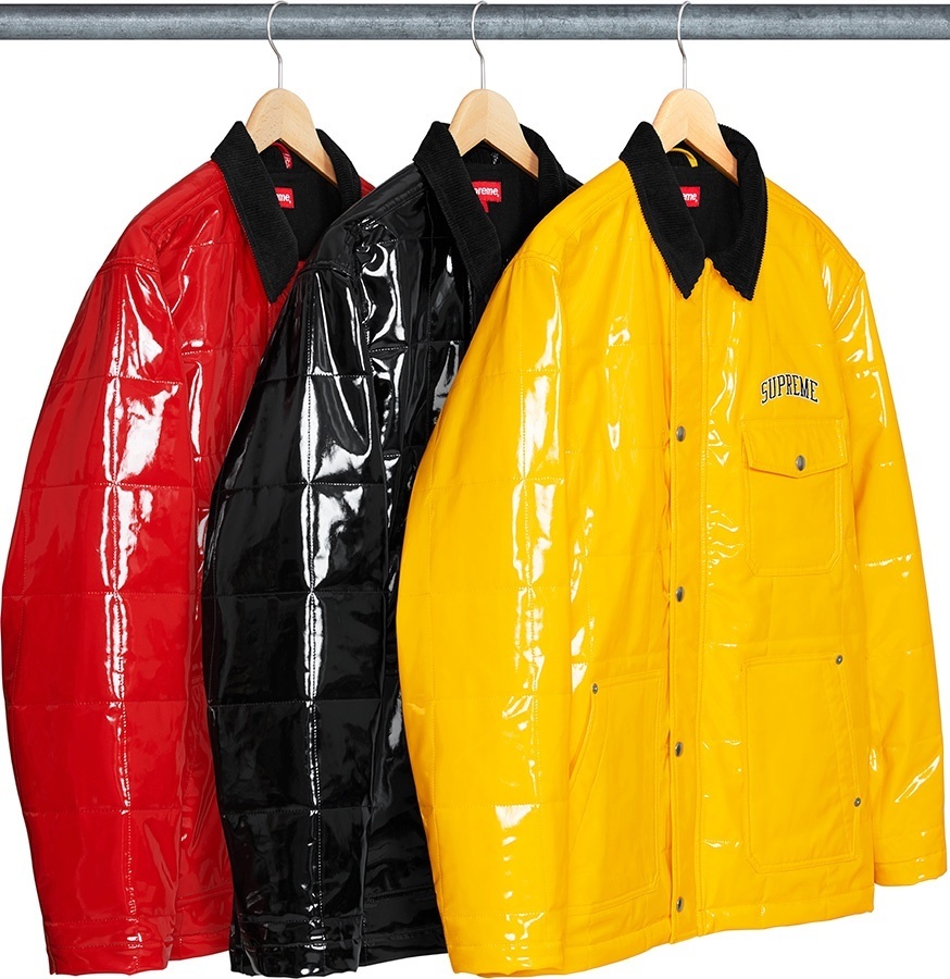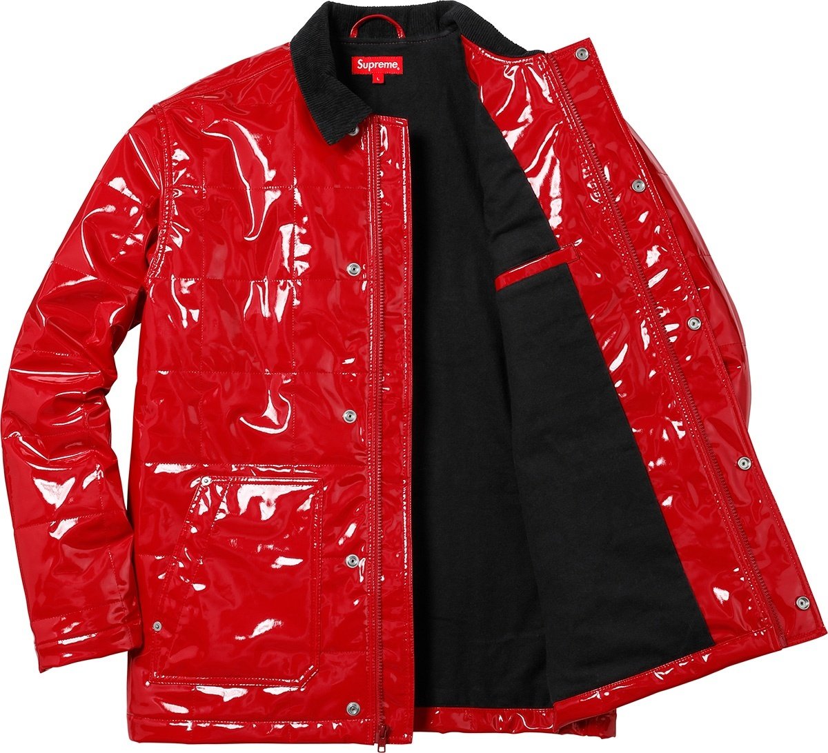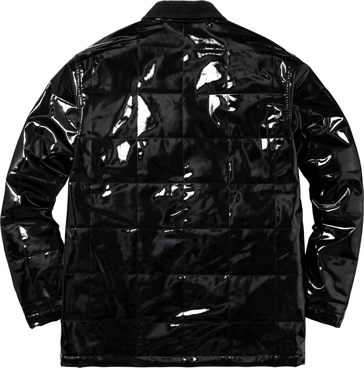 Polyurethane with quilted cotton flannel lining. Full zip closure with snap placket, chest and hand pocket. Embroidered logo on chest.