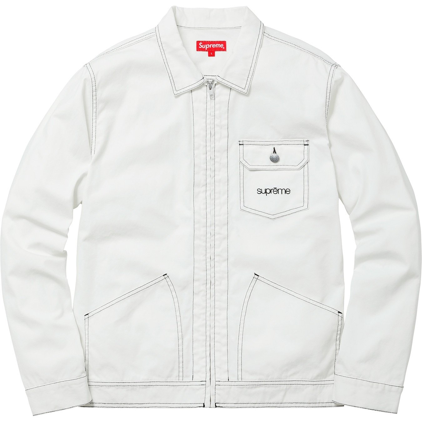 All cotton canvas with full zip closure and hand pockets at lower front. Embroidered logo on chest pocket.