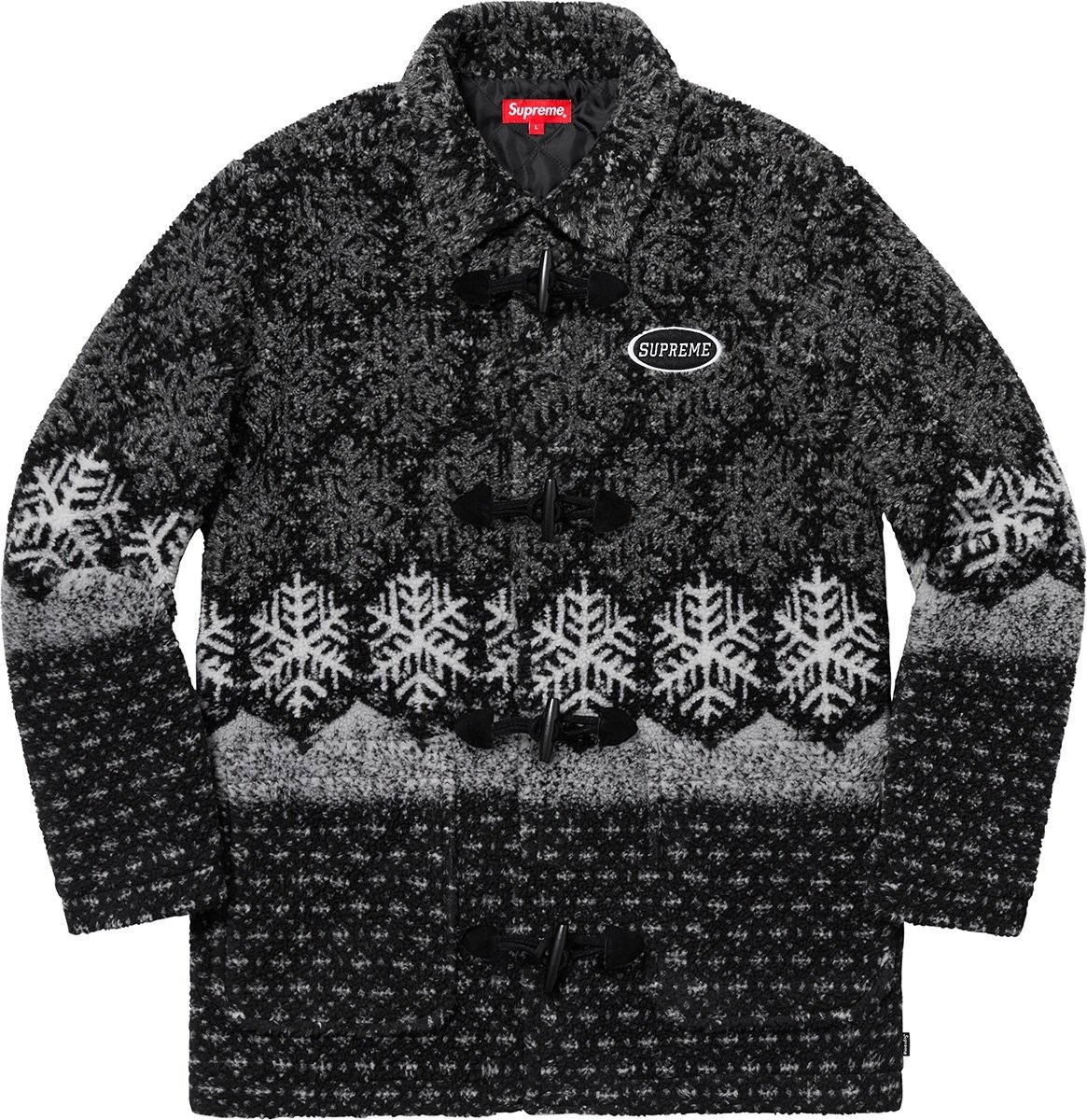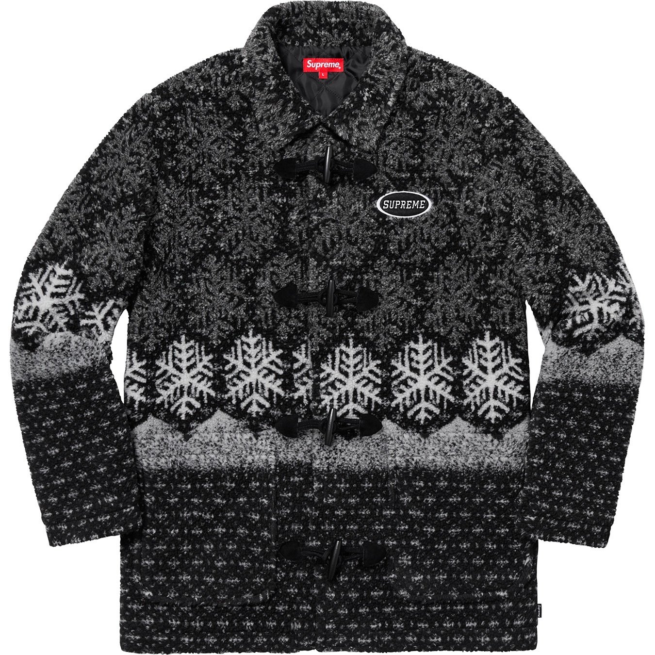 Sherpa fleece with quilted taffeta lining and toggle front closure. Patch pockets at lower front and embroidered felt logo patch on chest.