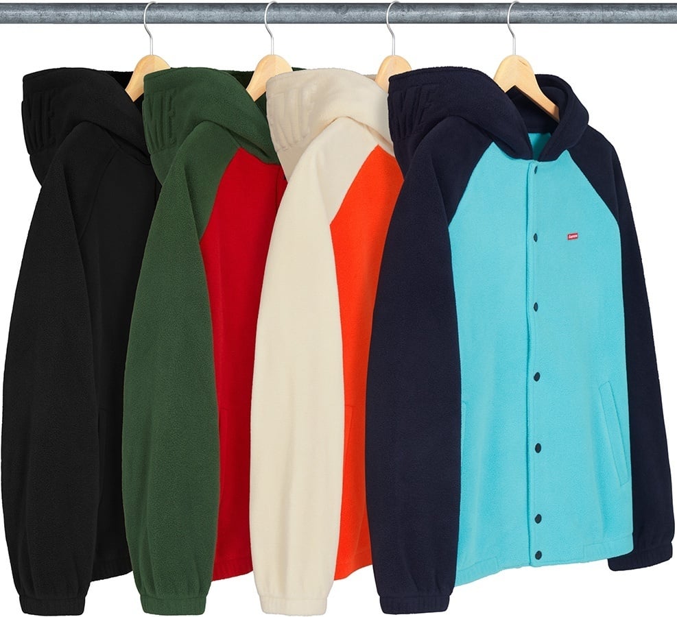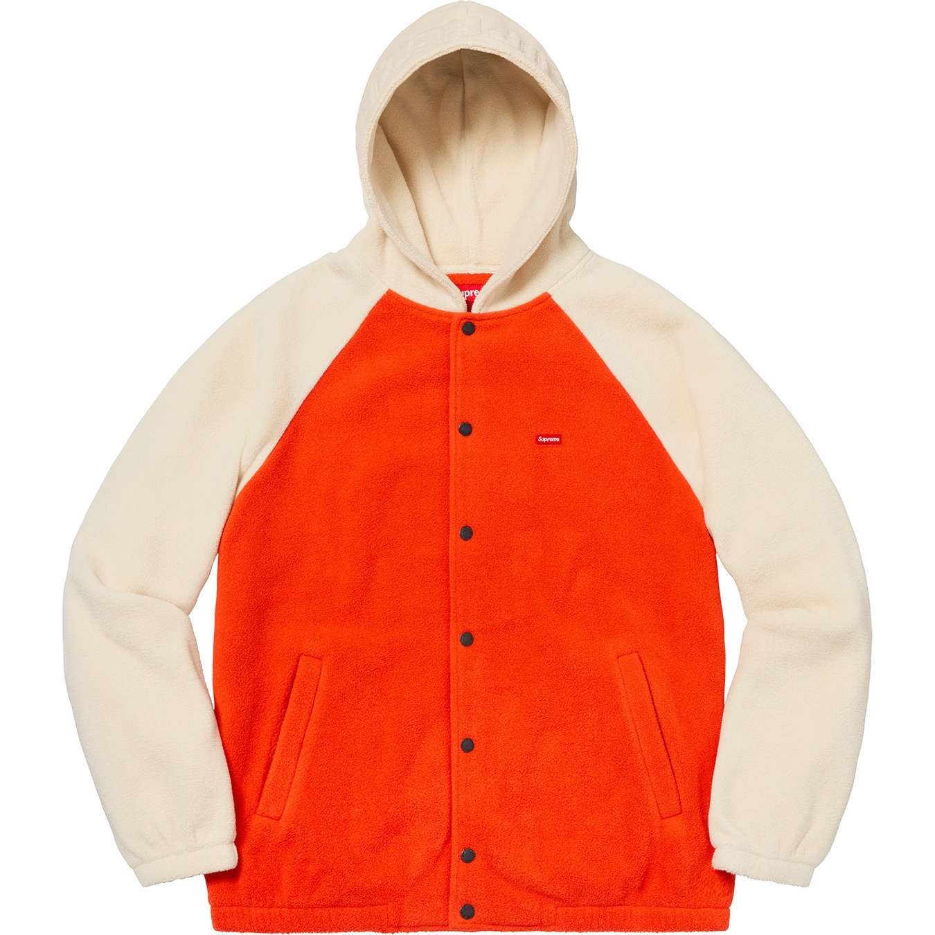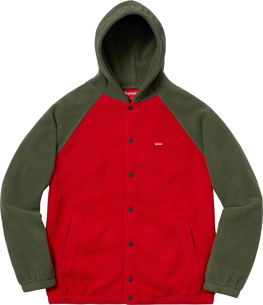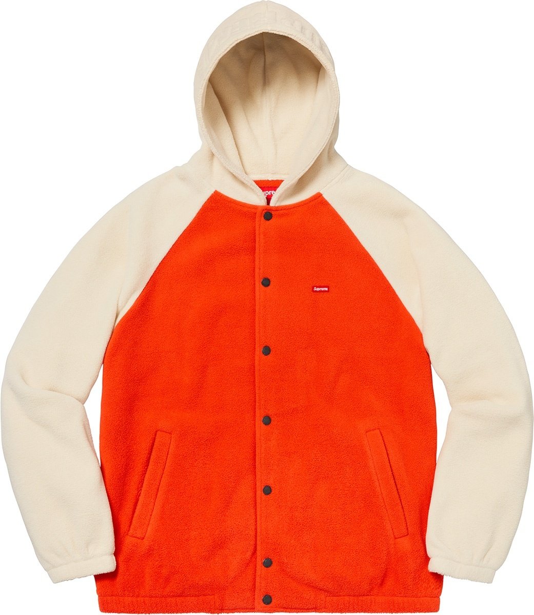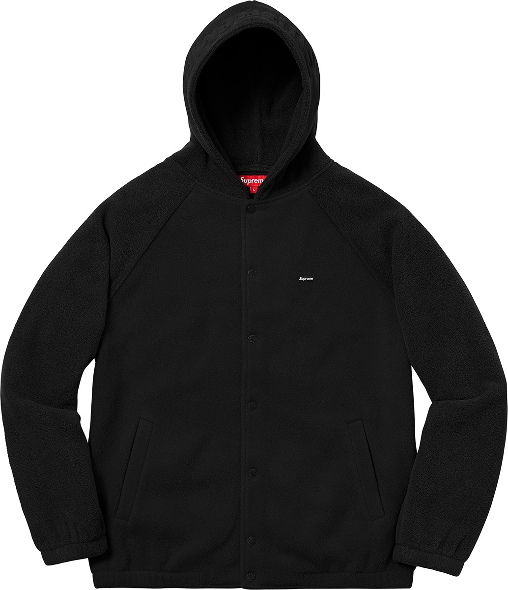 Polartec® 200 fleece with snap front closure and hand pockets at lower front. Logo patch on chest and appliqué logo on hood.