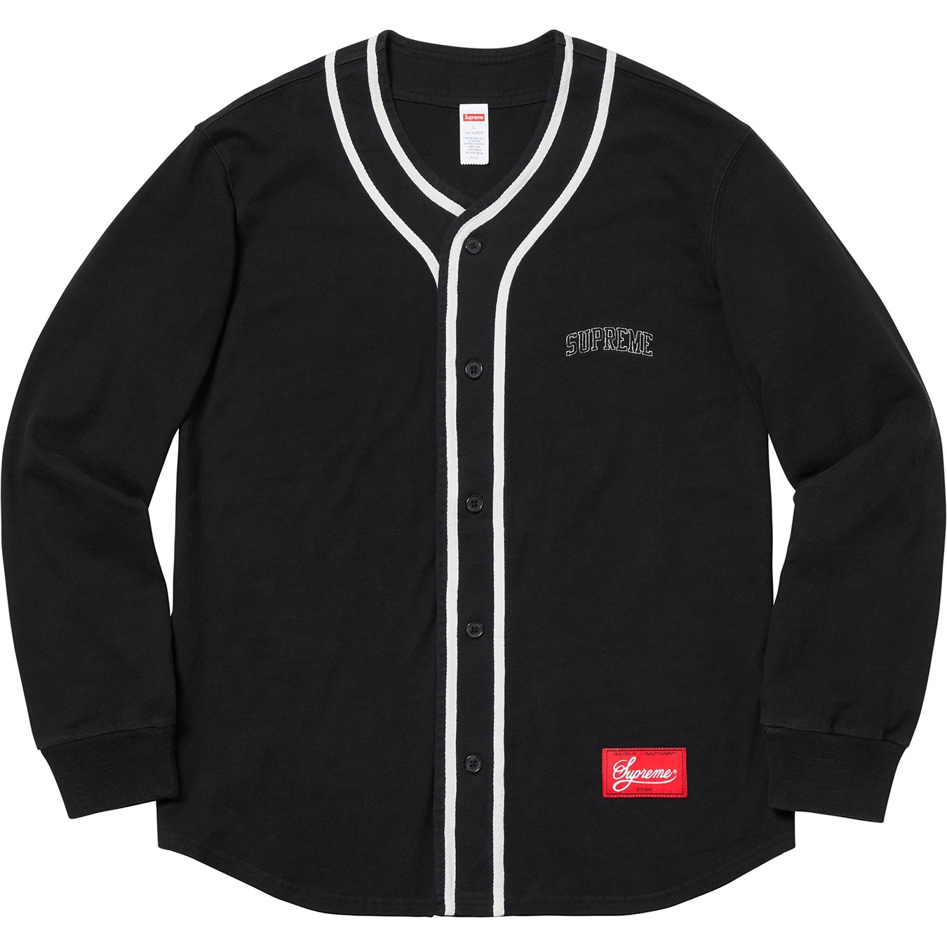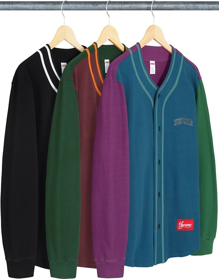 All cotton V-neck with button front closure, embroidered logo on chest and athletic label at lower front.
