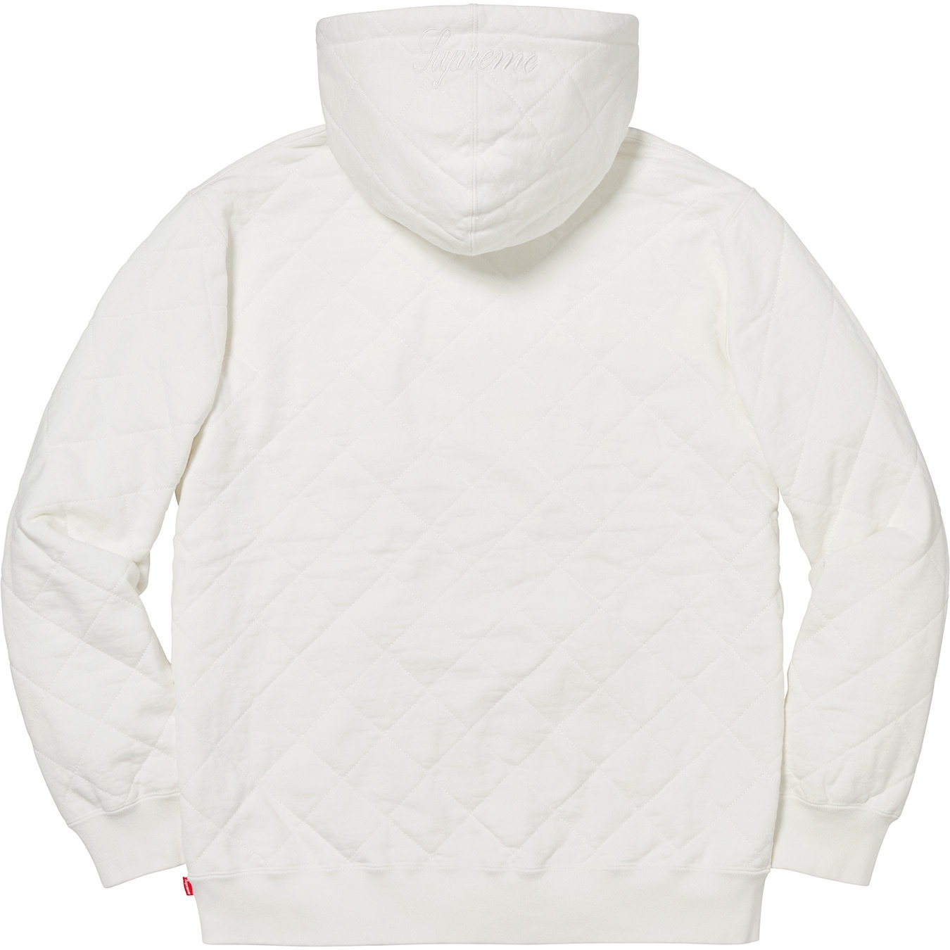 Cotton fleece with diamond quilt pattern, pouch pocket and embroidered logo on hood.
