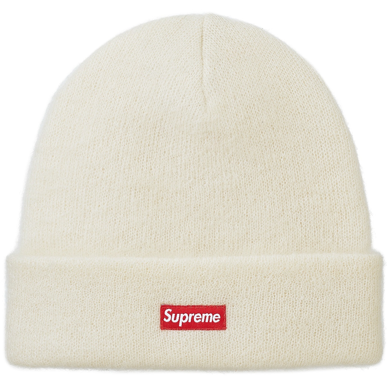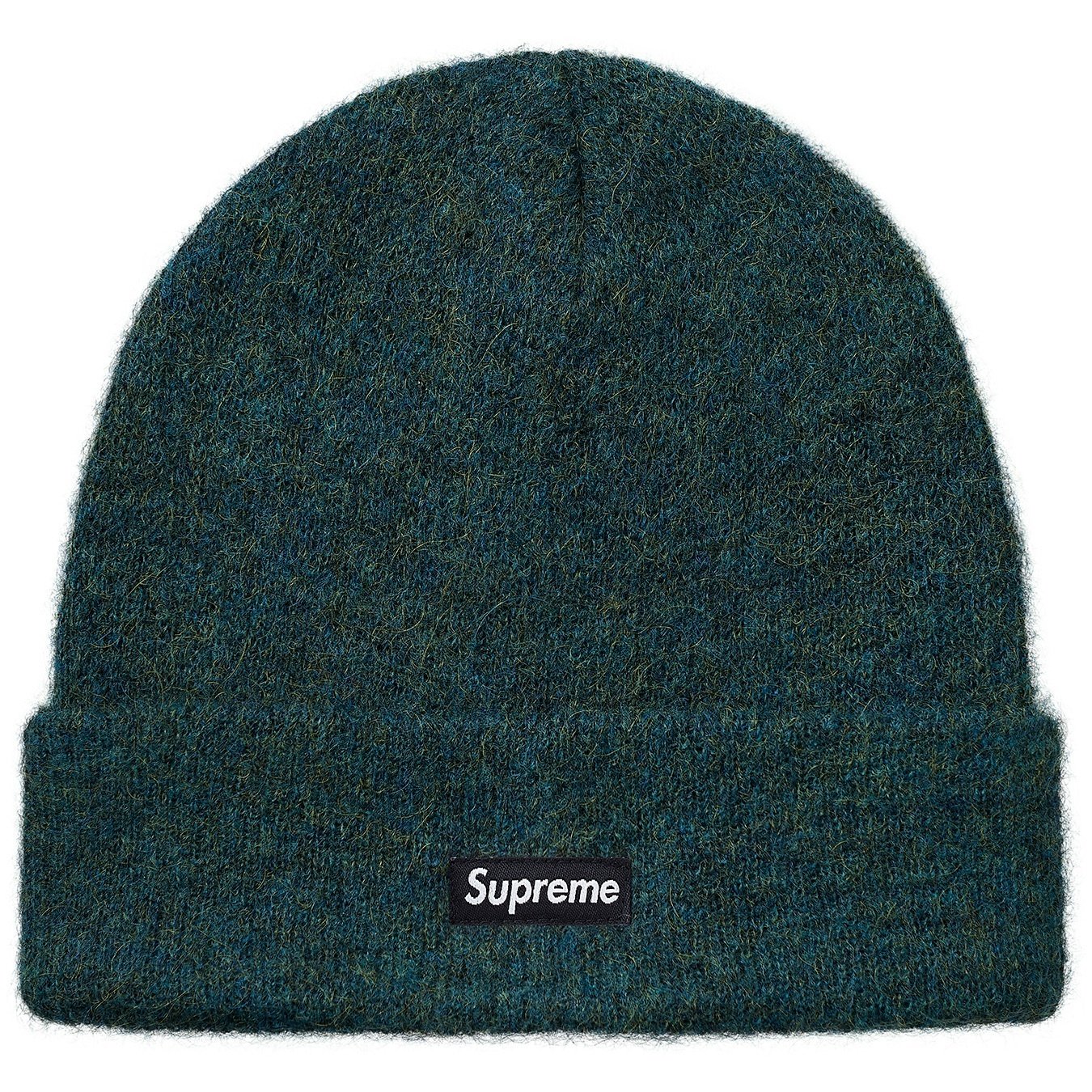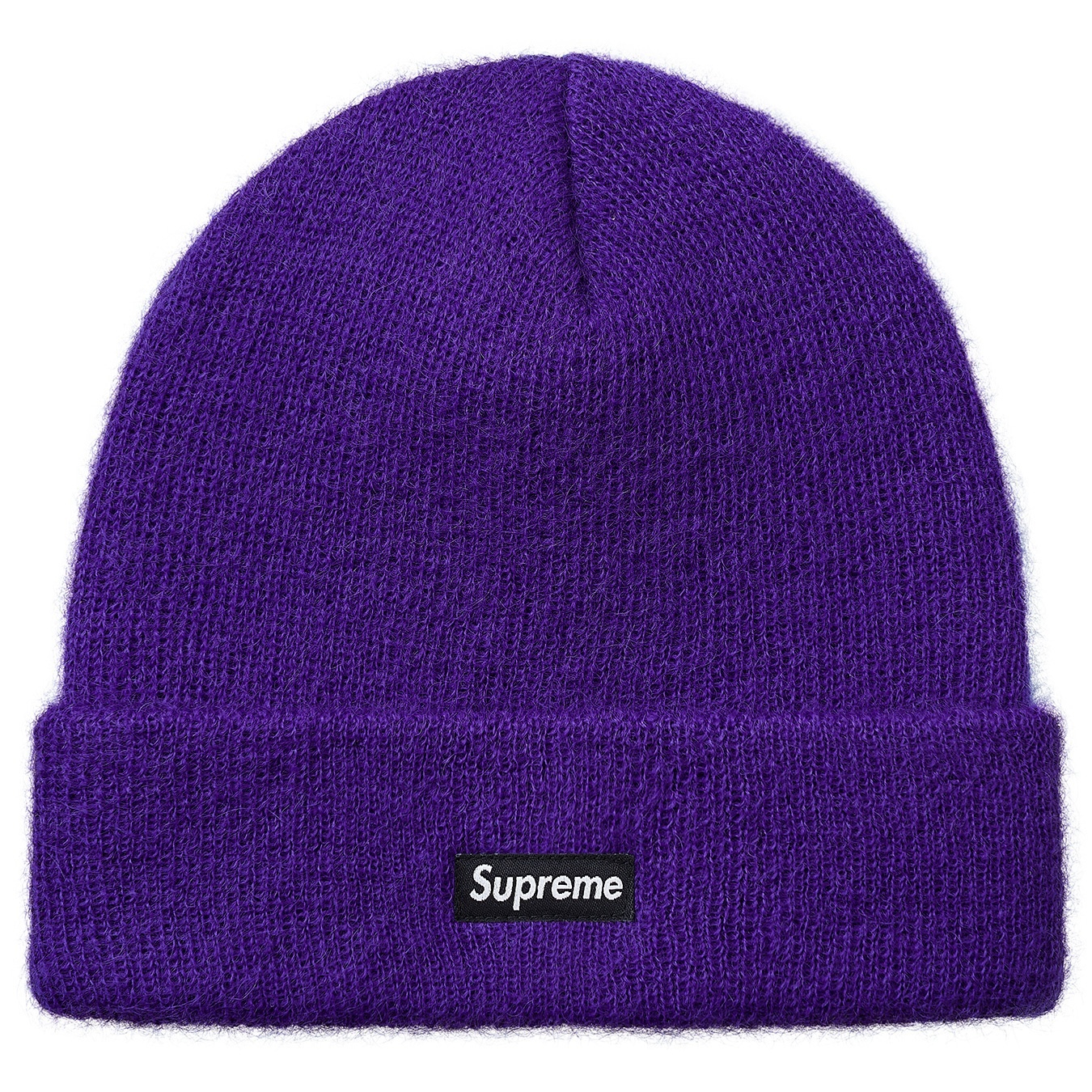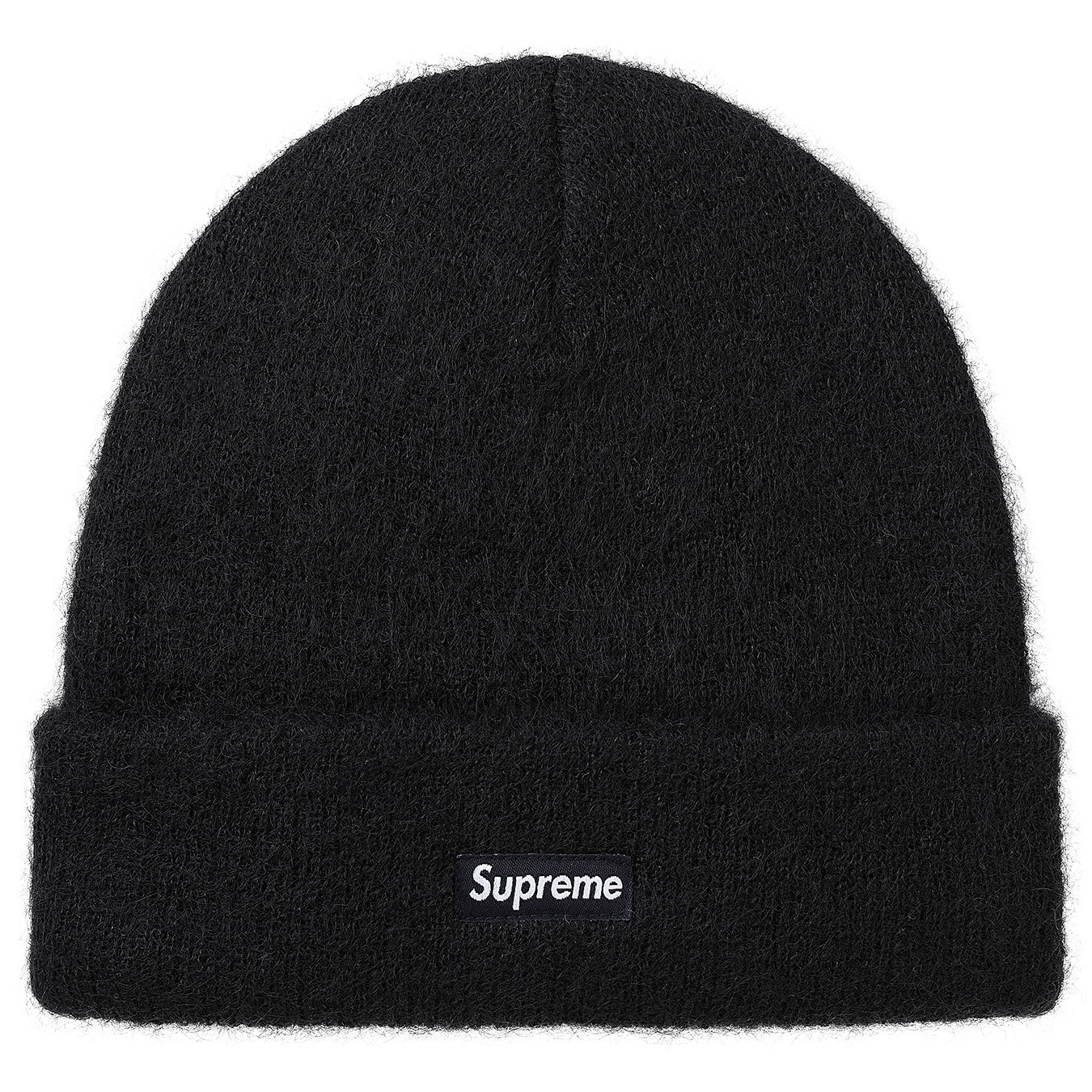 Mohair blend cuffed beanie with logo label patch on cuff.
