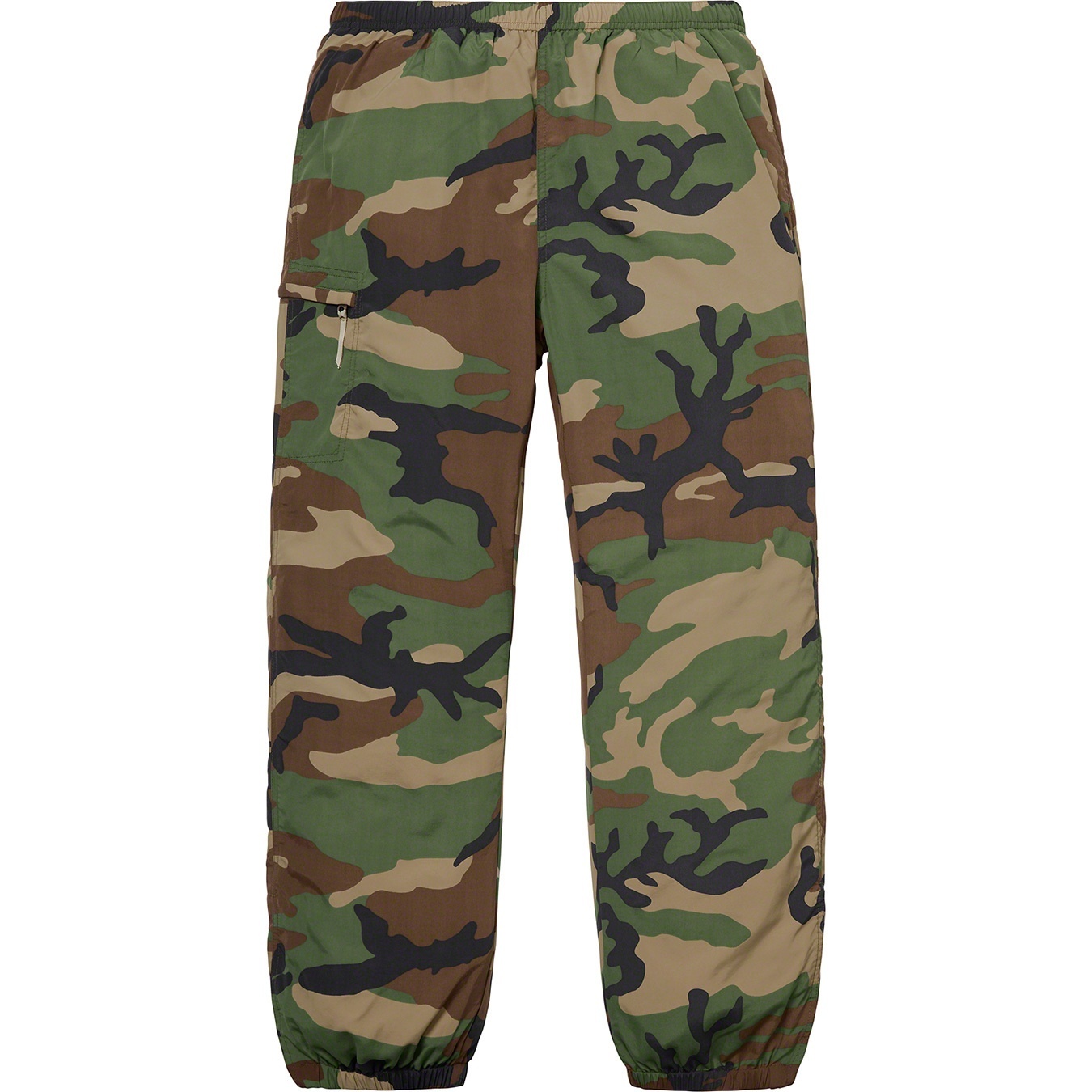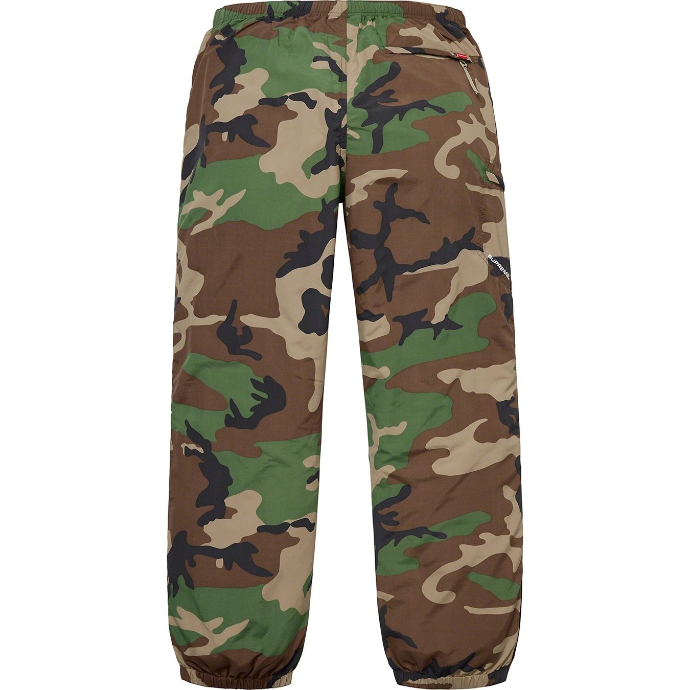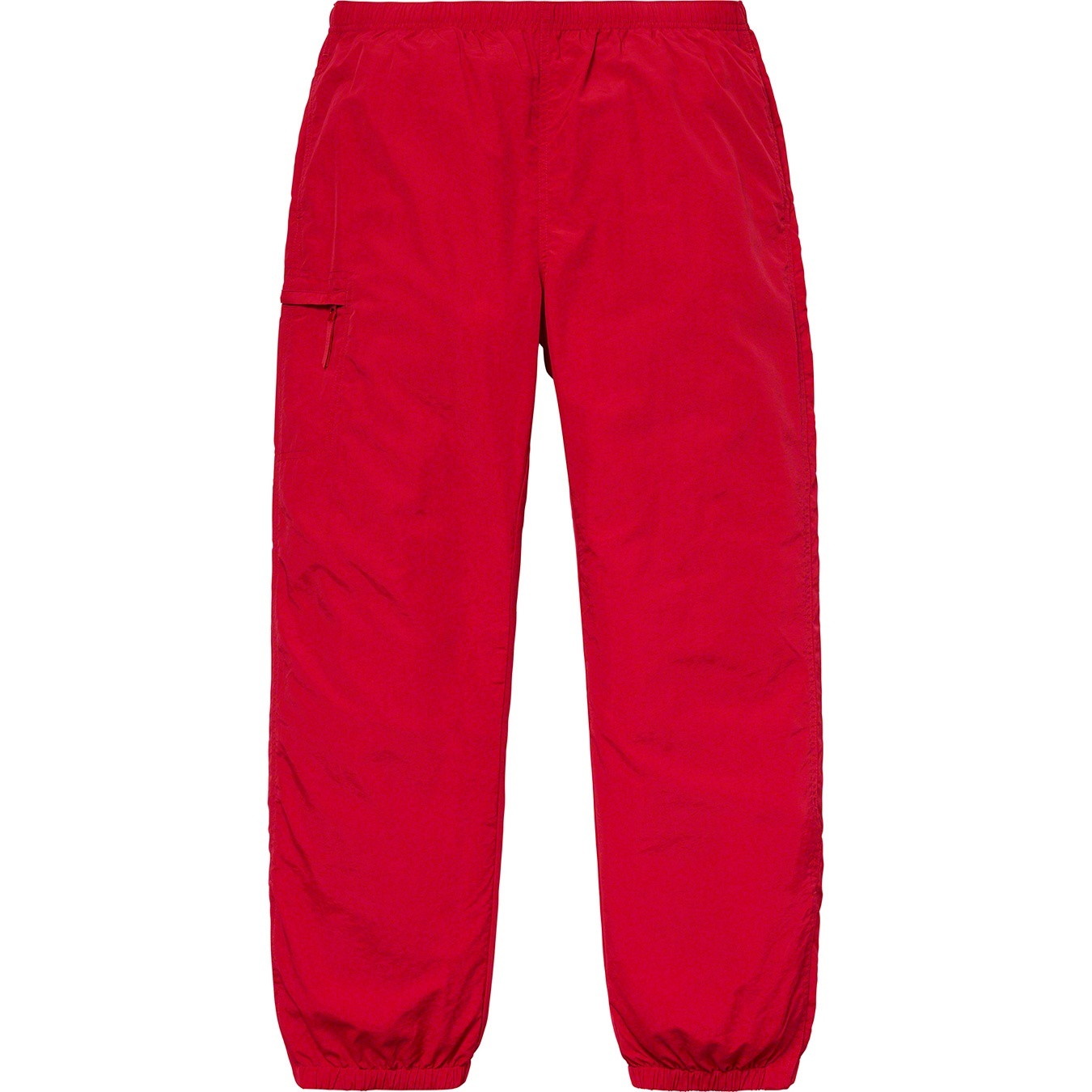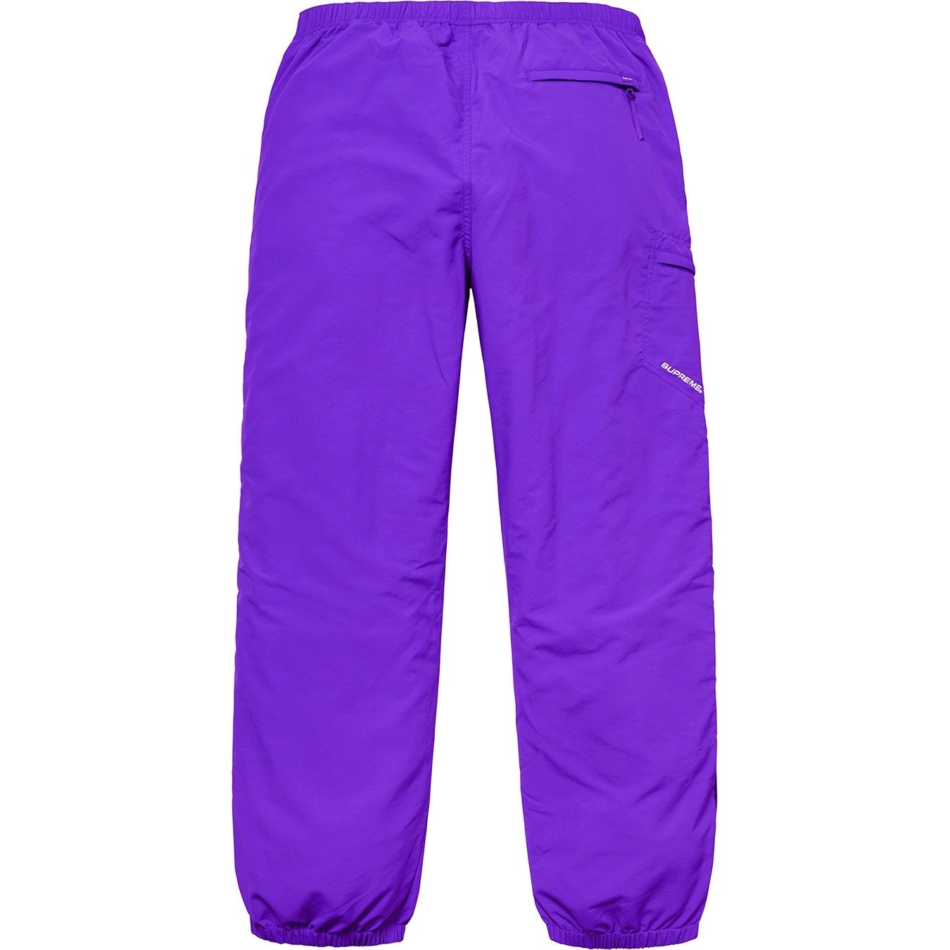 Water resistant nylon taslan with mesh and taffeta lining. On seam hand pockets and single back zip pocket. Zip pocket with embroidered logo on right thigh. Bottom gussets with zip closure, elastic cuffs and waistband with interior drawcord and interi...