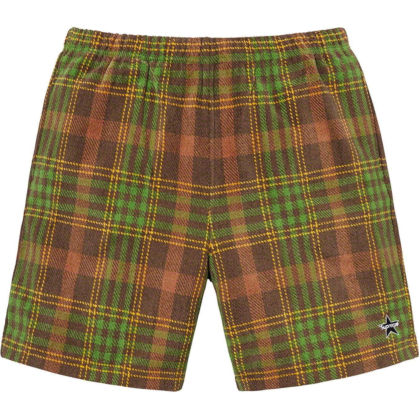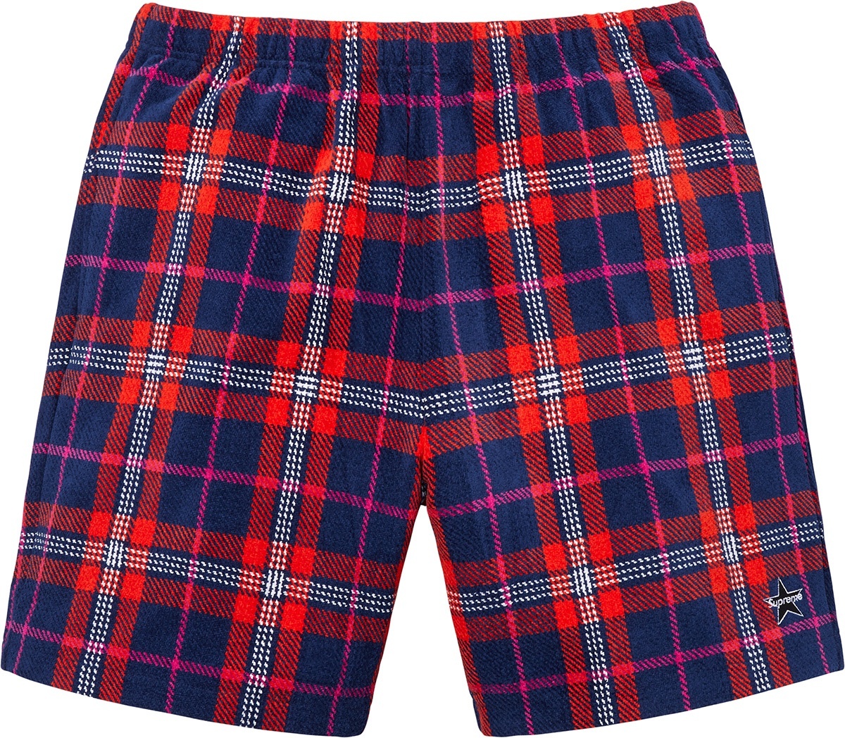Cotton blend velour with on seam hand pockets and single back patch pocket. Elastic waistband with interior drawcord and embroidered logo on lower leg.