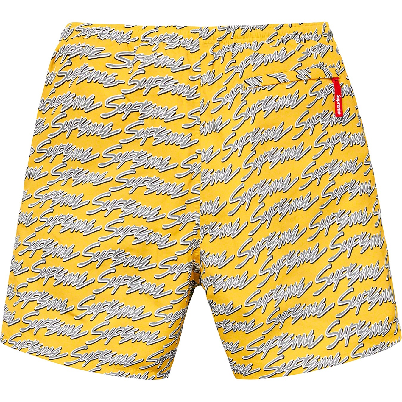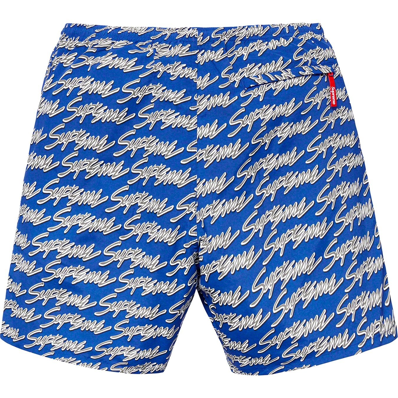 Nylon taslan with mesh lining and printed logo pattern. On seam hand pockets and single back zip pocket. Elastic waistband with interior drawcord and interior hanging key pocket.