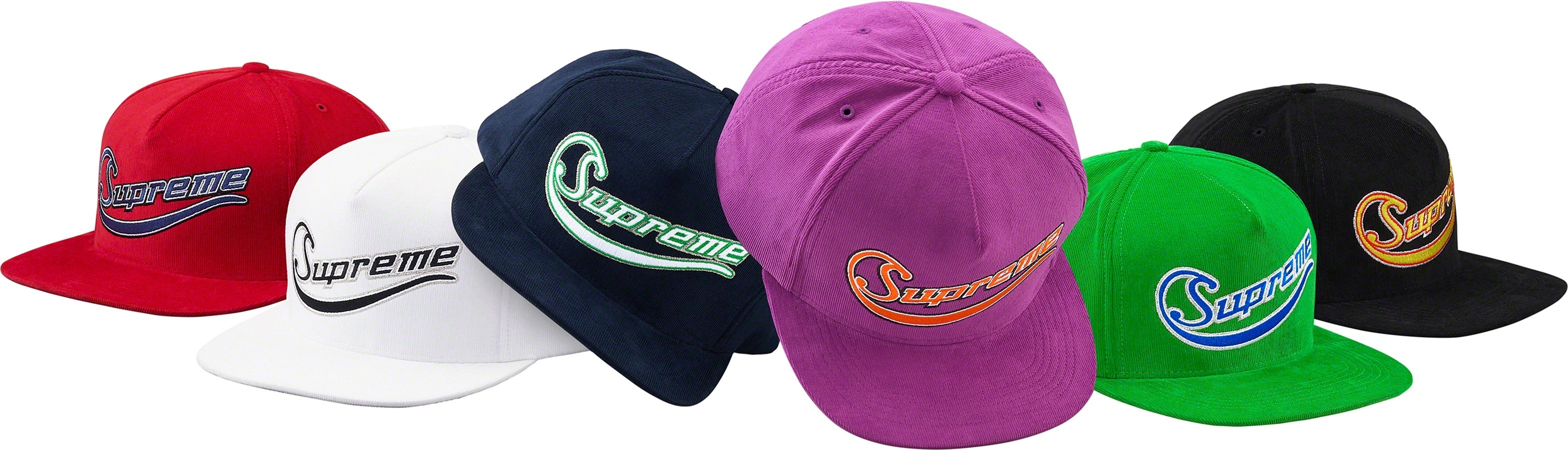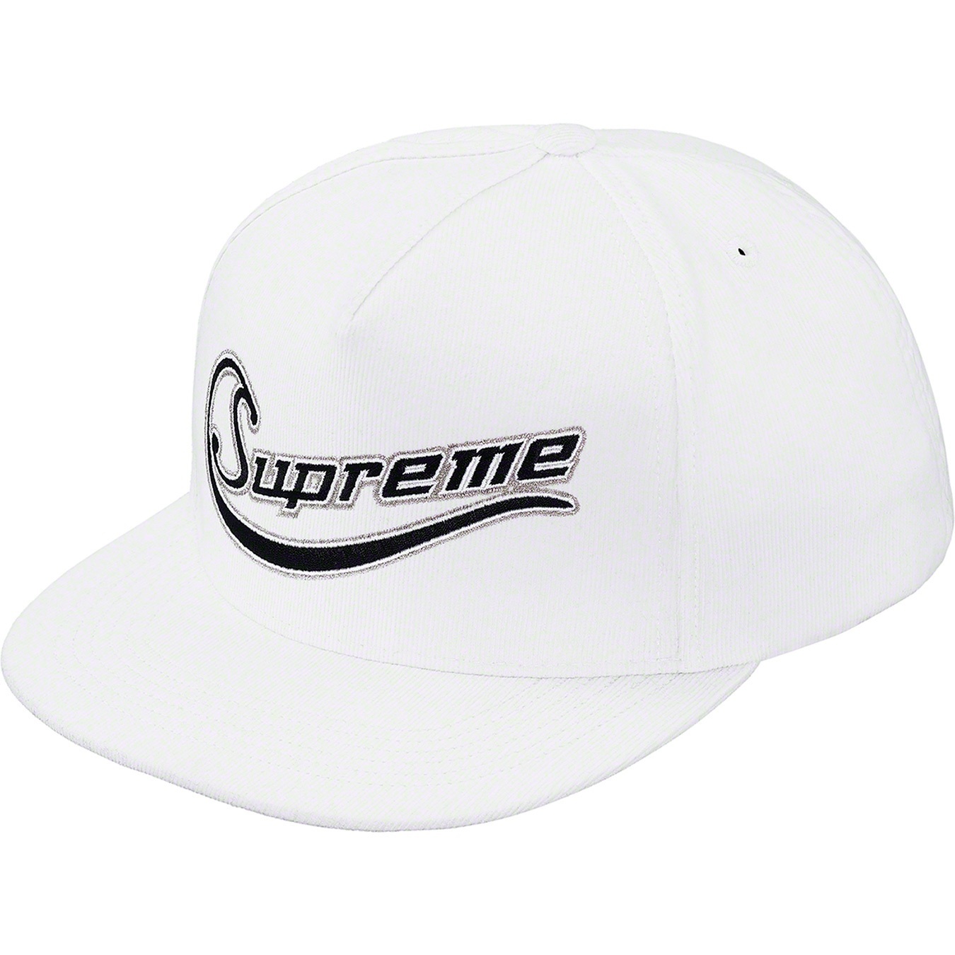 Cotton blend corduroy 5-Panel hat with snap closure. Embroidered logos on front and back.