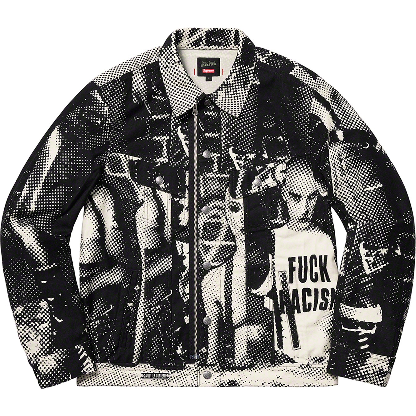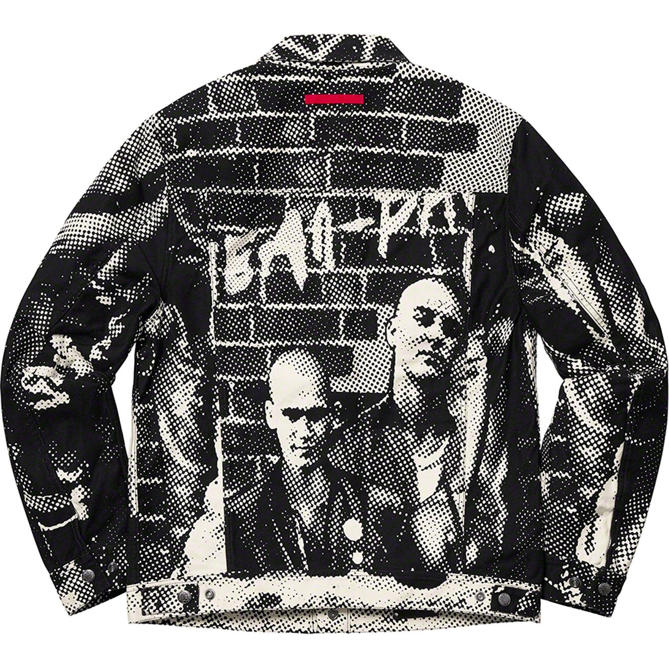 All cotton 13oz. denim with printed graphic. Full zip and snap front closure with hand pockets at lower front and chest pockets with snap closures. Enamel logo plate on hem.