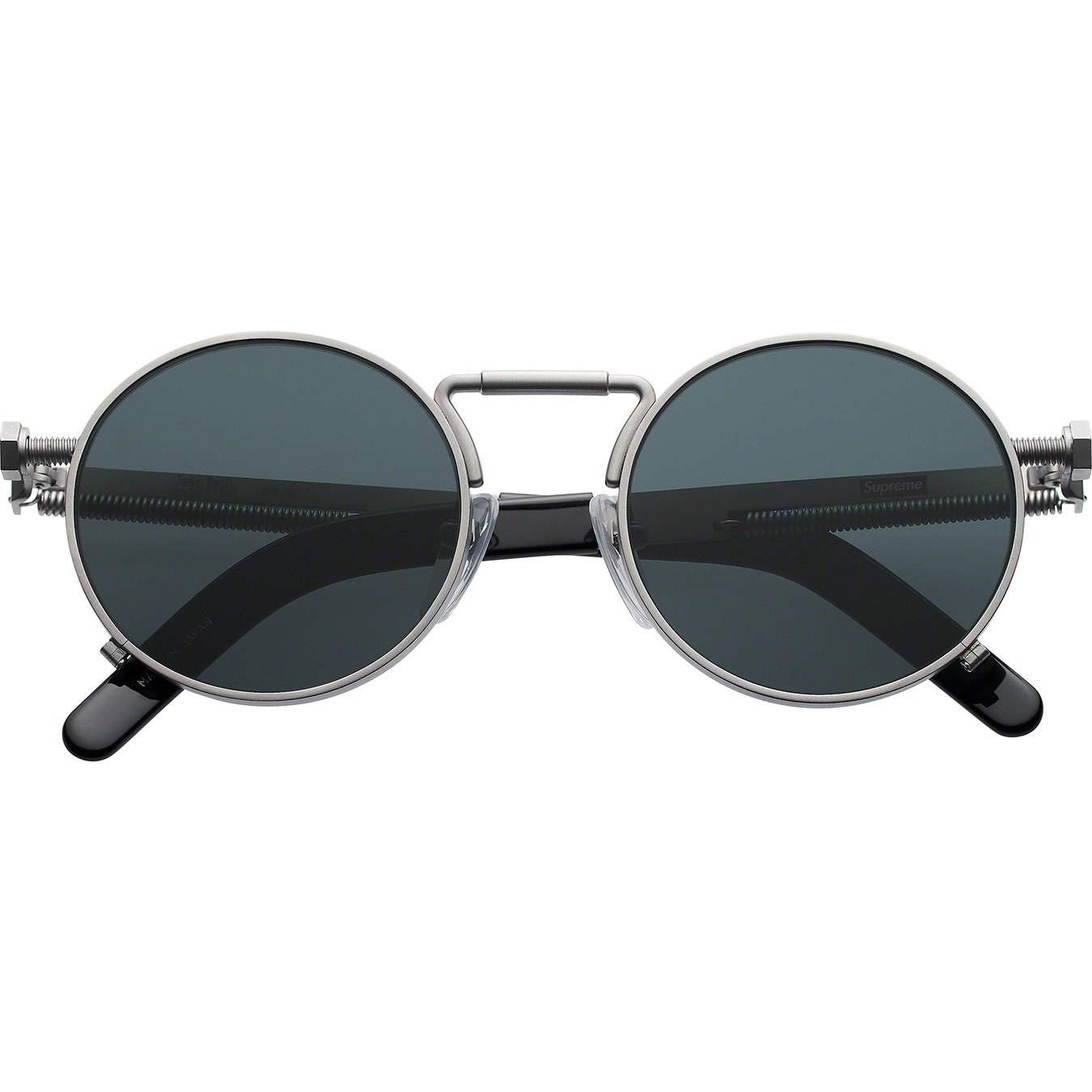 Handmade metal frames with anti-reflective coated glass lenses. Engraved logos at top of frames with spring detail at temple. Made in Japan exclusively for Supreme®/Jean Paul Gaultier®.