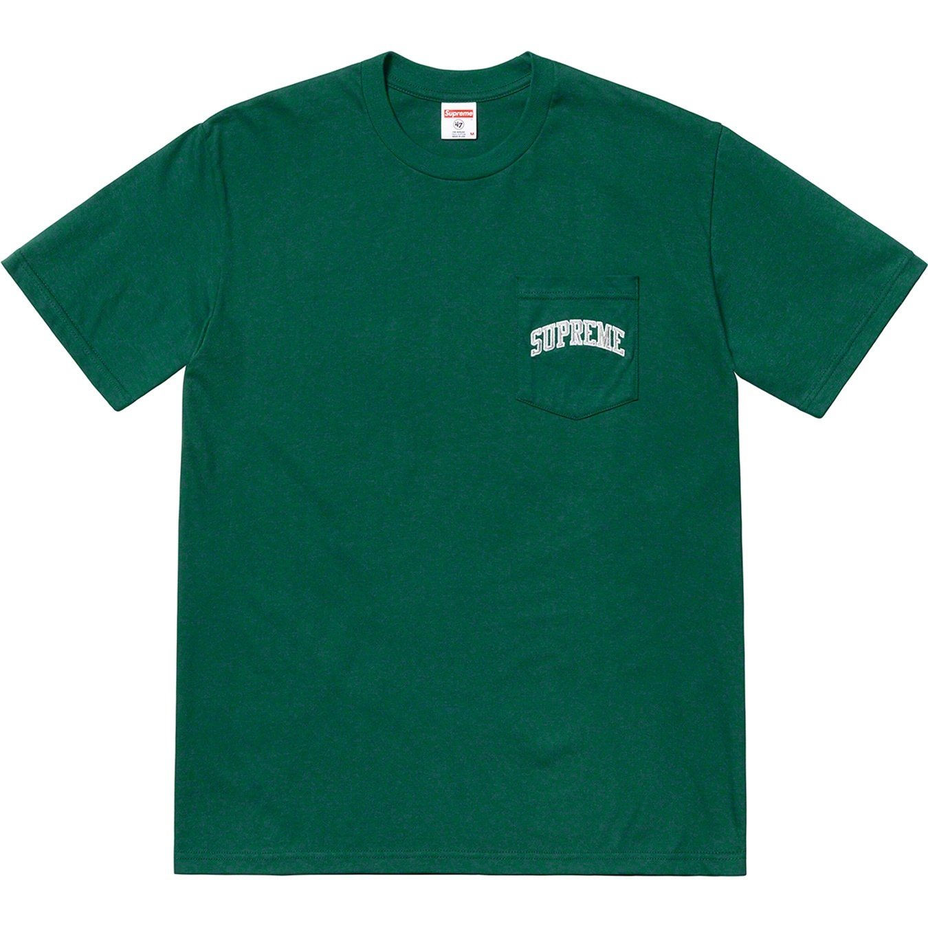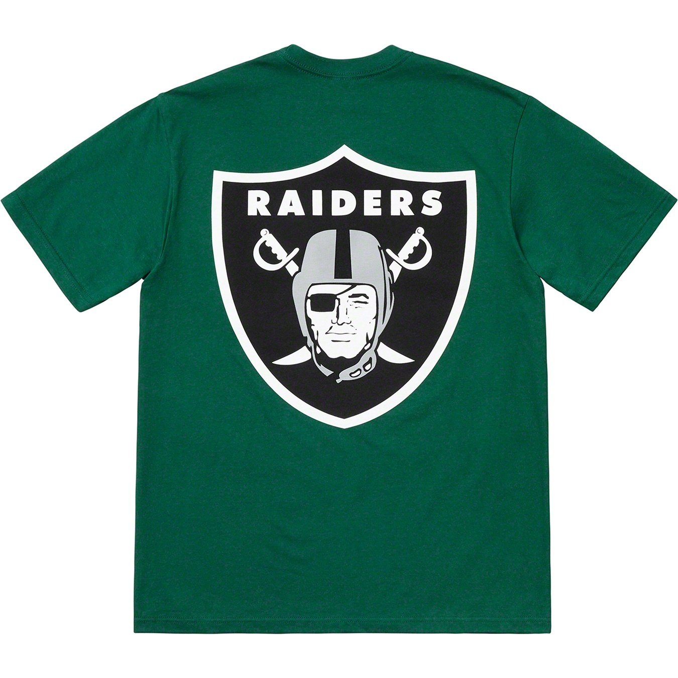 All cotton classic Supreme t-shirt with embroidered logo on chest pocket and printed logo on back. Official Raiders merchandise made exclusively for Supreme.
