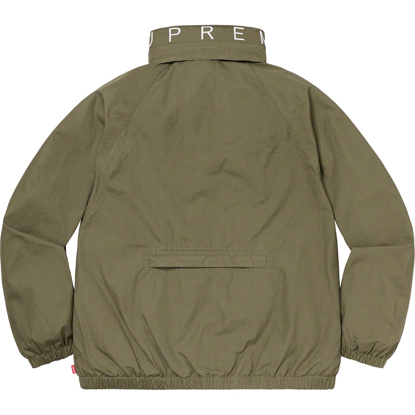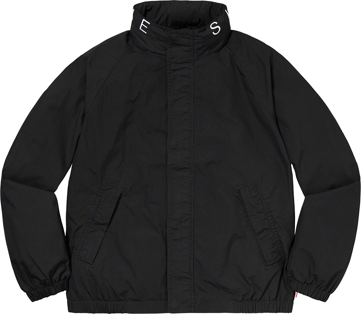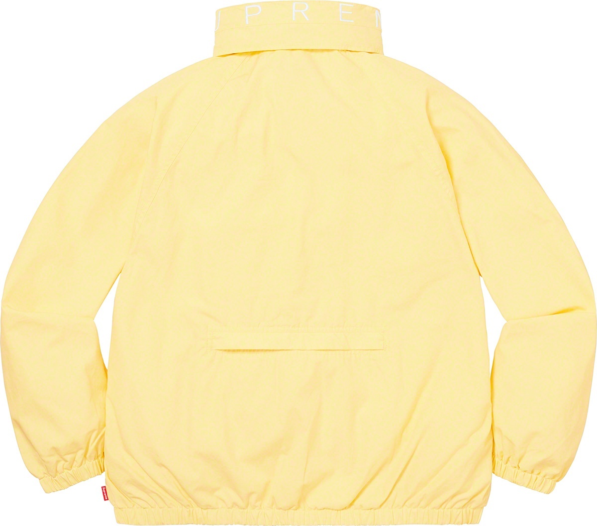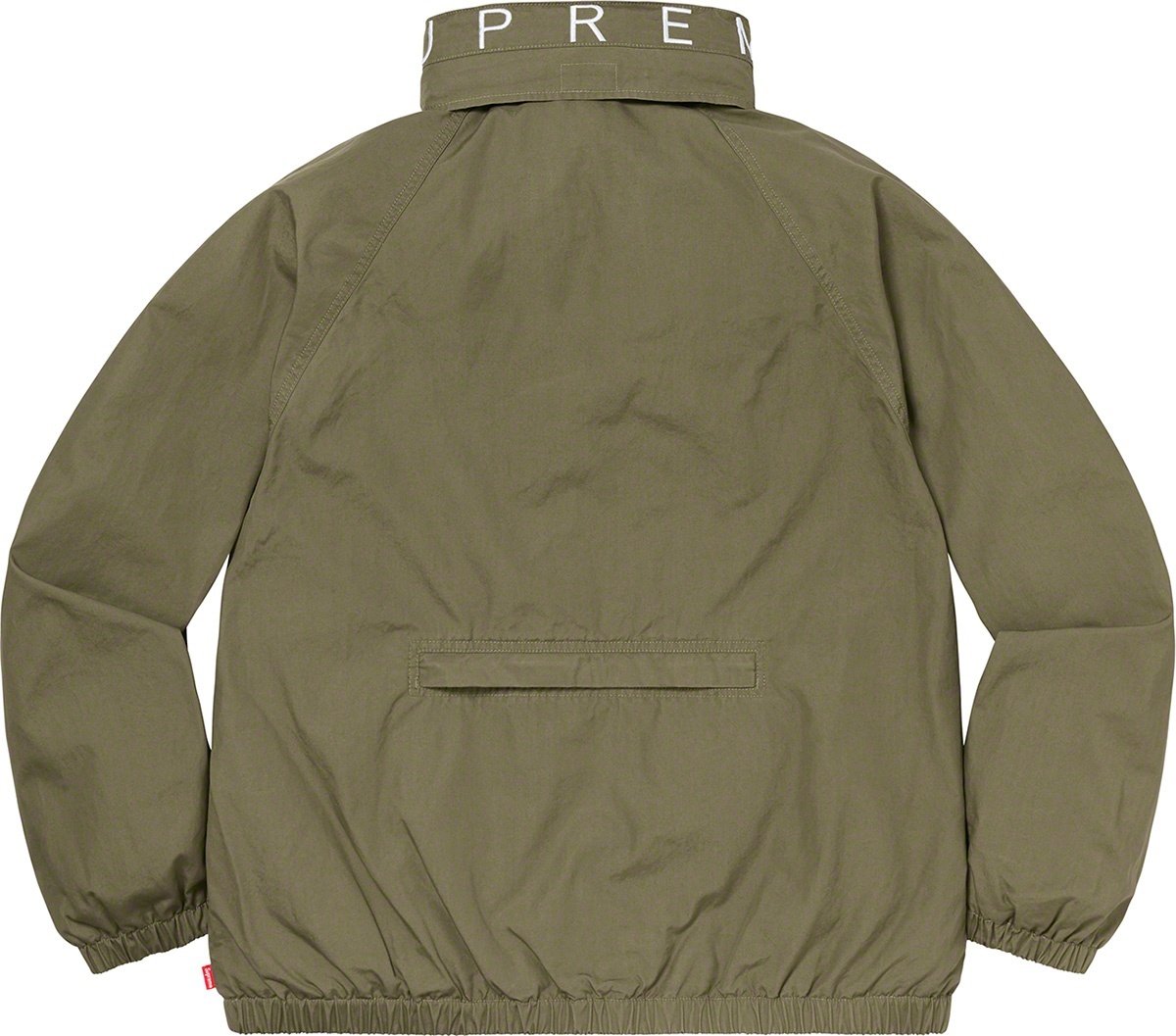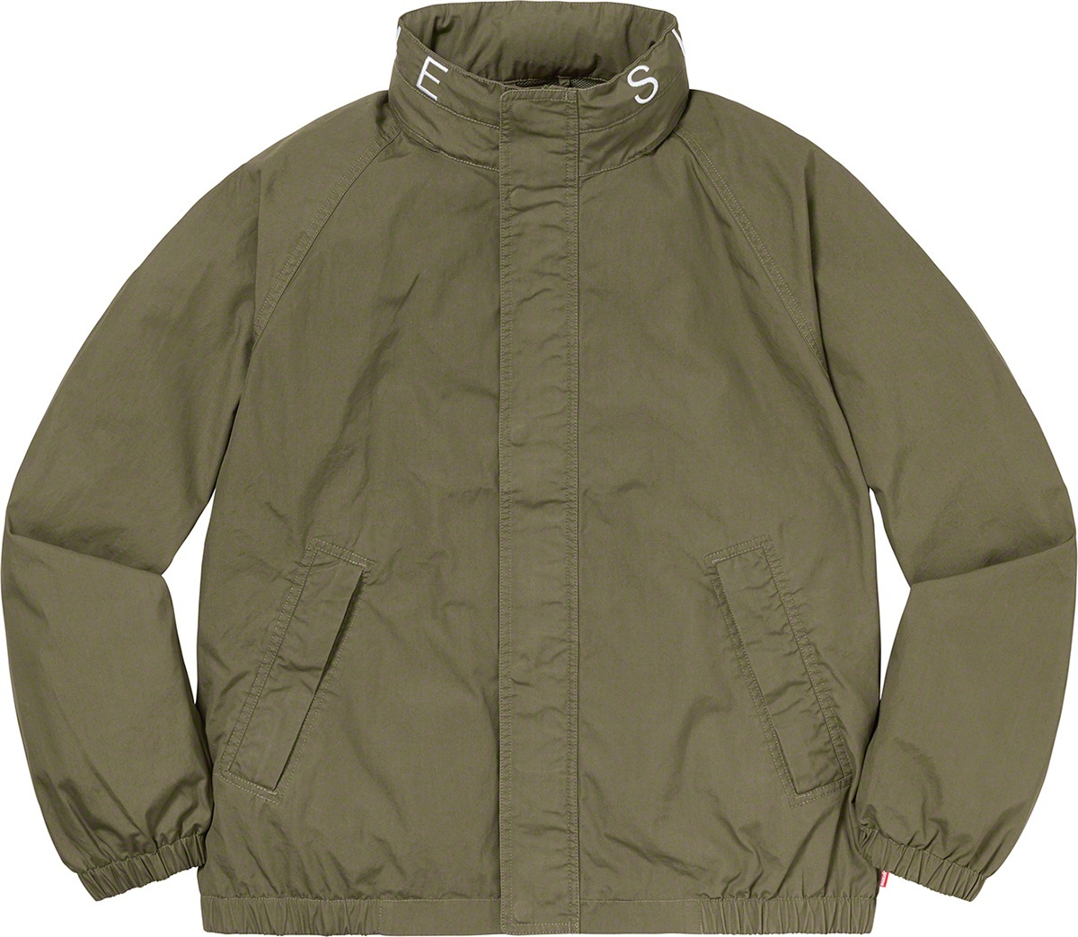 Water resistant cotton with mesh lining. Full zip closure with hidden snap placket. Zip hand pockets at lower front with interior chest pocket and zip pocket at back. Packable hood with interior drawcord and elastic cuffs and hem. Embroidered logo on ...