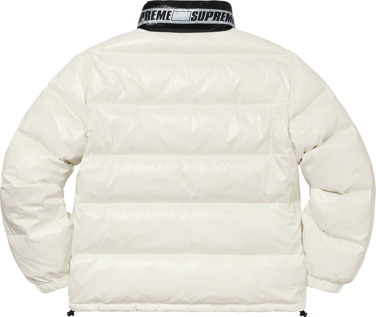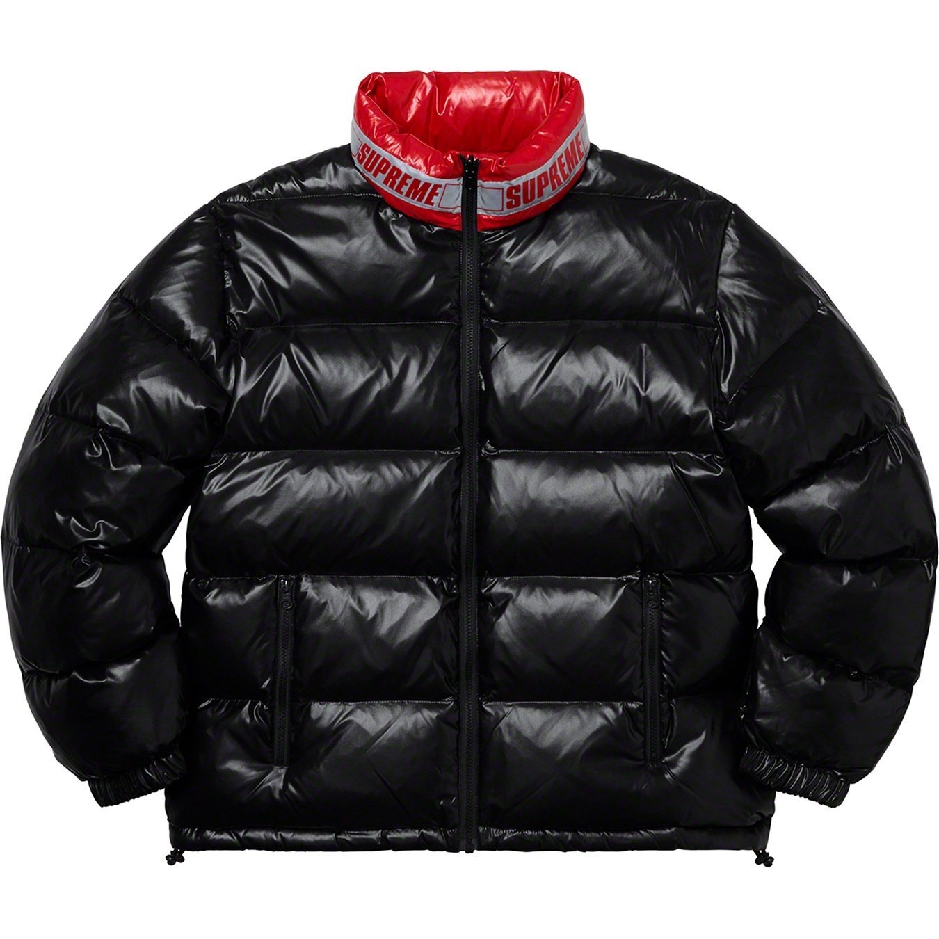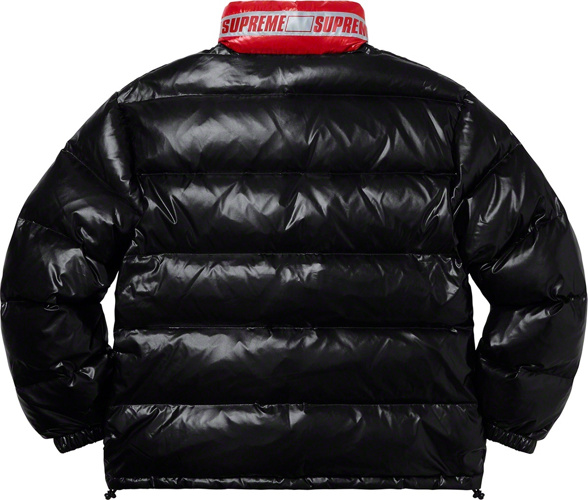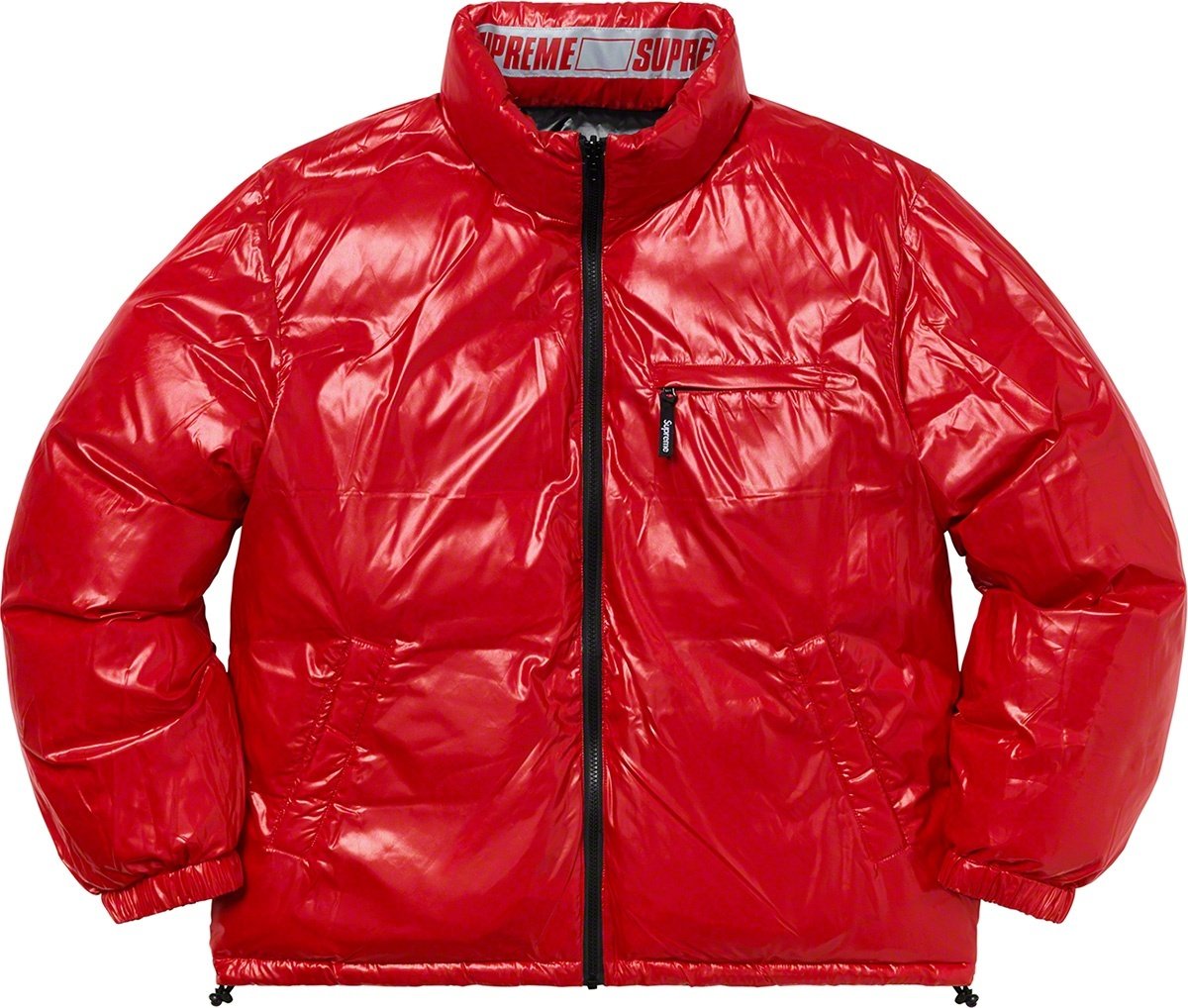 Water resistant nylon with down filled quilted baffles. Full zip closure with zip hand pockets at lower front. Reverse side with hand pockets and zip chest pocket. Elastic cuffs with interior elastic shockcord at hem. Reflective logo taping at neck.