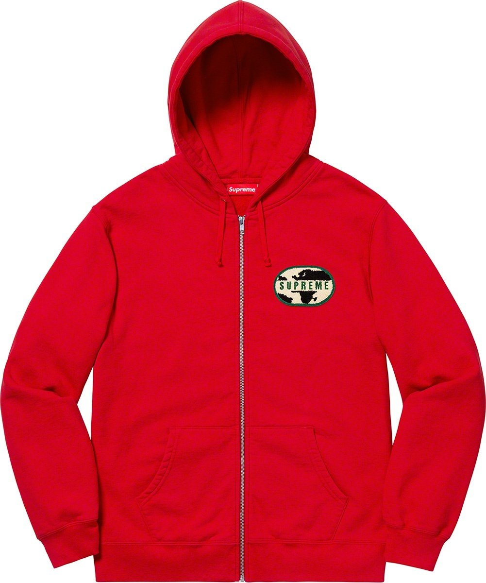Cotton fleece with full zip closure and pouch pocket. Chenille appliqué logos at chest and back.